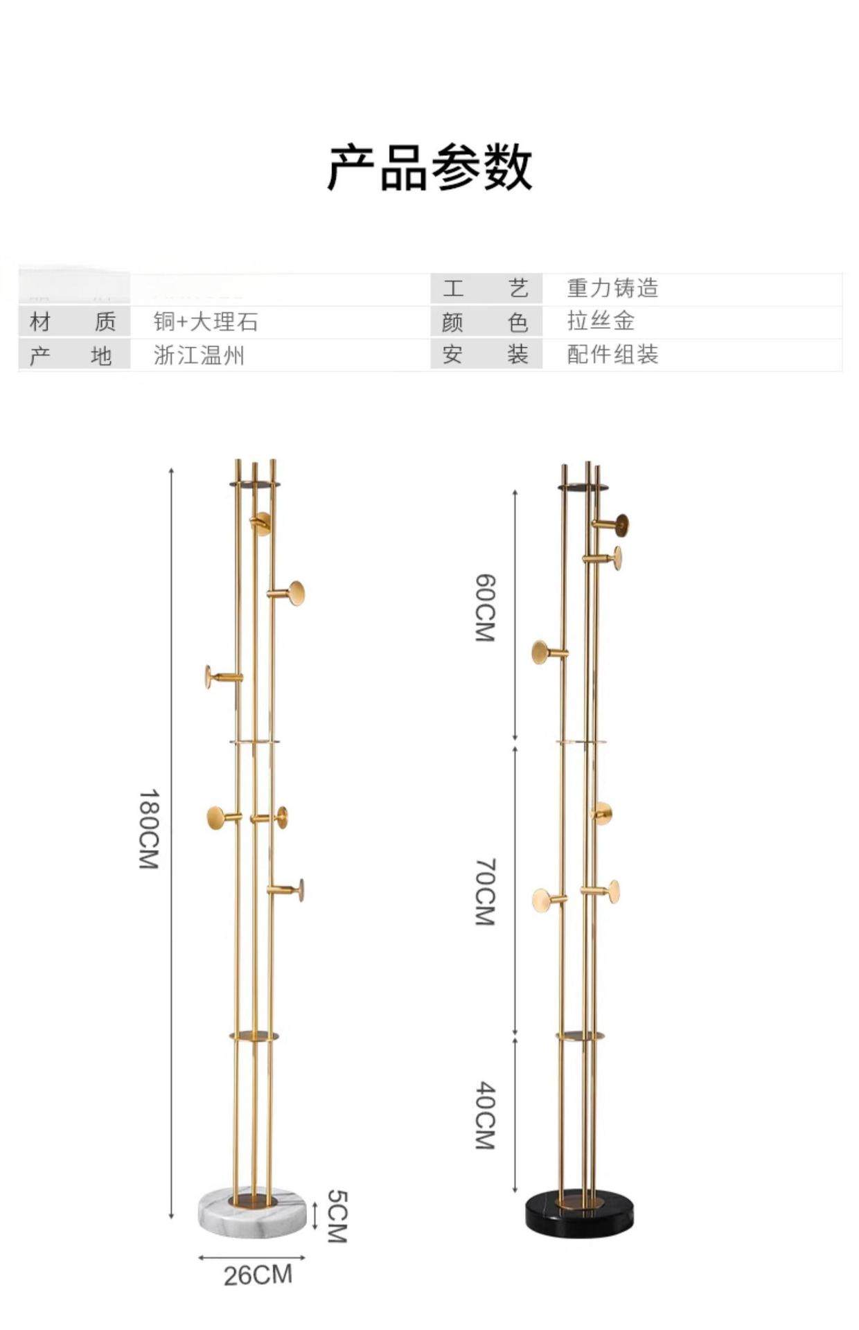 All-Copper Light Luxury Creative Living Room Bedroom Floor-Standing Coat Rack Simple Home Entrance Clothes Rack Clothes Rack