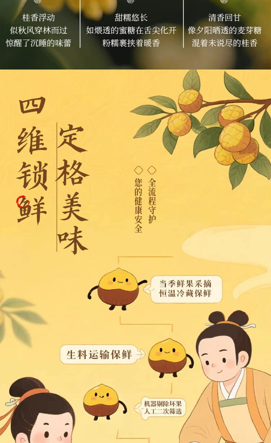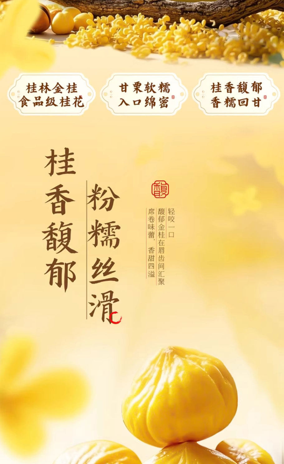 | Packaging specifications | Osmanthus chestnut kernels 36g |