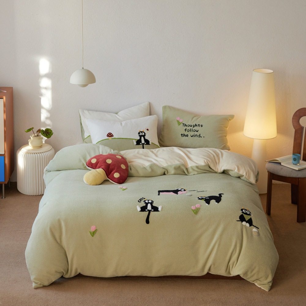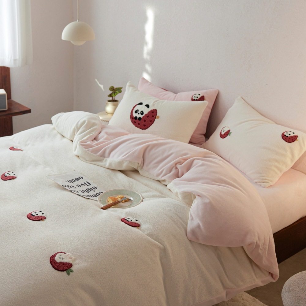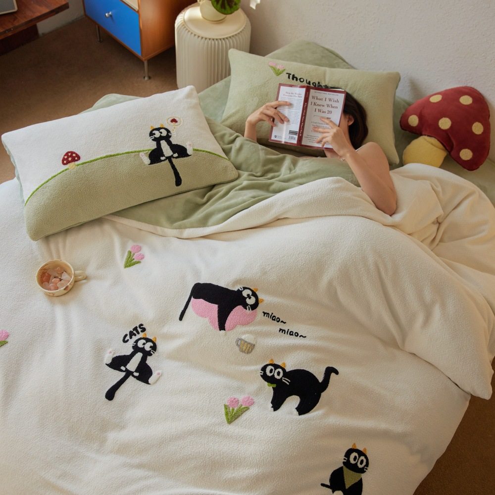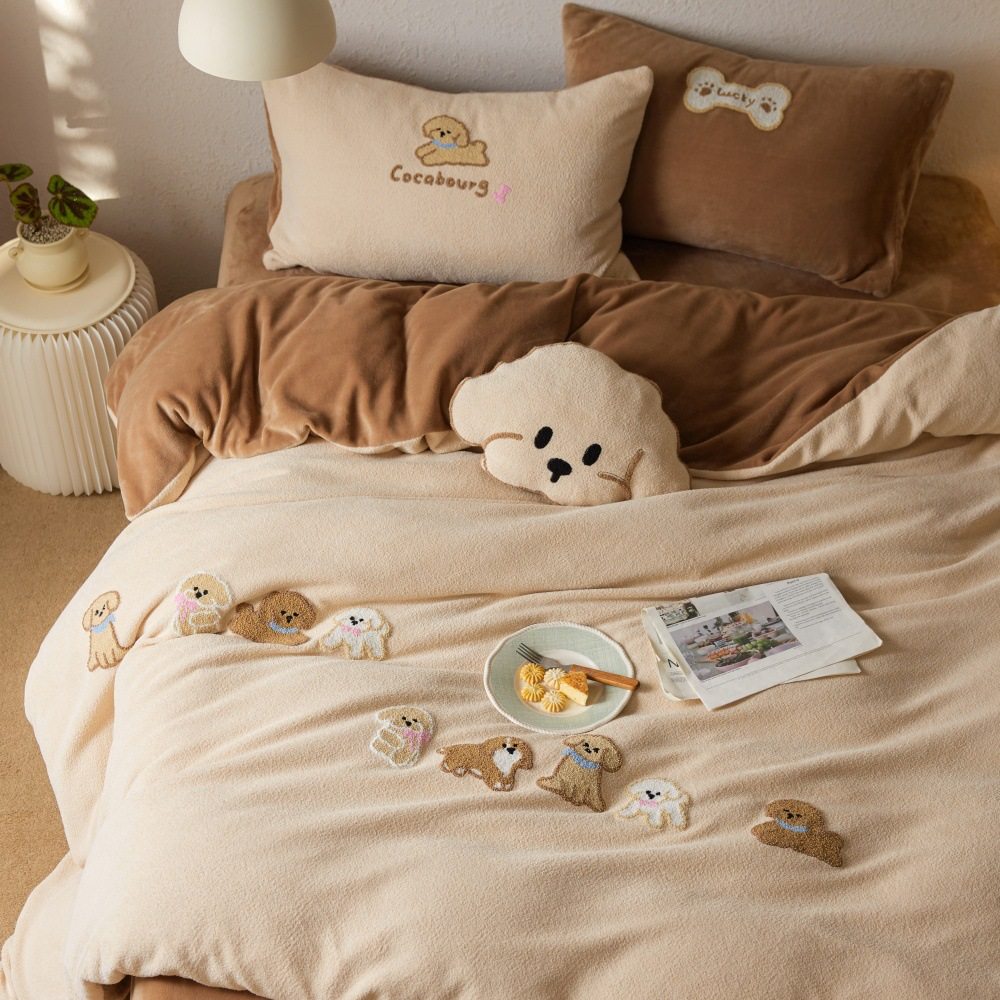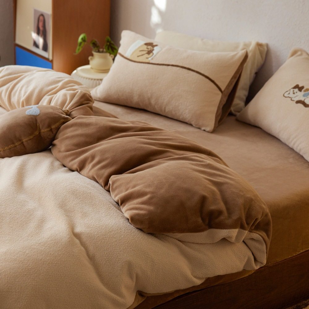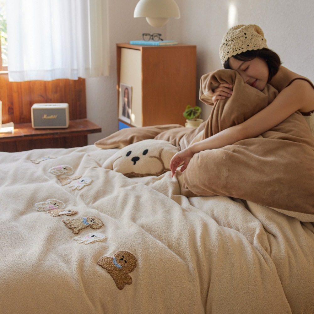 High-End Cartoon Style Infant-Grade Thickeneded Milk Velvet Four-Piece Set, Cute Towel Embroidered Three-Piece Set, Kidsren's Bedding