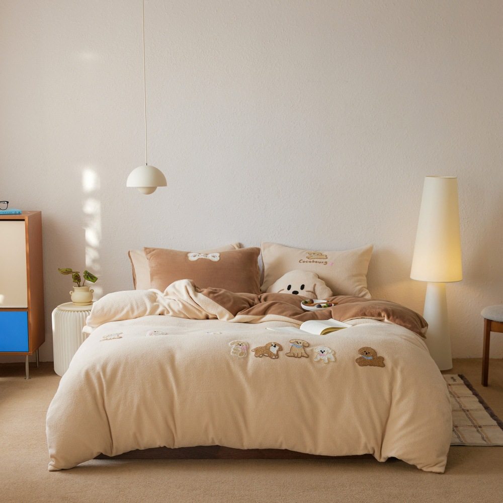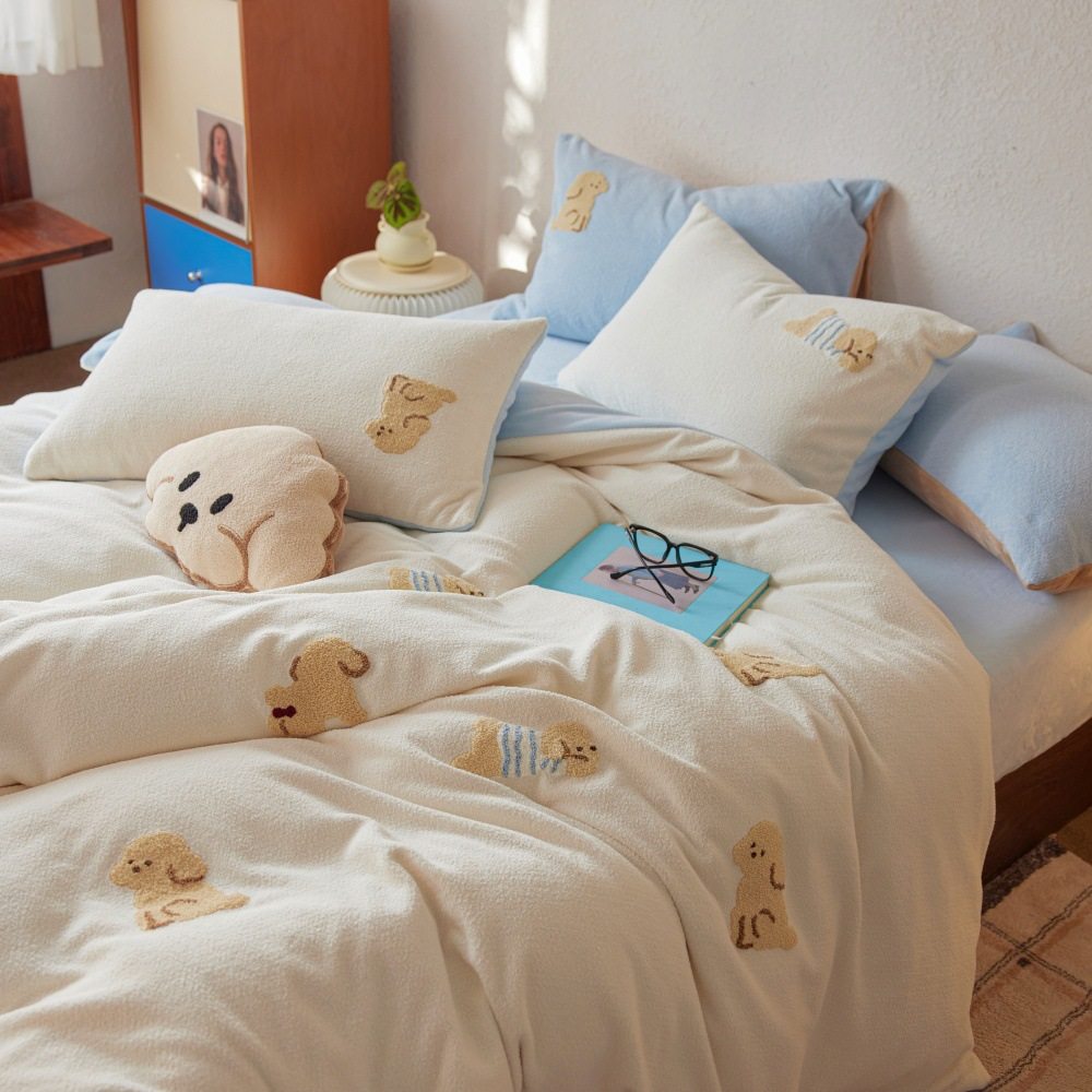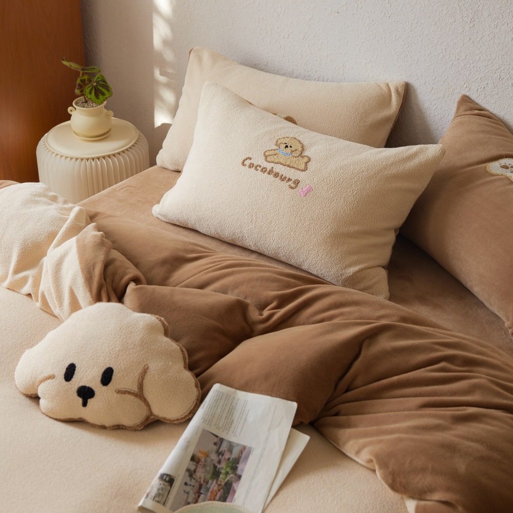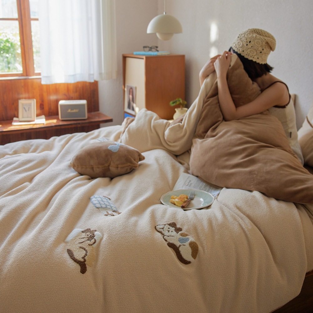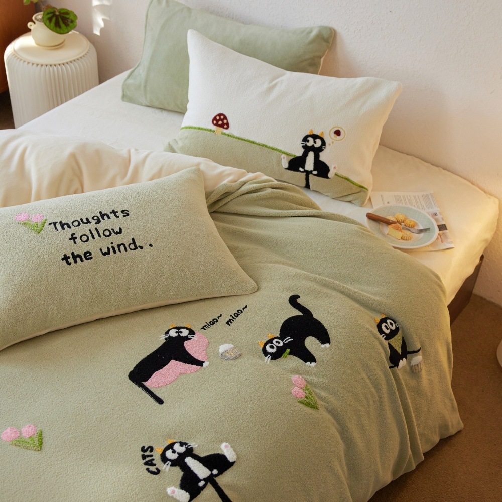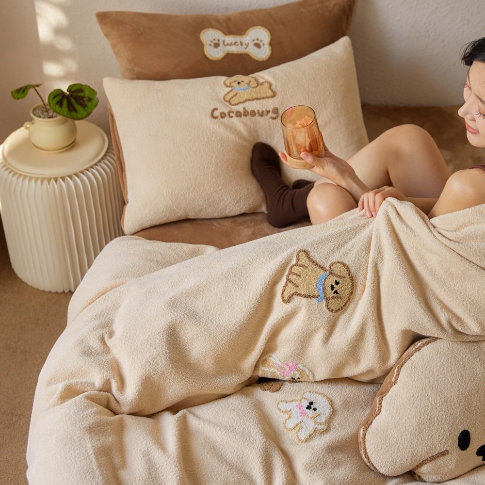 High-End Cartoon Style Infant-Grade Thickeneded Milk Velvet Four-Piece Set, Cute Towel Embroidered Three-Piece Set, Kidsren's Bedding