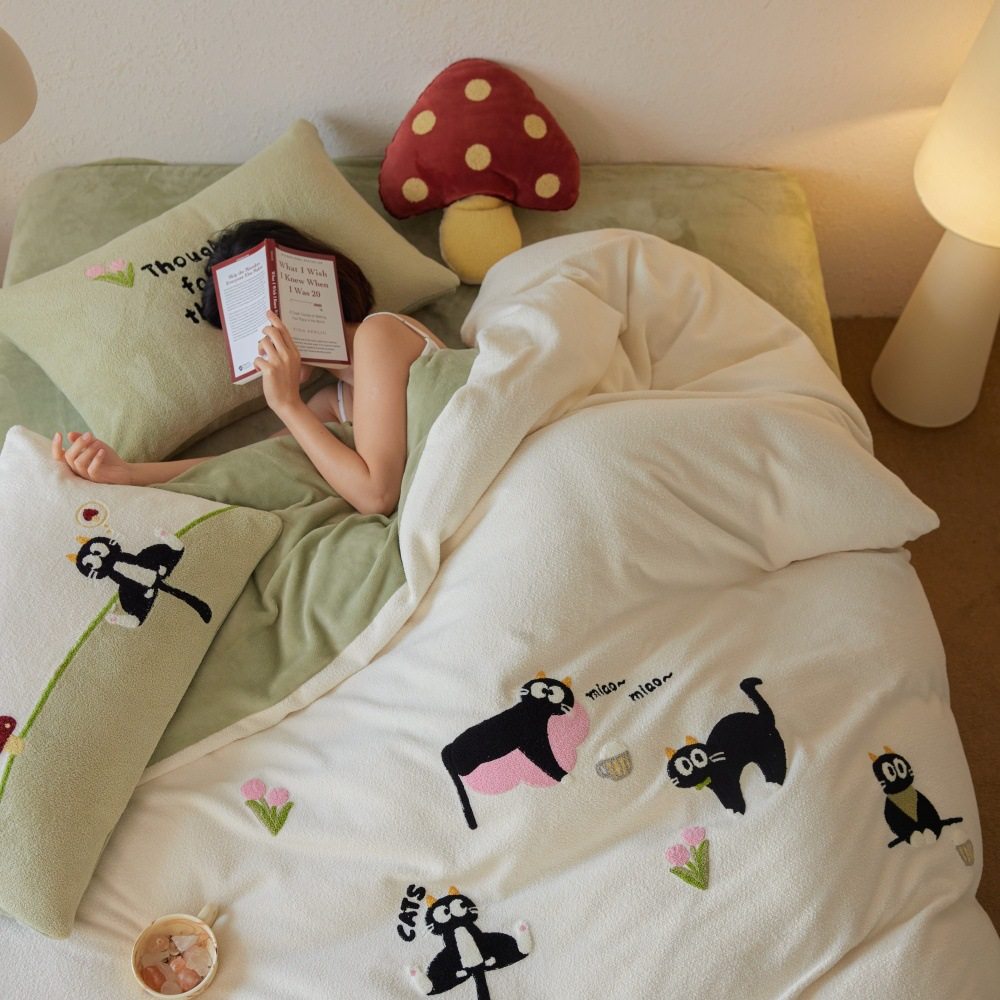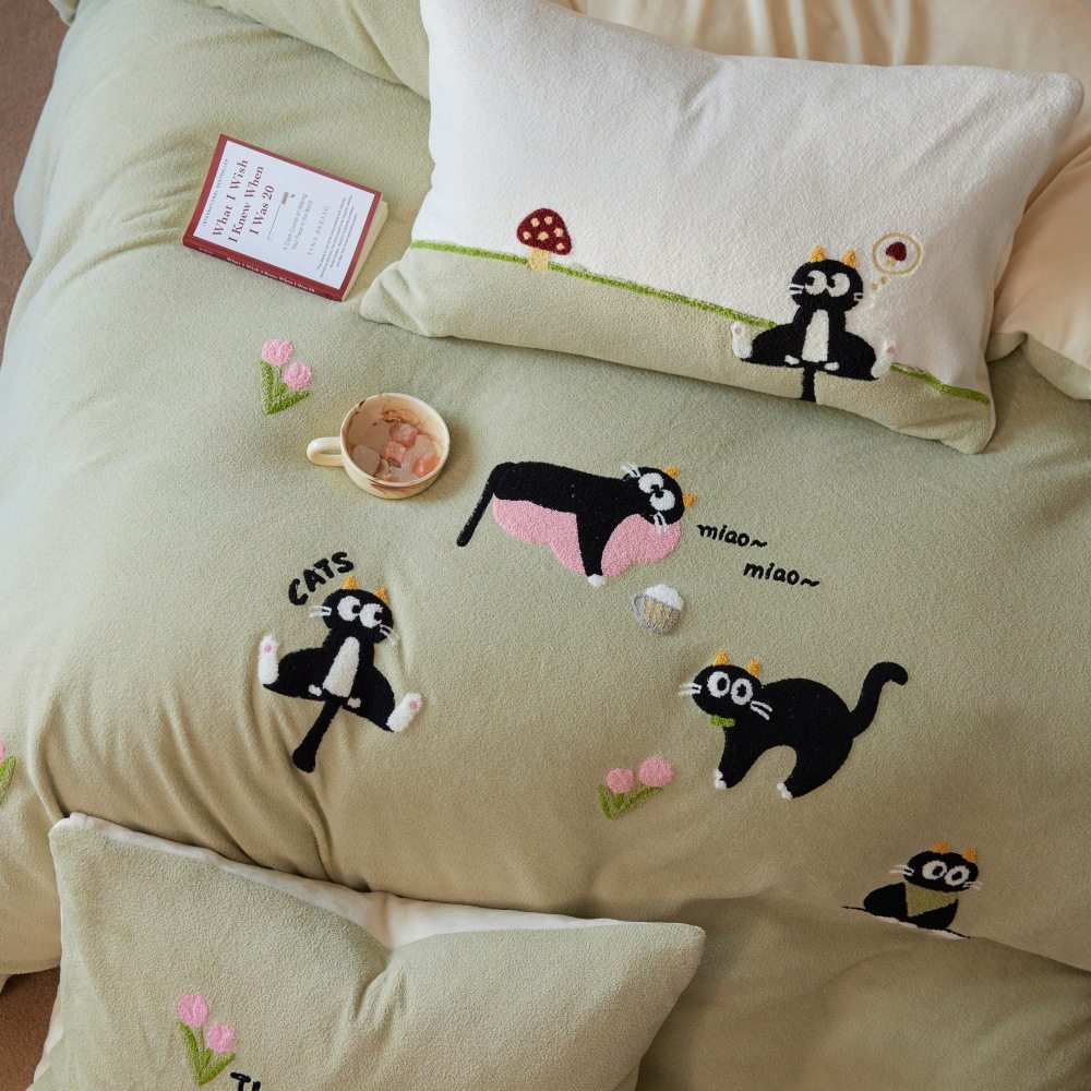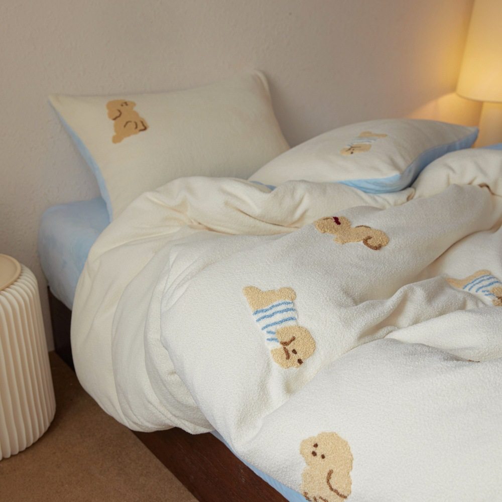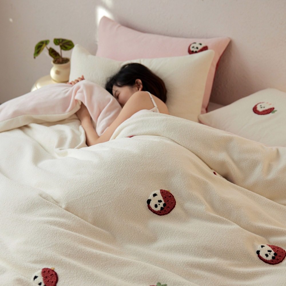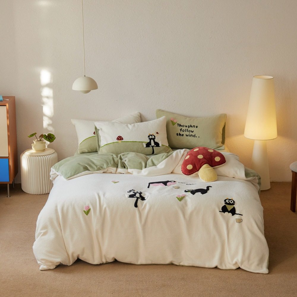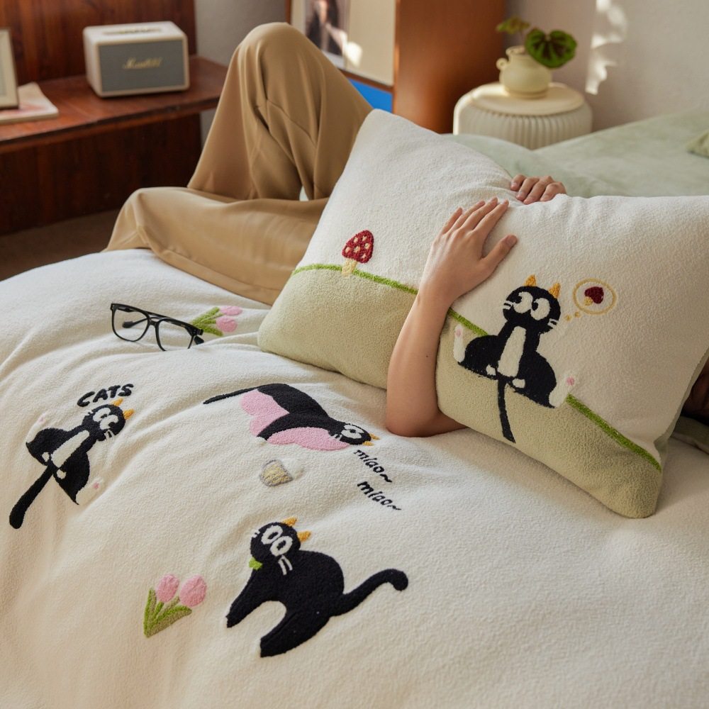 High-End Cartoon Style Infant-Grade Thickeneded Milk Velvet Four-Piece Set, Cute Towel Embroidered Three-Piece Set, Kidsren's Bedding