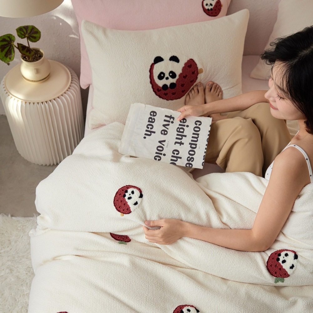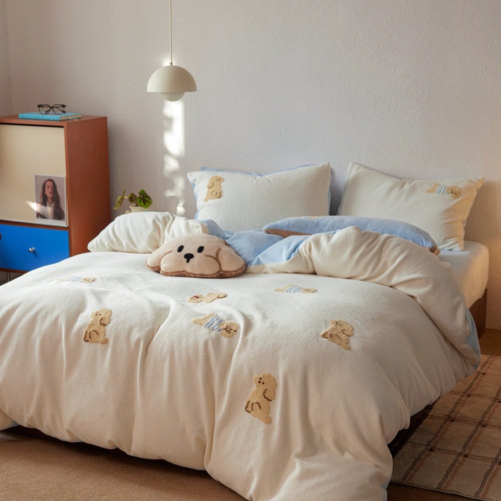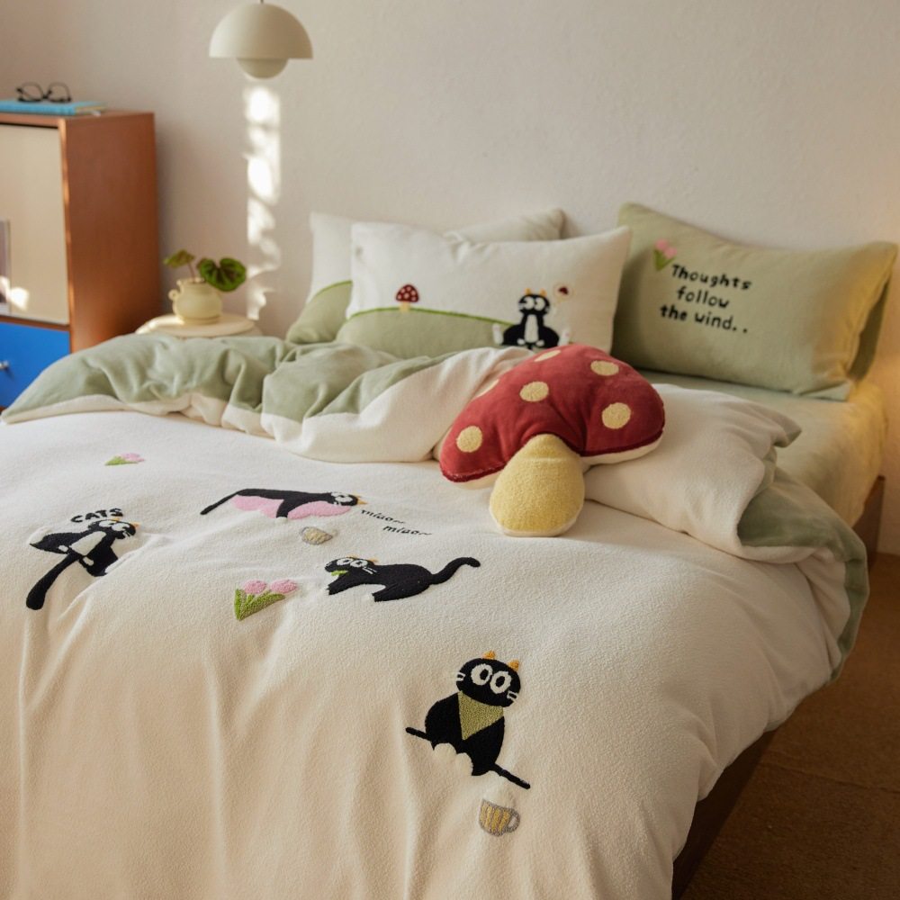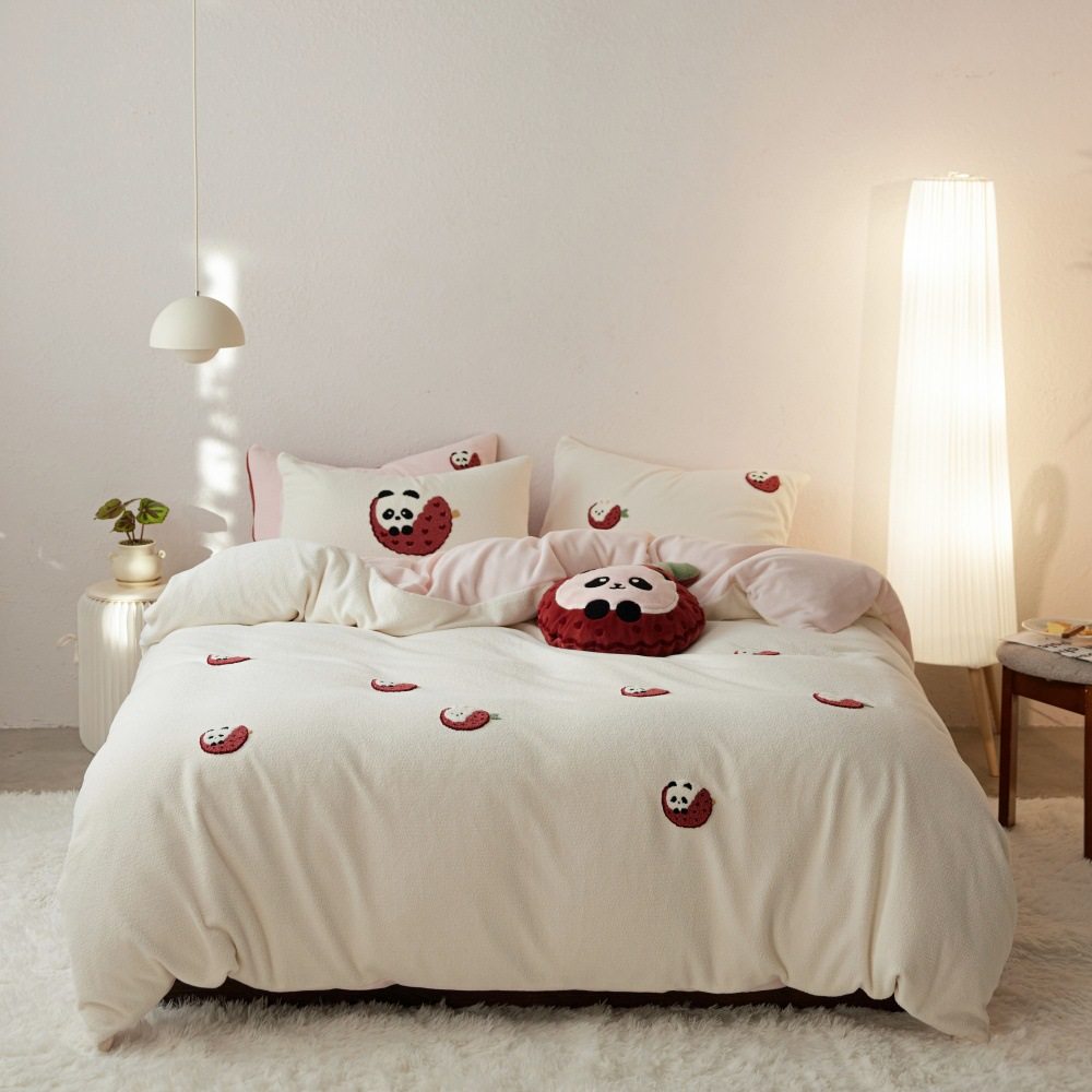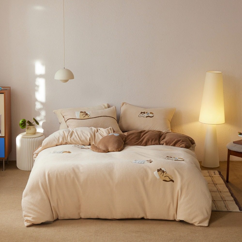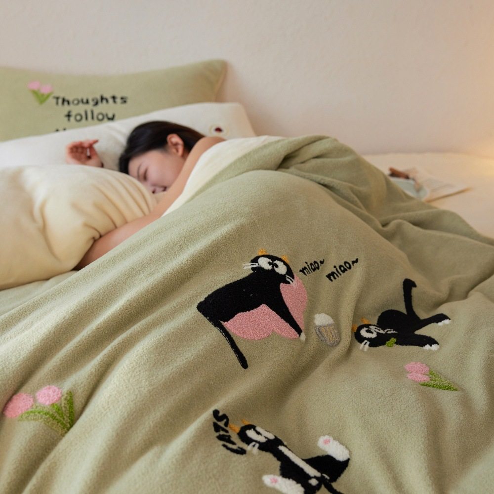 High-End Cartoon Style Infant-Grade Thickeneded Milk Velvet Four-Piece Set, Cute Towel Embroidered Three-Piece Set, Kidsren's Bedding