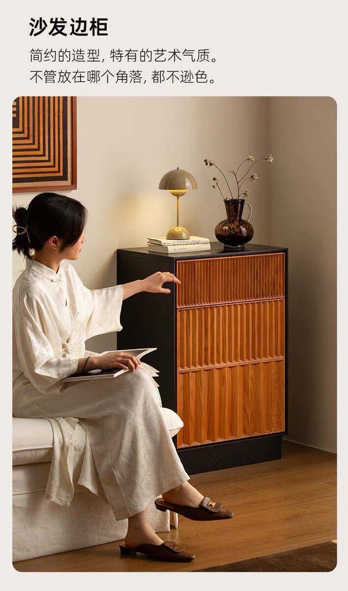Medieval Style Cupboard Bedroom Bedside Table Storage Cabinet Solid Wood Multi-Layer Wall Cabinet Sofa Side Cabinet Small Cabinet