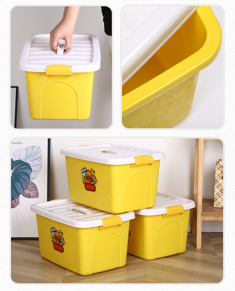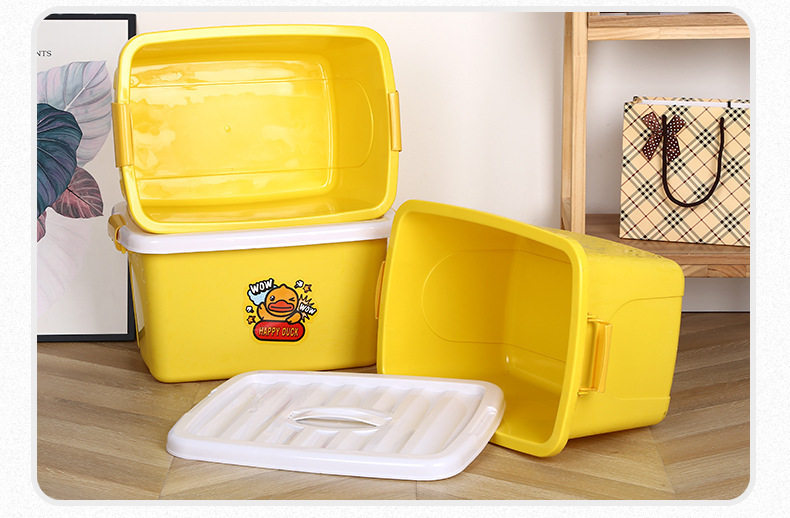 Little Yellow Duck Thickened Snack Storage Box Clothes Storage Box Household Toy Plastic Covered Dormitory Car Storage Box