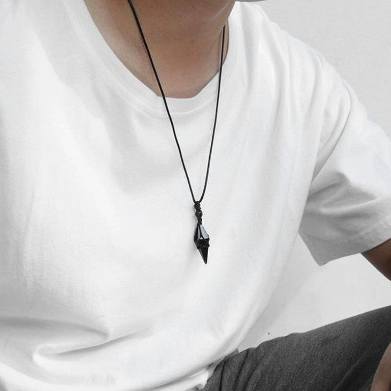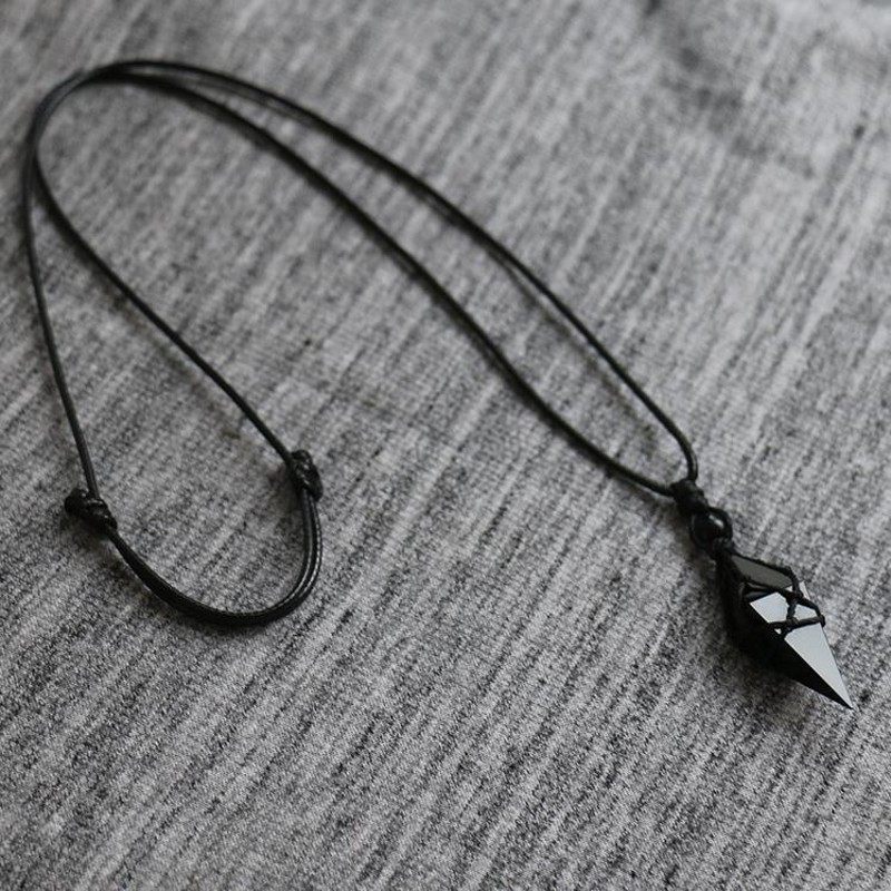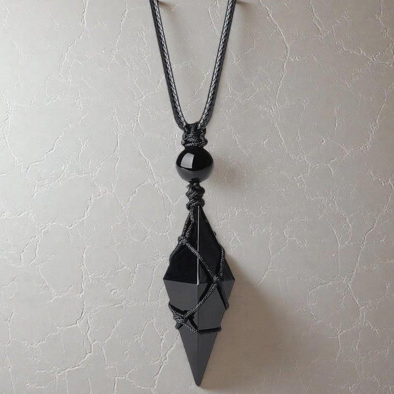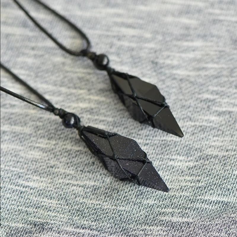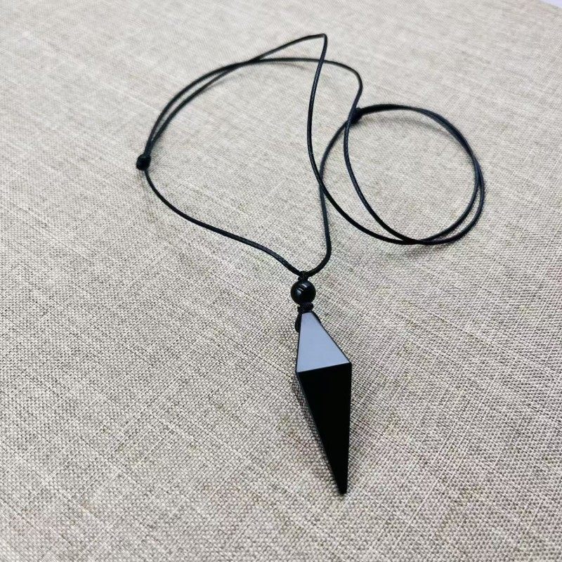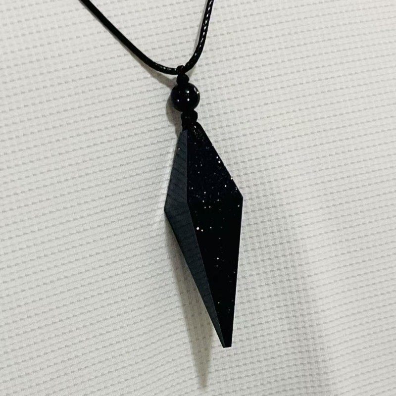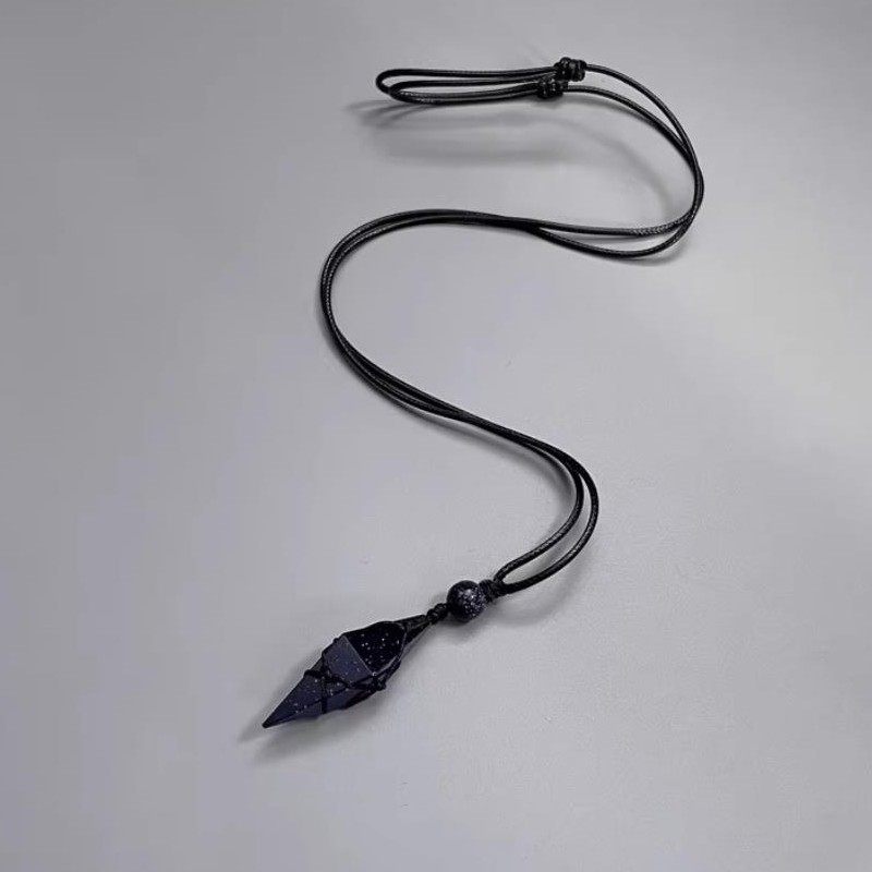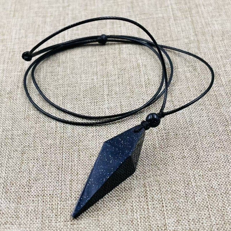 Cross-Border Pendulum Natural Obsidian Pendant for Men and Women Starry Sky Blue Sand Octahedral Rhombus Necklace Personalized Couple Gift