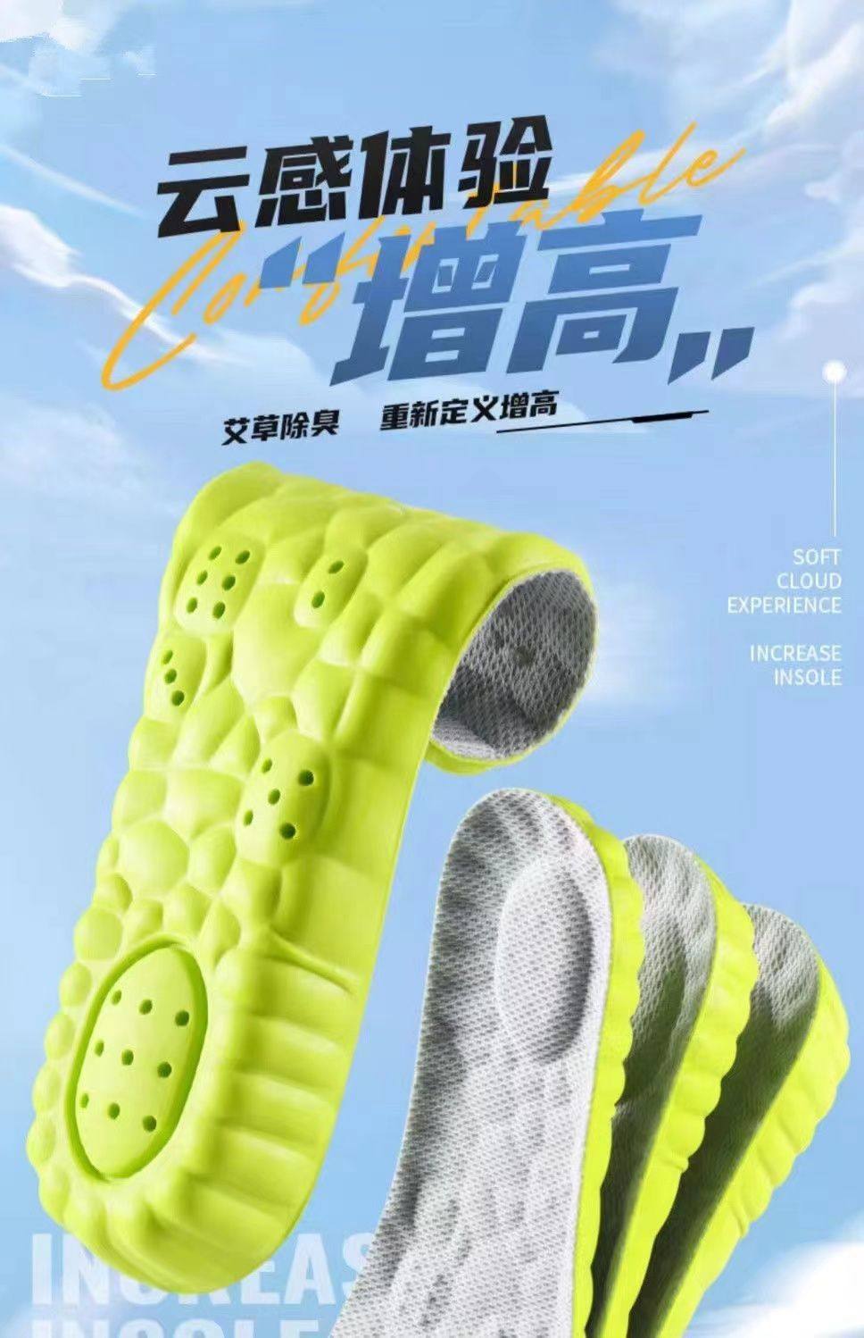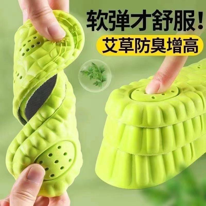 Mugwort Deodorant Heightening Insole for Men, Sweat-Absorbent, Deodorant, Sports Shock-Absorbing, Invisible, Non-Tiring Feet, Women's Winter Inner Heightening Insole