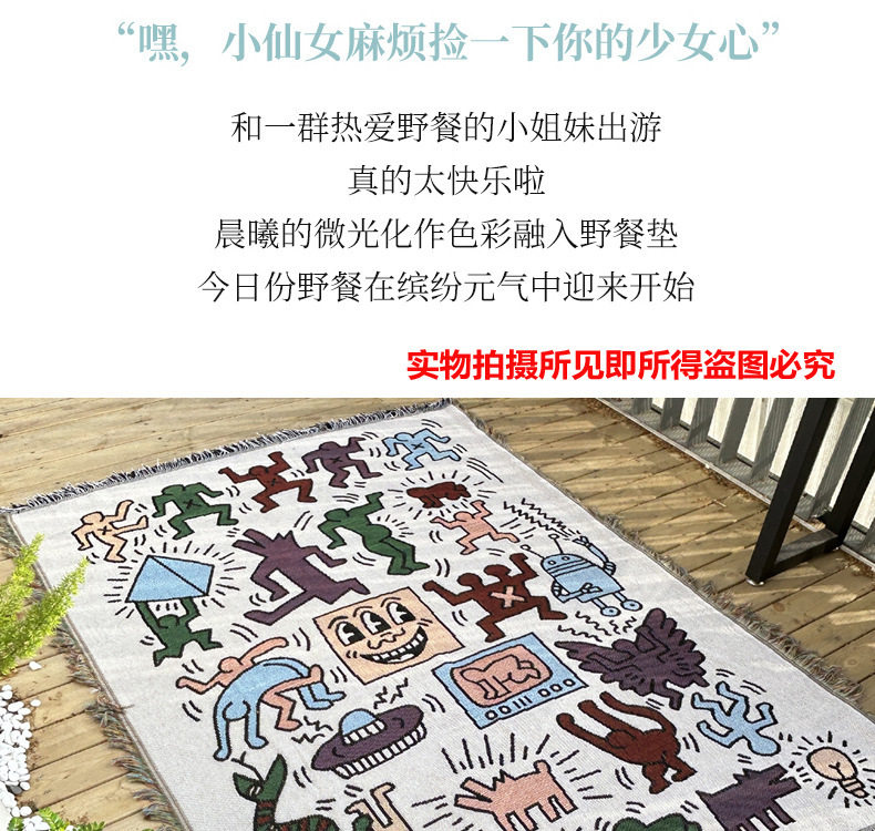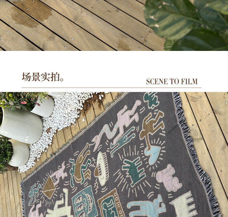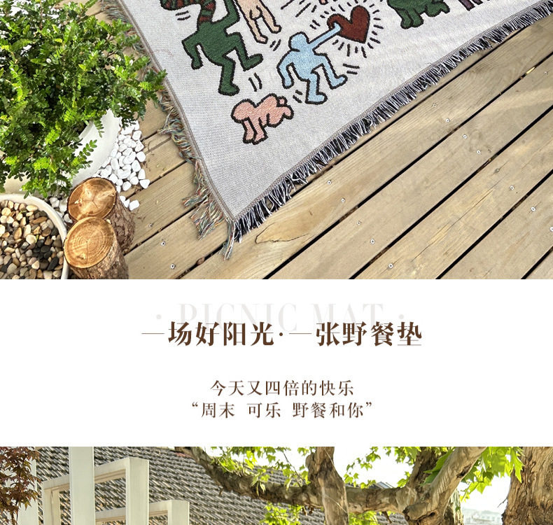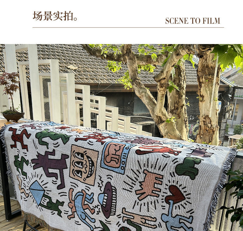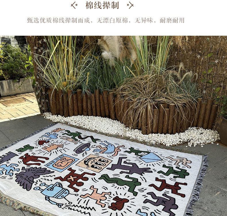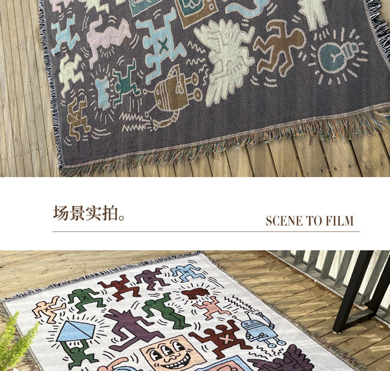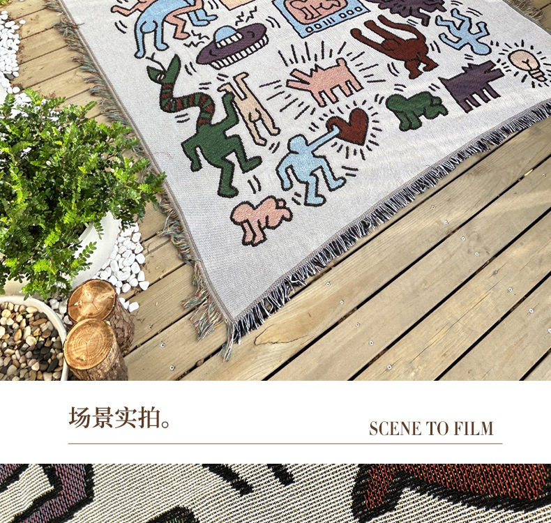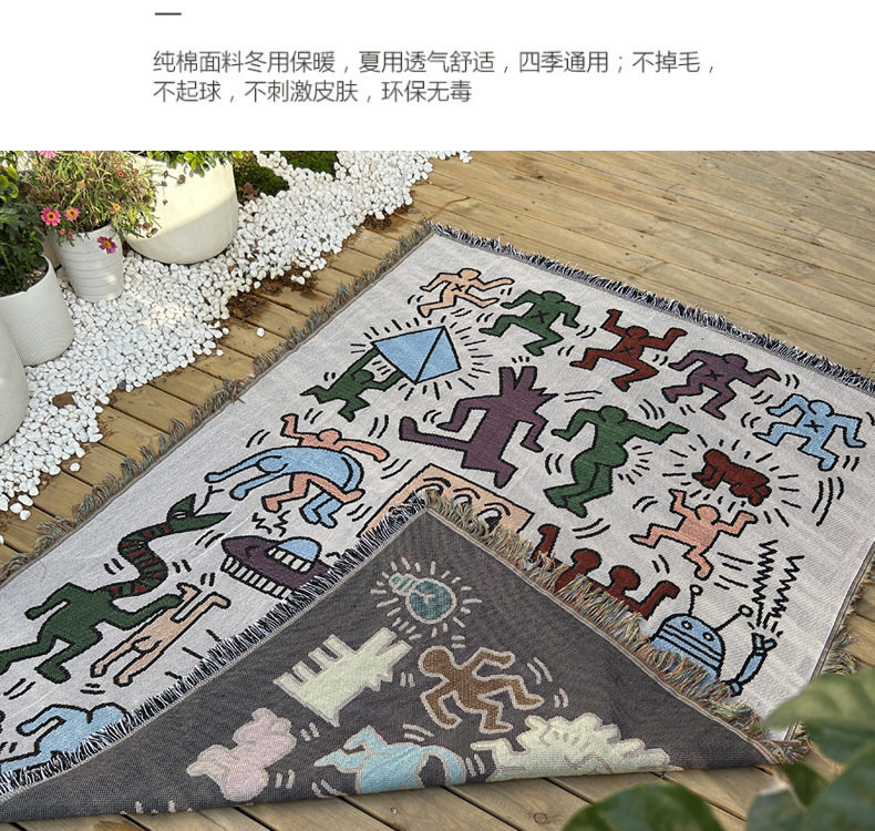 Cross-Border Foreign Trade Camping Blanket Moisture-Proof Camping Mat Jacquard Tapestry Cartoon Sofa Towel Thread Blanket Multi-Functional Sofa Blanket