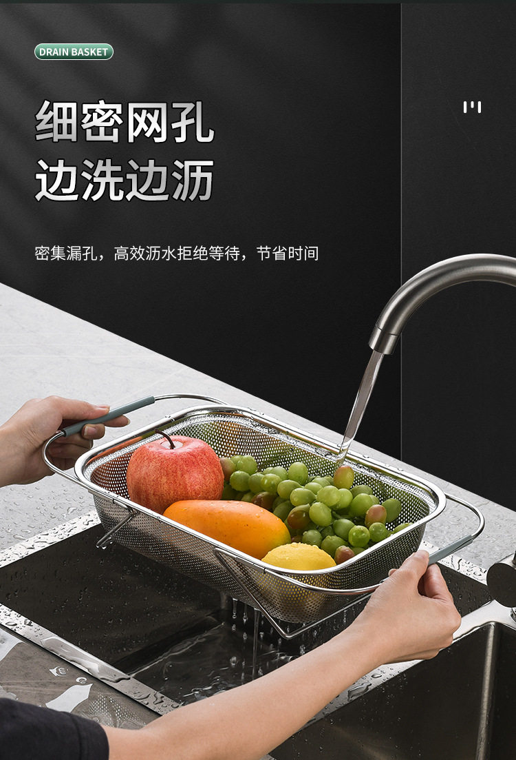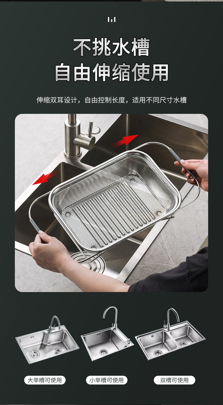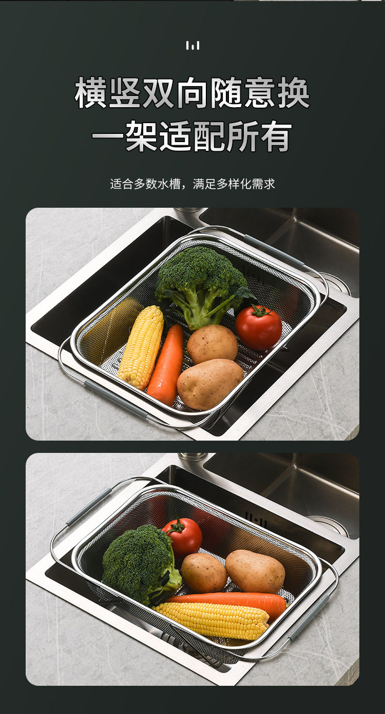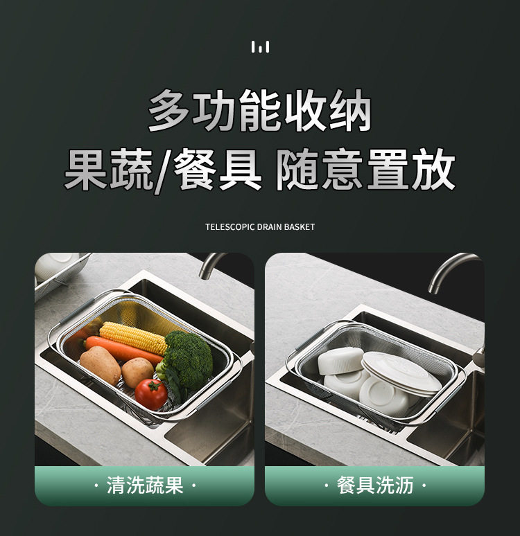Cross-Border 201 Stainless Steel Drain Basket Retractable Sink Sink Storage Household Dish Rack Fruit and Vegetable Storage Rack