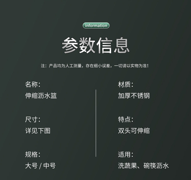 | Color | 201 stainless steel telescopic drain basket-medium size,201 stainless steel telescopic drain basket-large size,201 stainless steel telescopic drain basket-medium size [with mail order box],201 stainless steel telescopic drain basket-large size [with mail order box] |