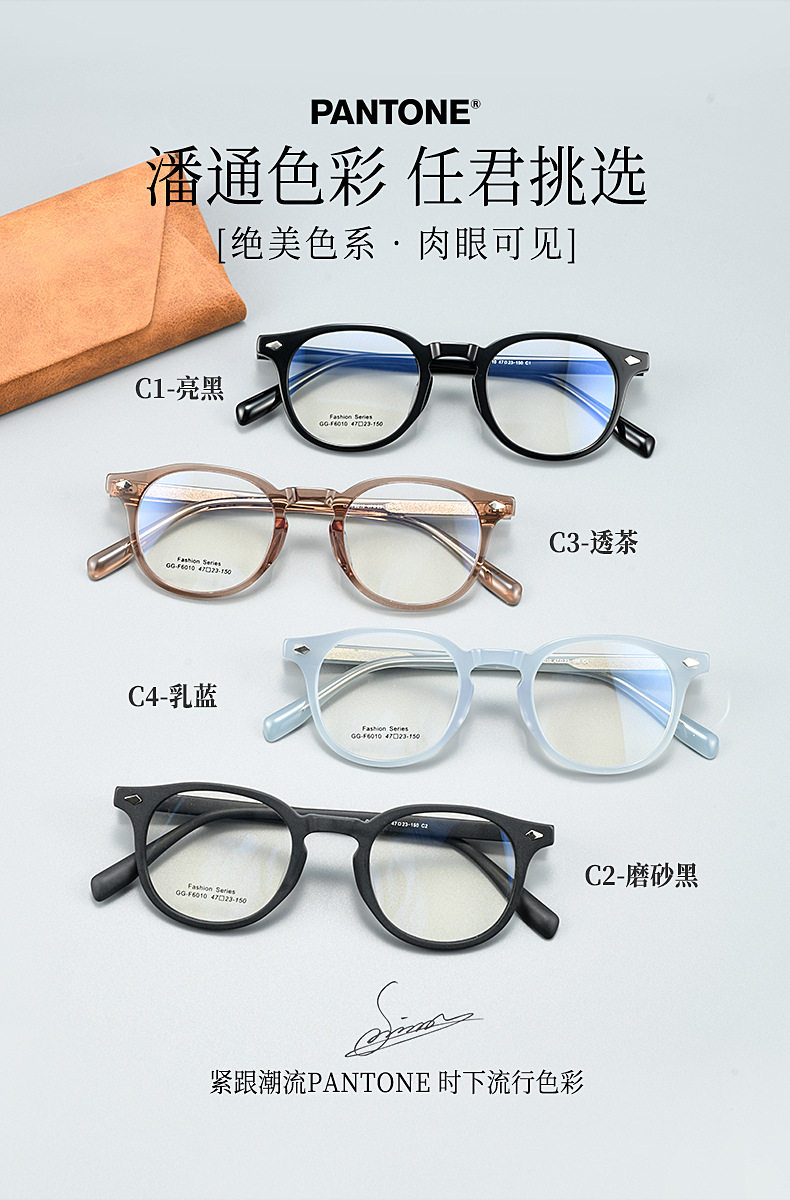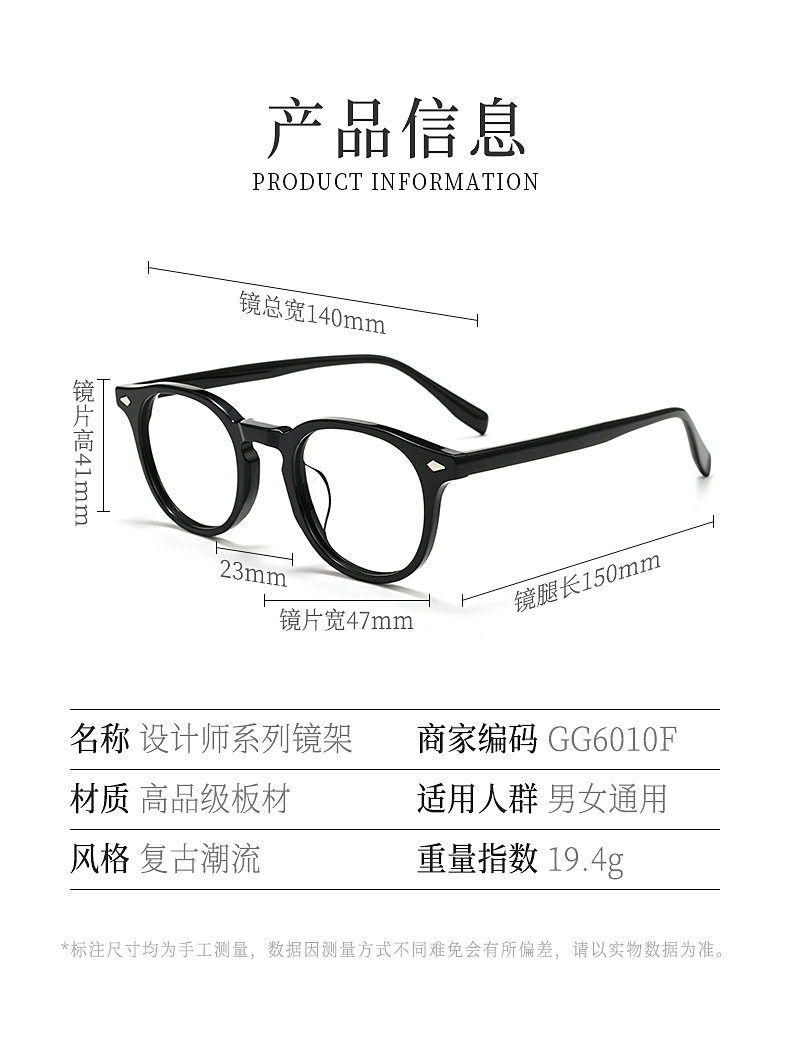 Gg6010F Retro Literary High-End Round Frame Acetate Frame Fashionable Versatile Glasses Frame Danyang Glasses Wholesale