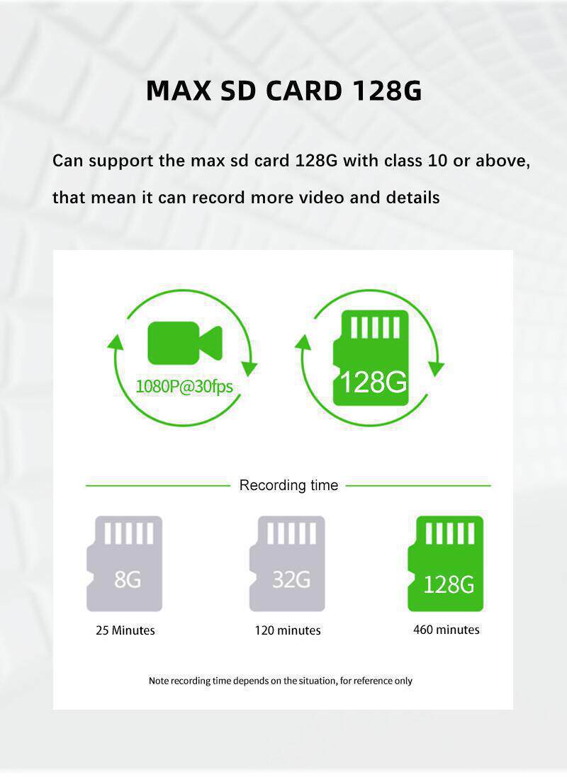 | Function | Reverse image,Motion detection,Loop recording,Enhanced night vision |