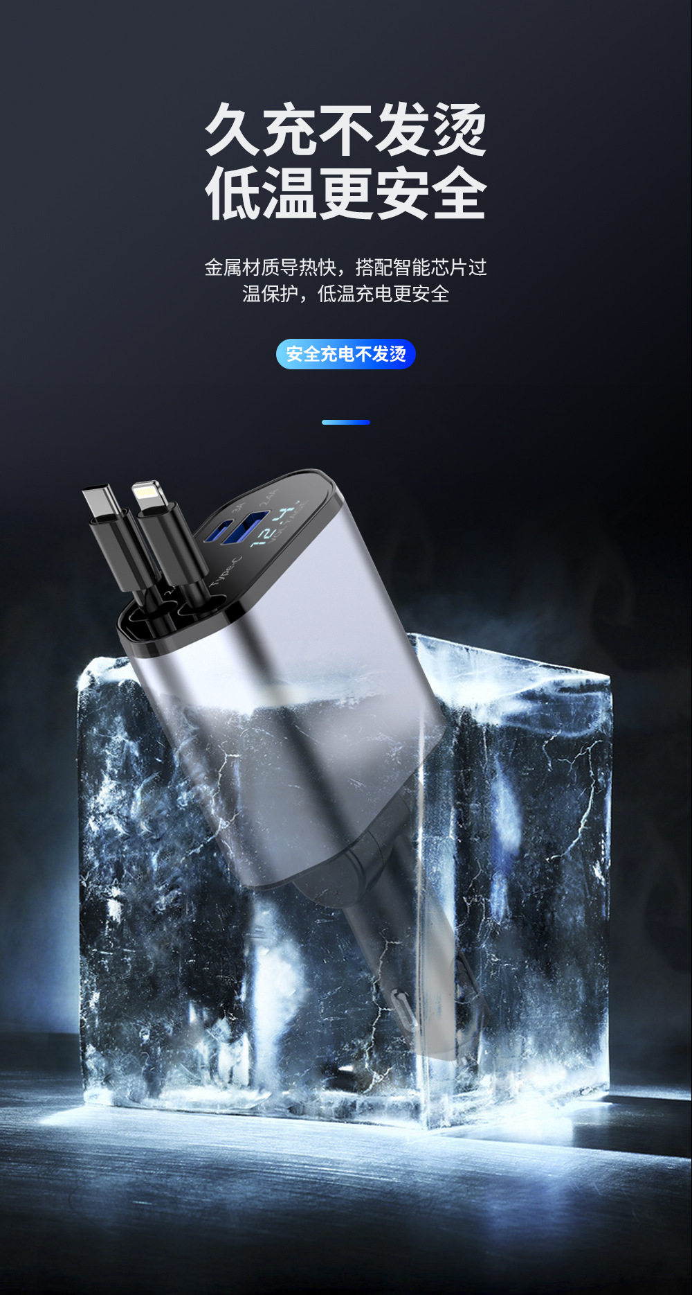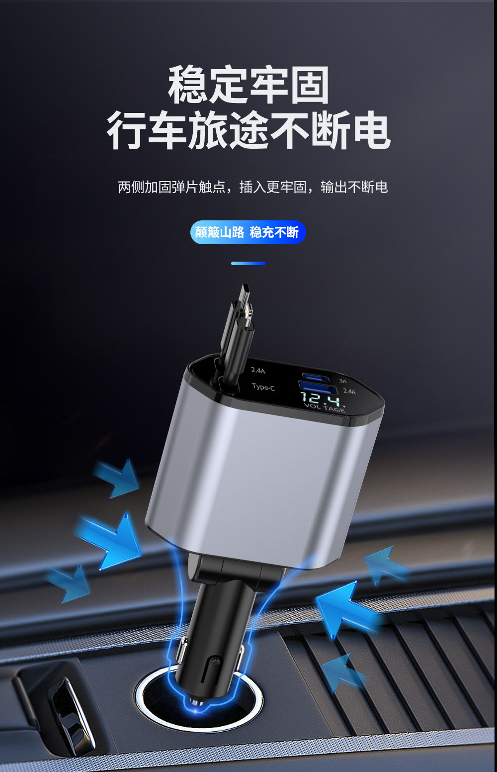Car Mobile Phone Charger Super Fast Charging Cigarette Lighter Conversion Plug Car Charger Retractable Cable Aluminum Alloy Car Supplies