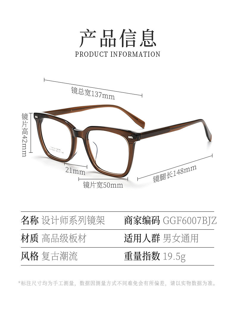 Japanese Retro Literary Square Frame Acetate Fashion Versatile Casual High-Quality Eyeglass Frames Danyang Glasses Wholesale