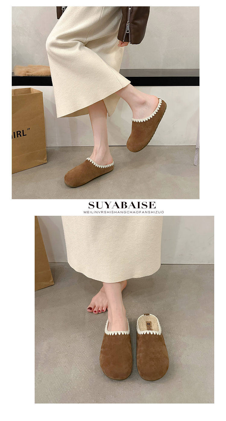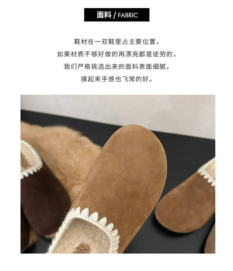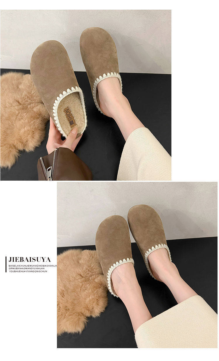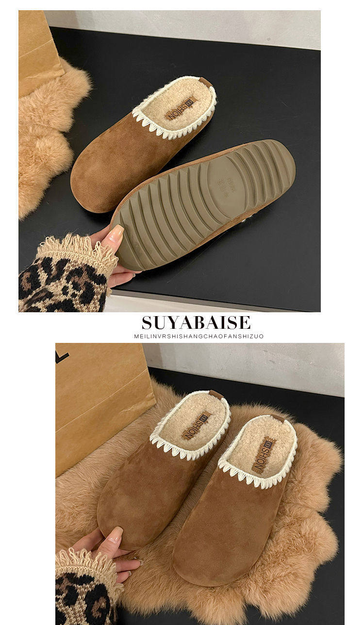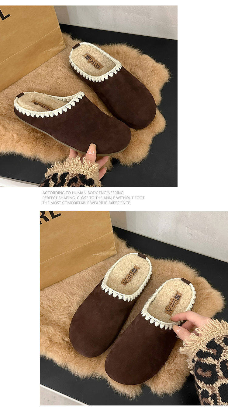 Exquisite and Fashionable~! Lace Atmosphere Fleece-Lined Birkenstock Slippers for Women Ins Outer Wear Warm Thick-Soled Woolen Cotton Slippers