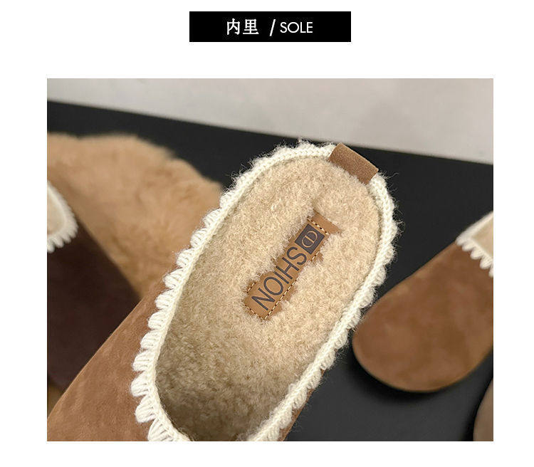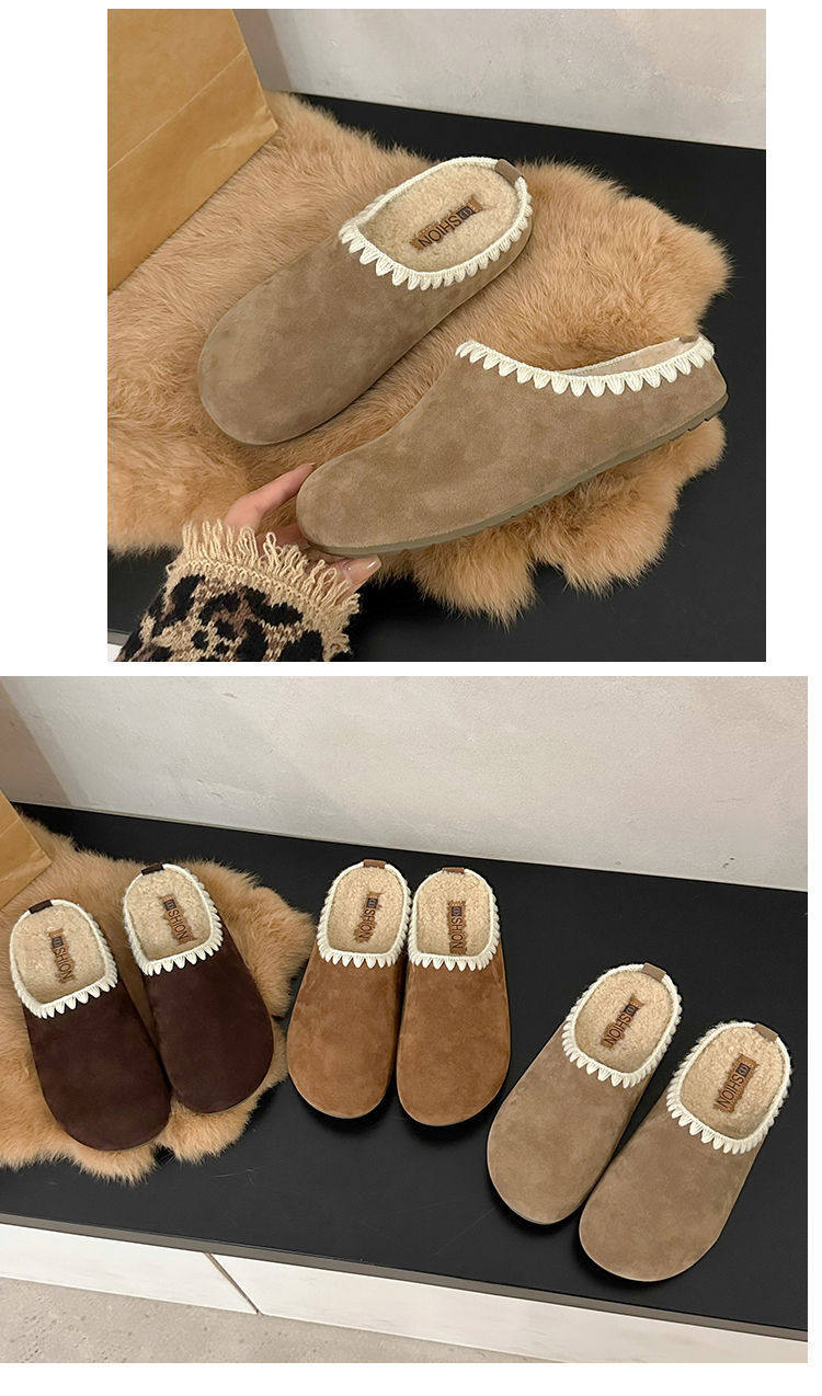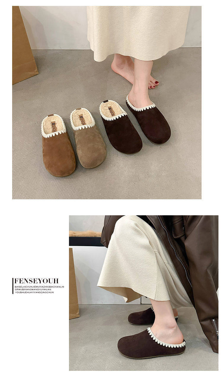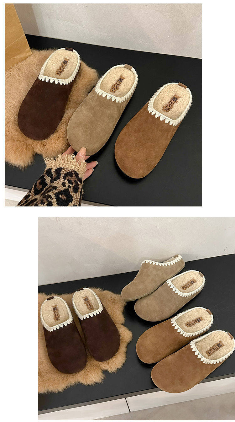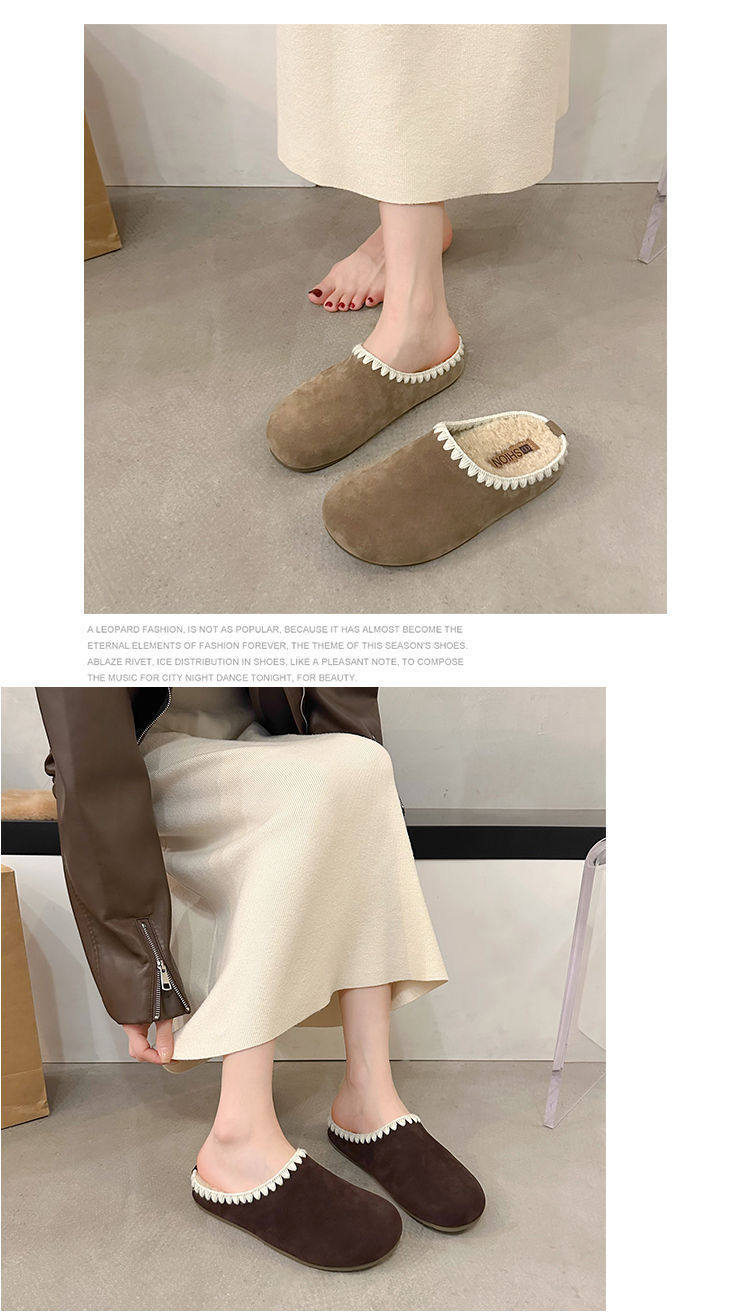 Exquisite and Fashionable~! Lace Atmosphere Fleece-Lined Birkenstock Slippers for Women Ins Outer Wear Warm Thick-Soled Woolen Cotton Slippers