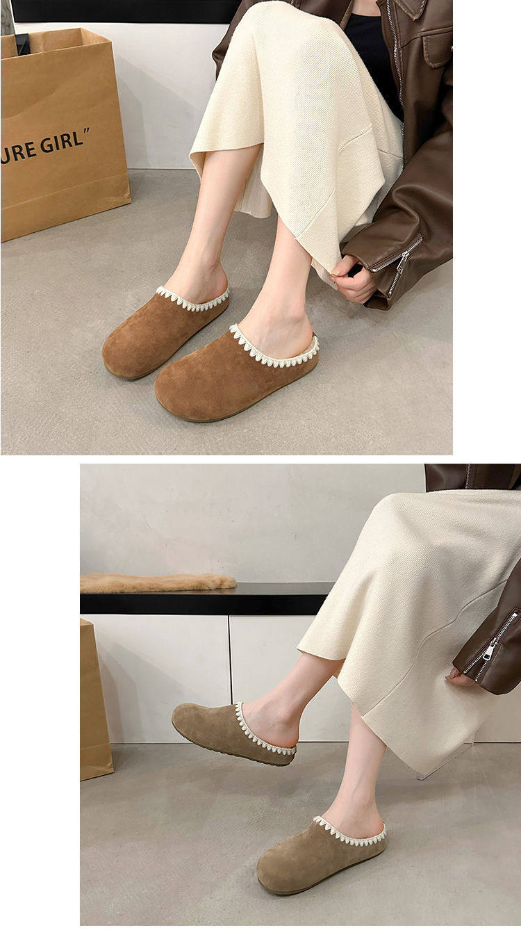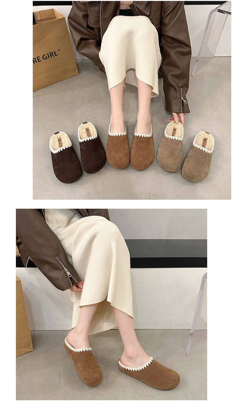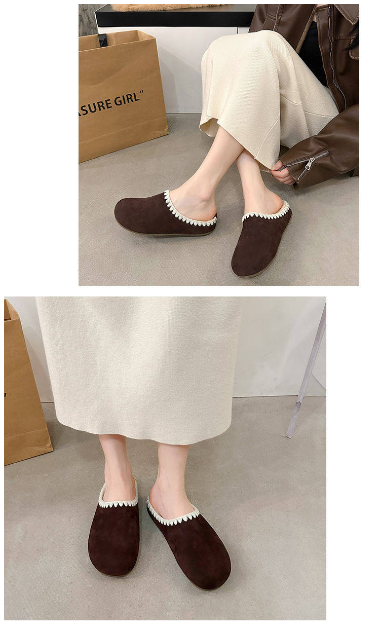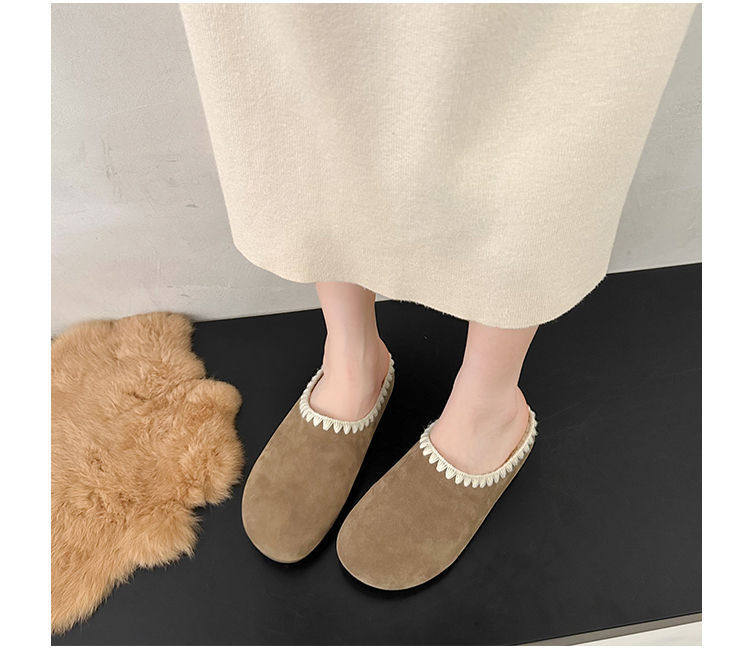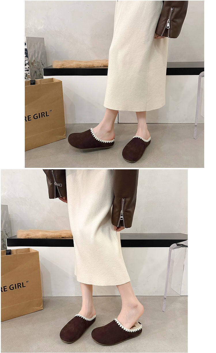 Exquisite and Fashionable~! Lace Atmosphere Fleece-Lined Birkenstock Slippers for Women Ins Outer Wear Warm Thick-Soled Woolen Cotton Slippers