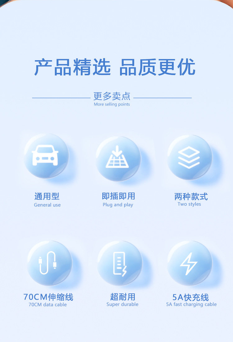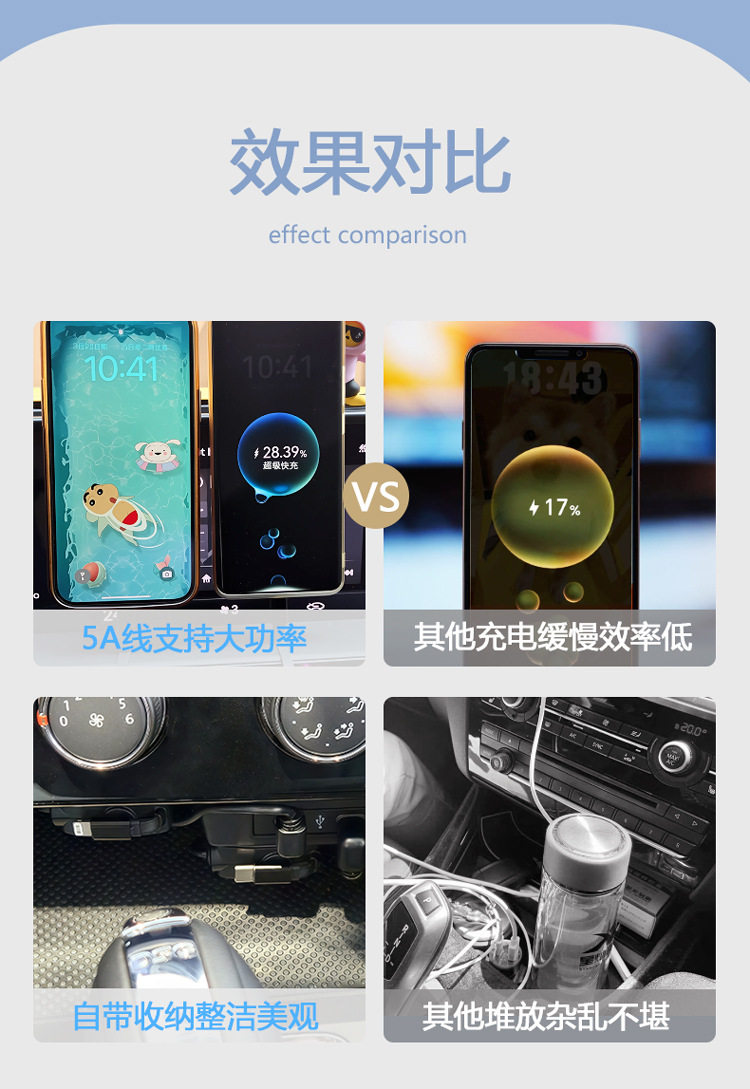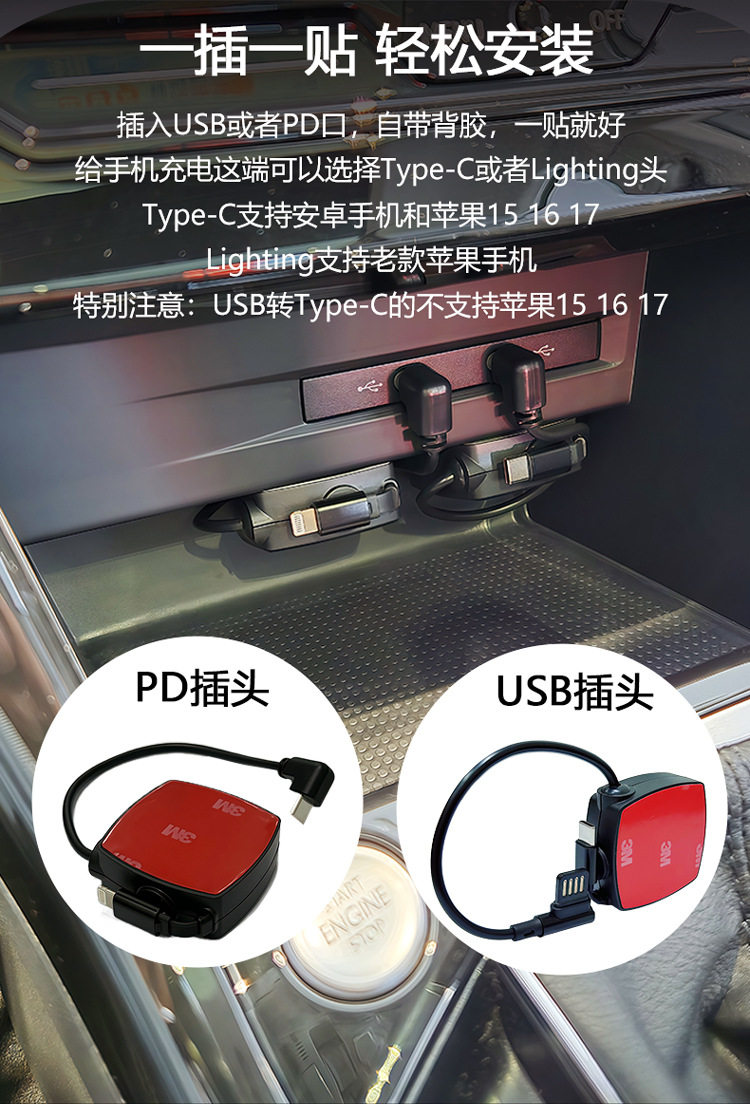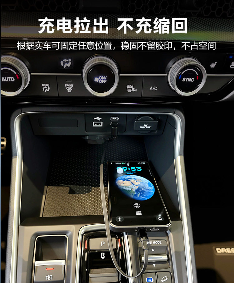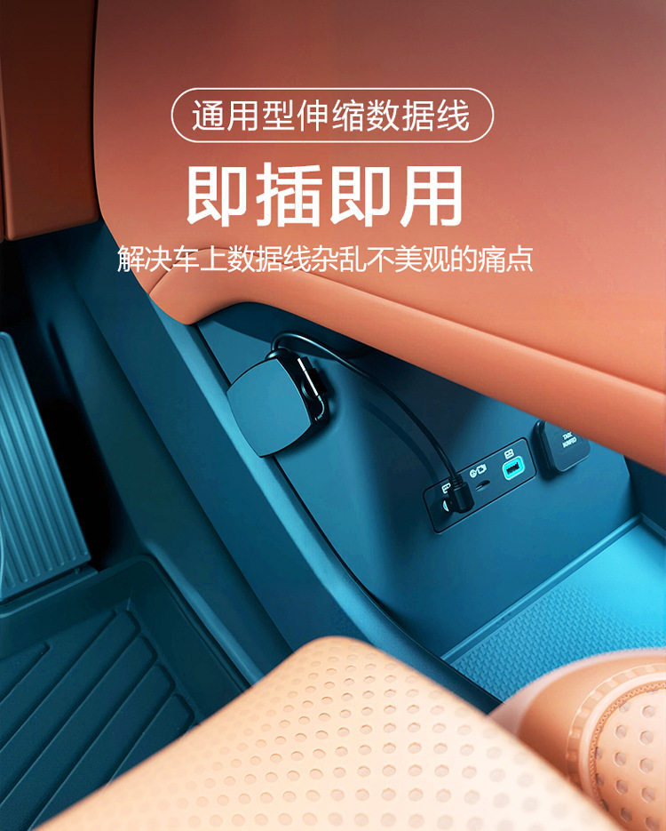 Car Universal Car Charger Super Fast Charging Retractable Cable Modified Adapter Plug Home Compatible with Android and Apple