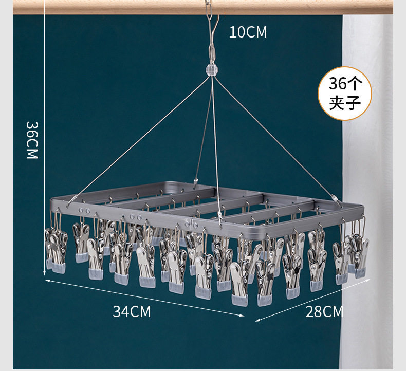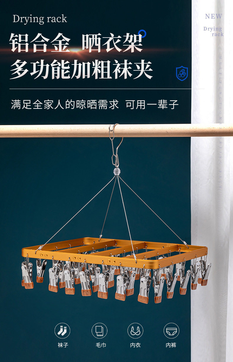 Aluminum Alloy Sock Rack Multi-Head Clothes Drying Rack Household Sock Drying Rack Multi-Clip Intimates Baby Baby Clothes Hanger