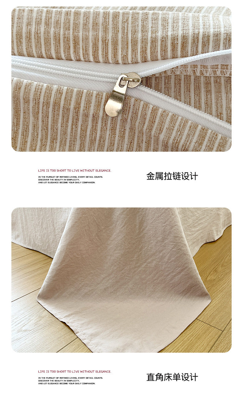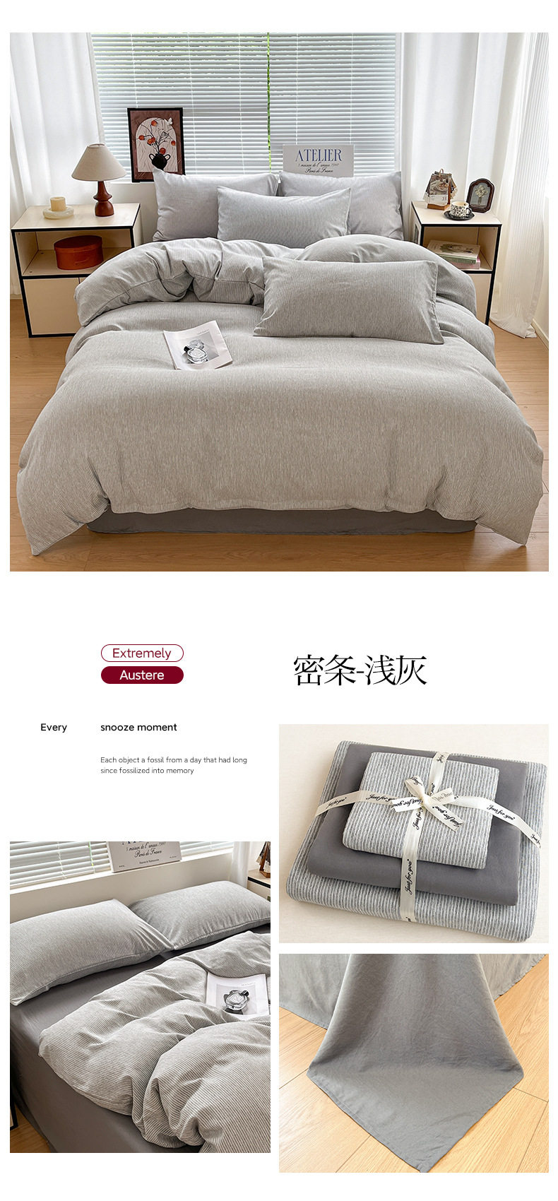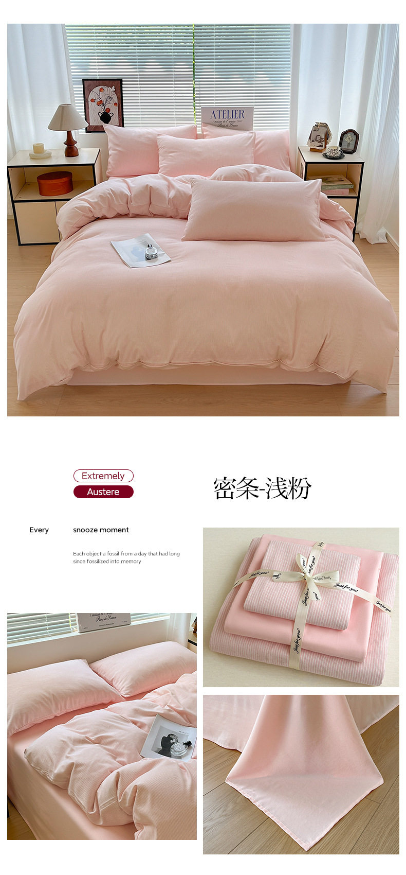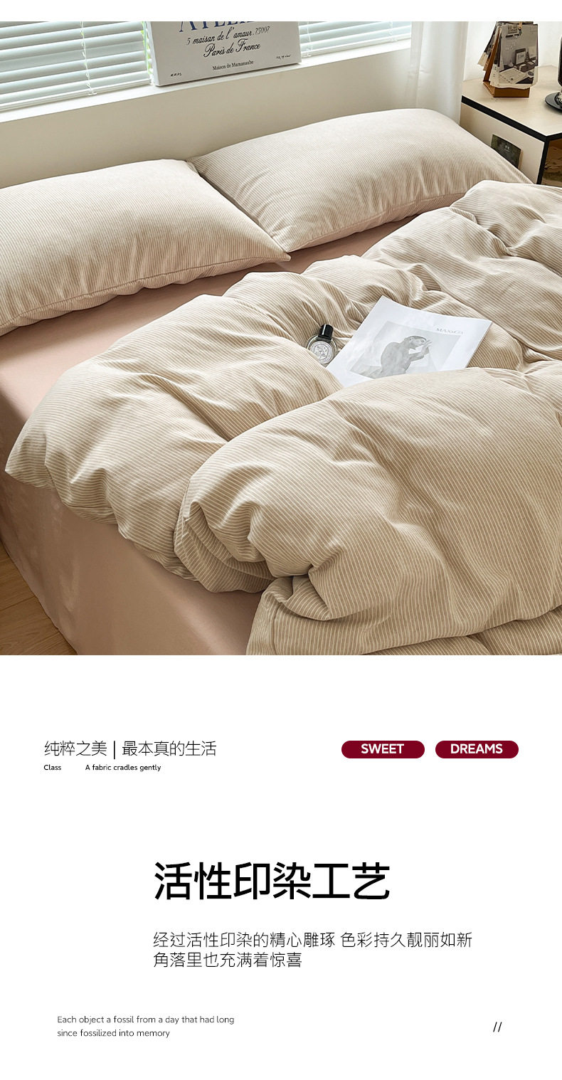Class a Simple Four-Piece Set of Washed Cotton Quilt Cover, Fitted Sheet, Striped Student Dormitory Three-Piece Bedding Set
