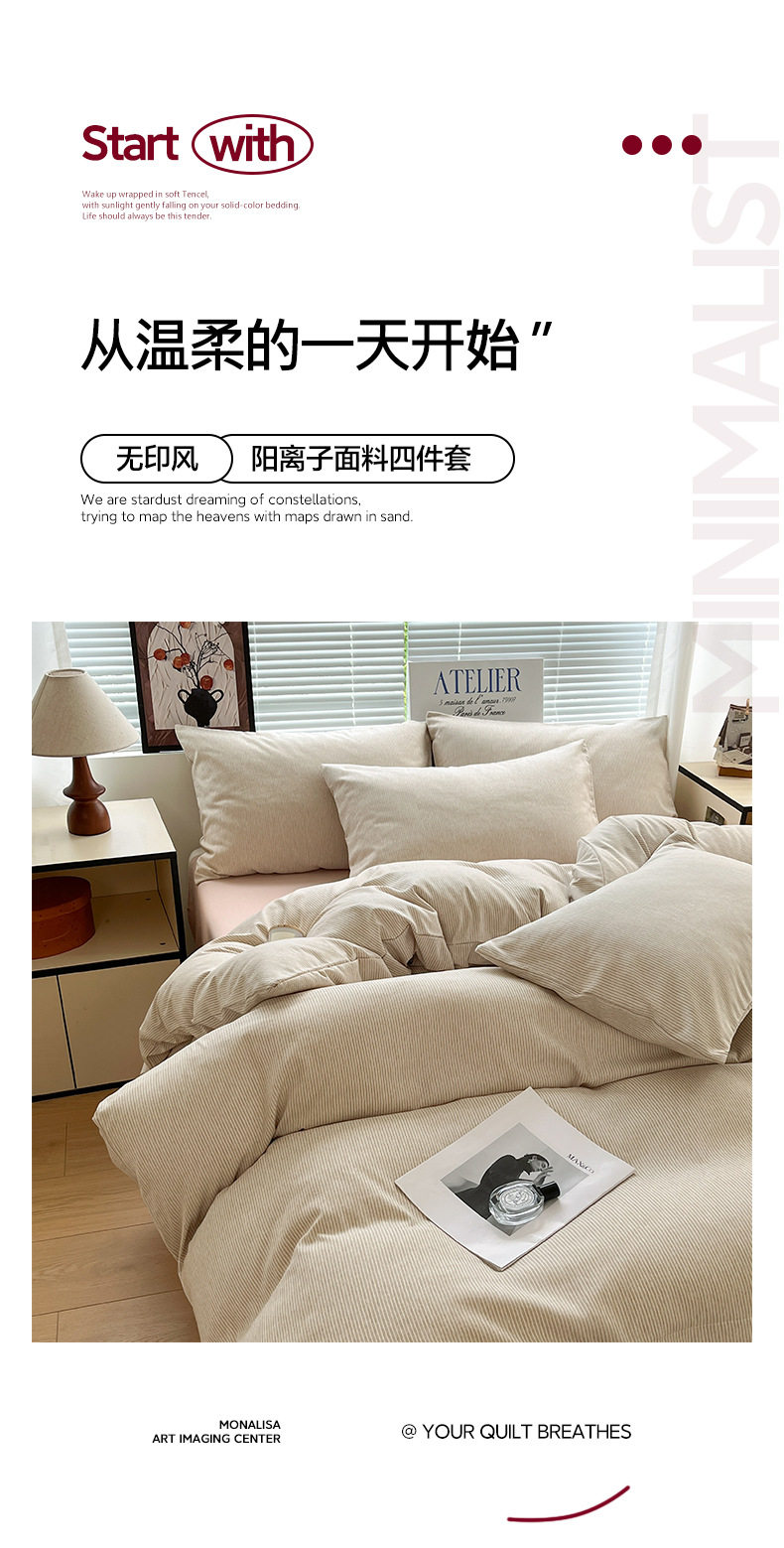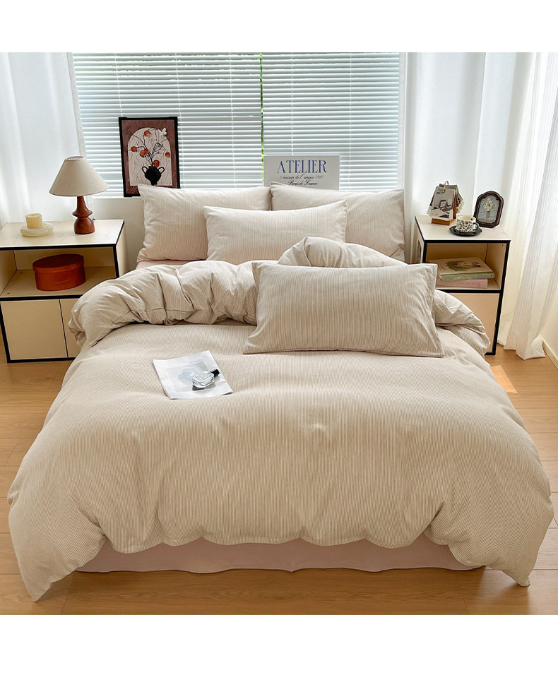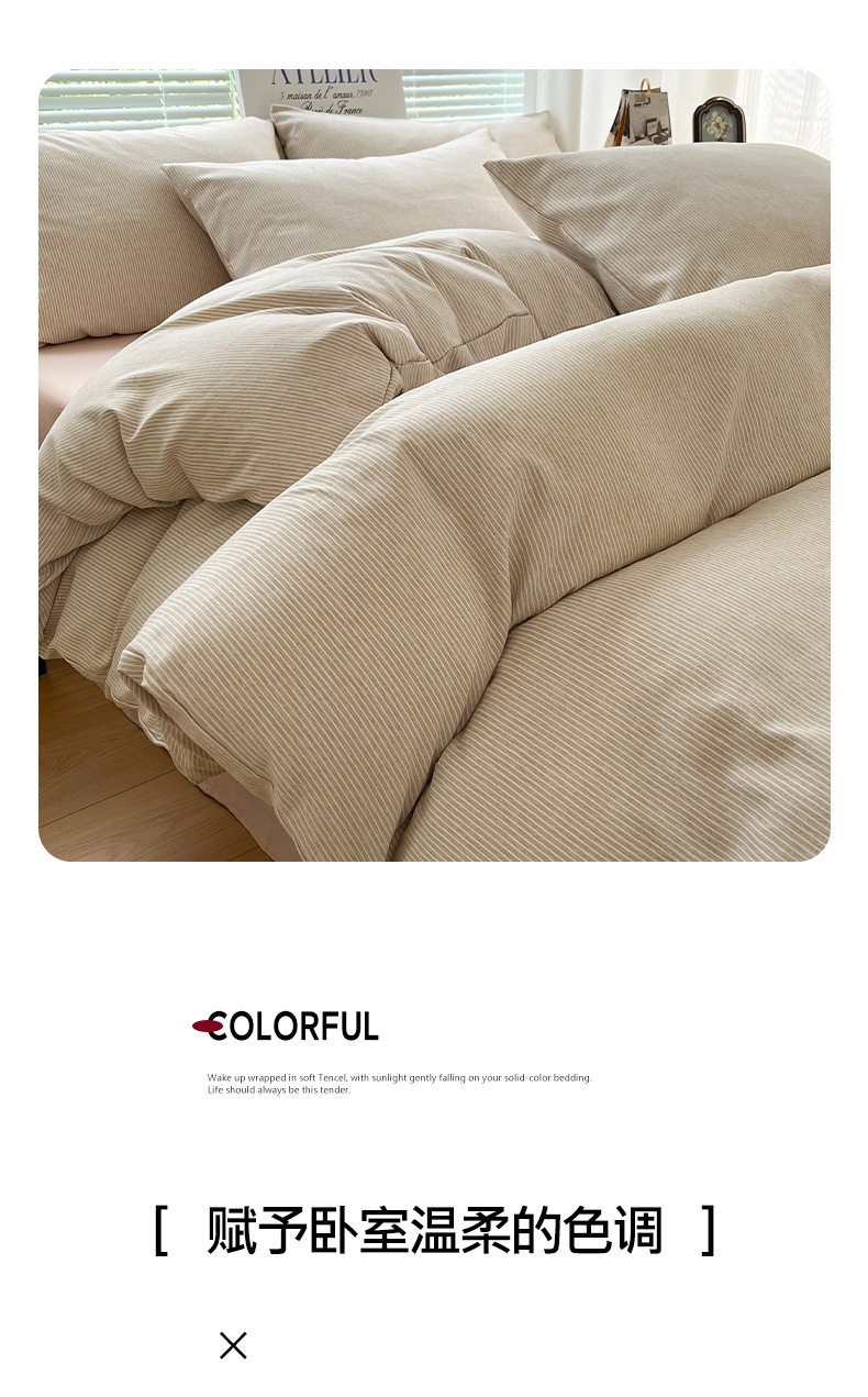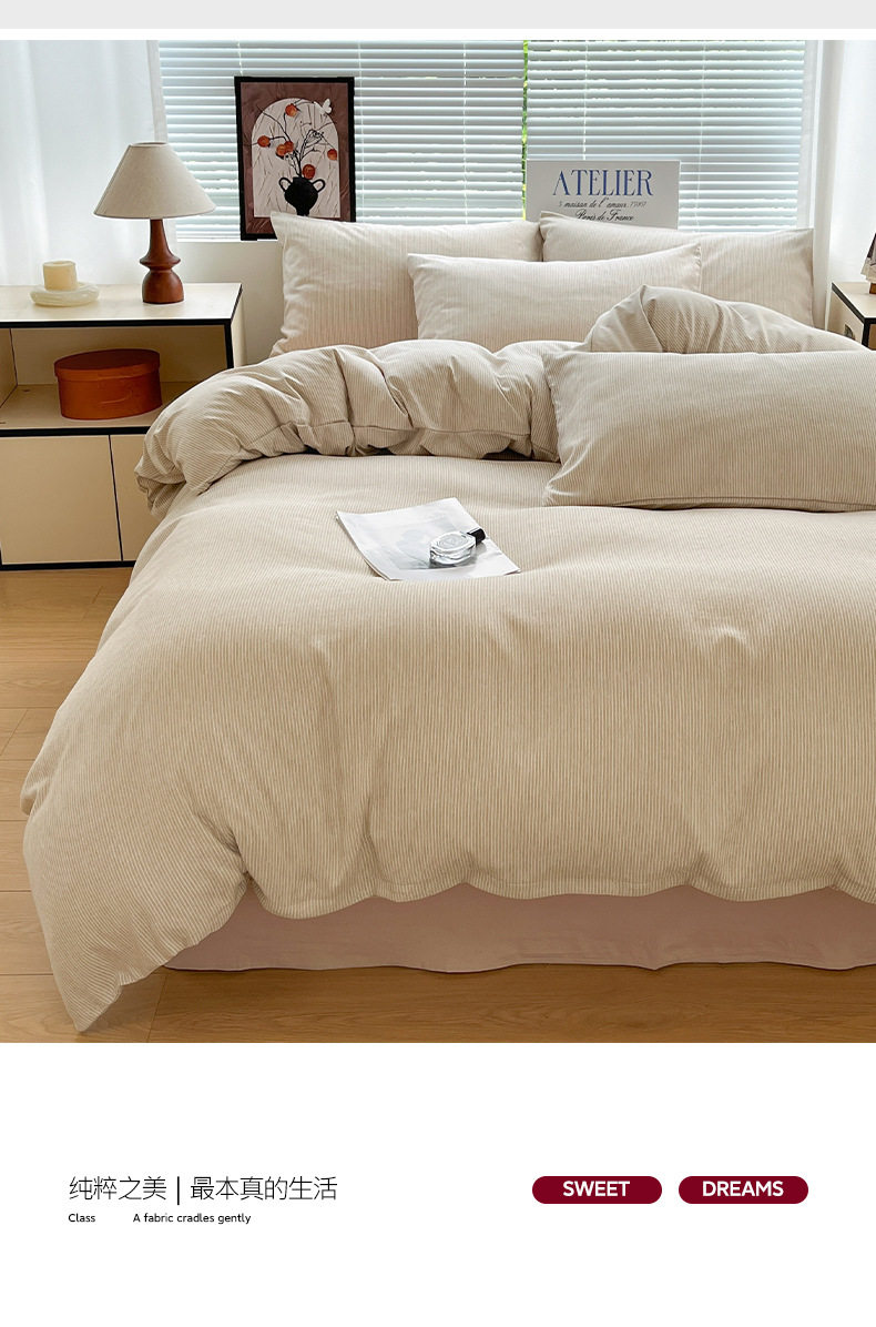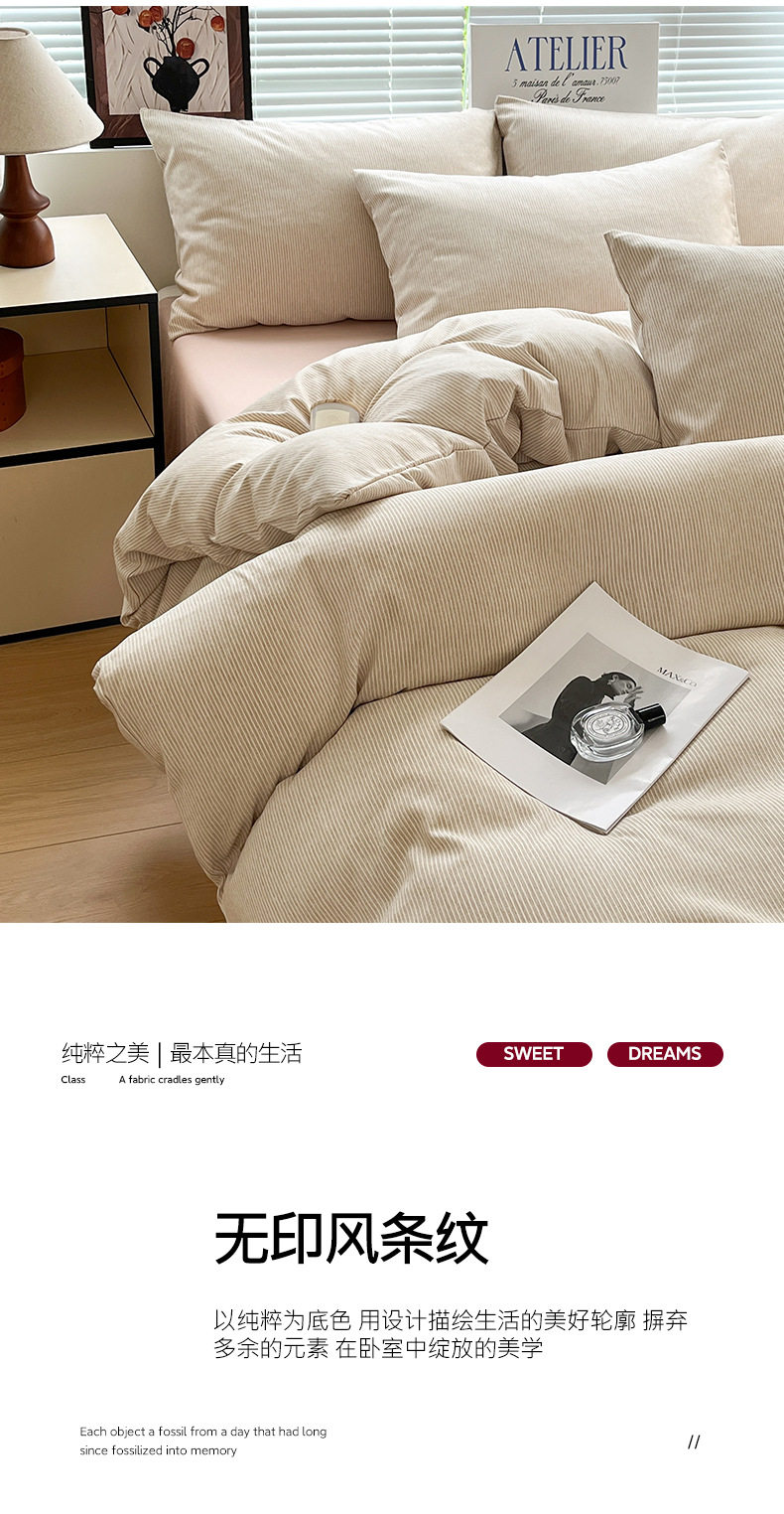 Class a Simple Four-Piece Set of Washed Cotton Quilt Cover, Fitted Sheet, Striped Student Dormitory Three-Piece Bedding Set