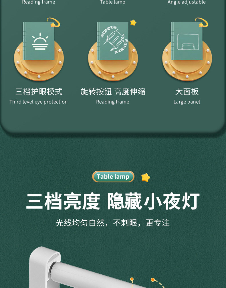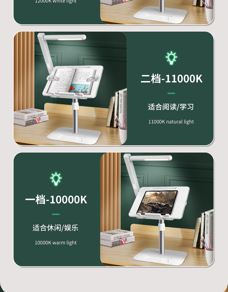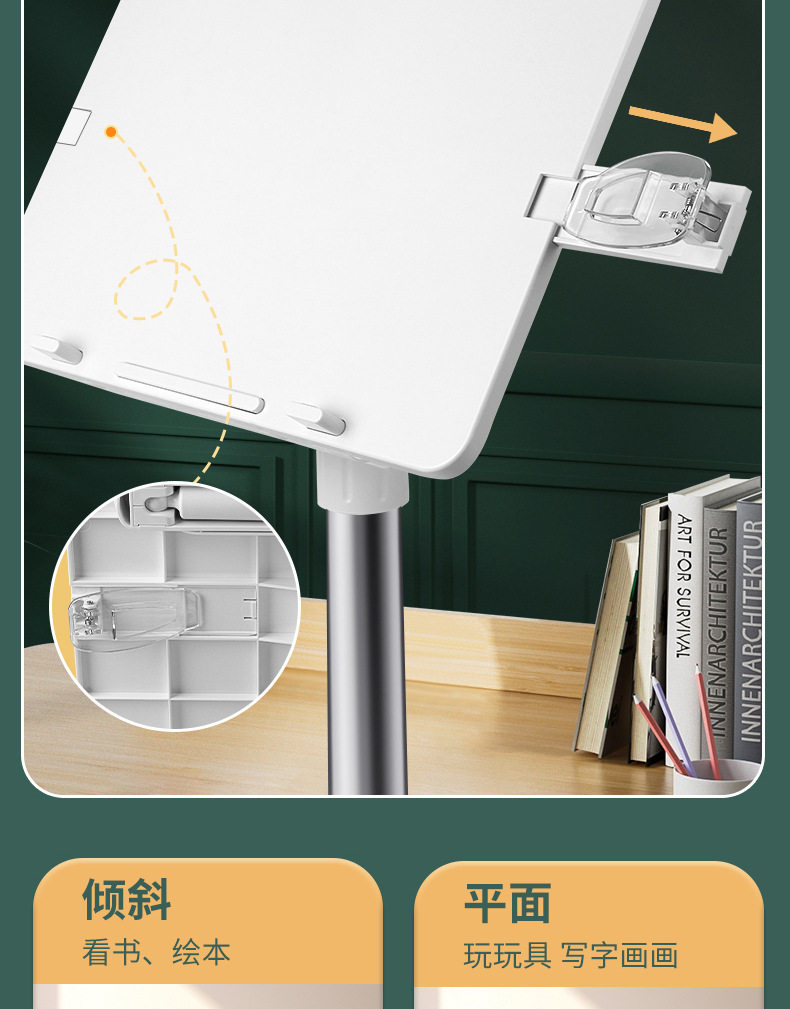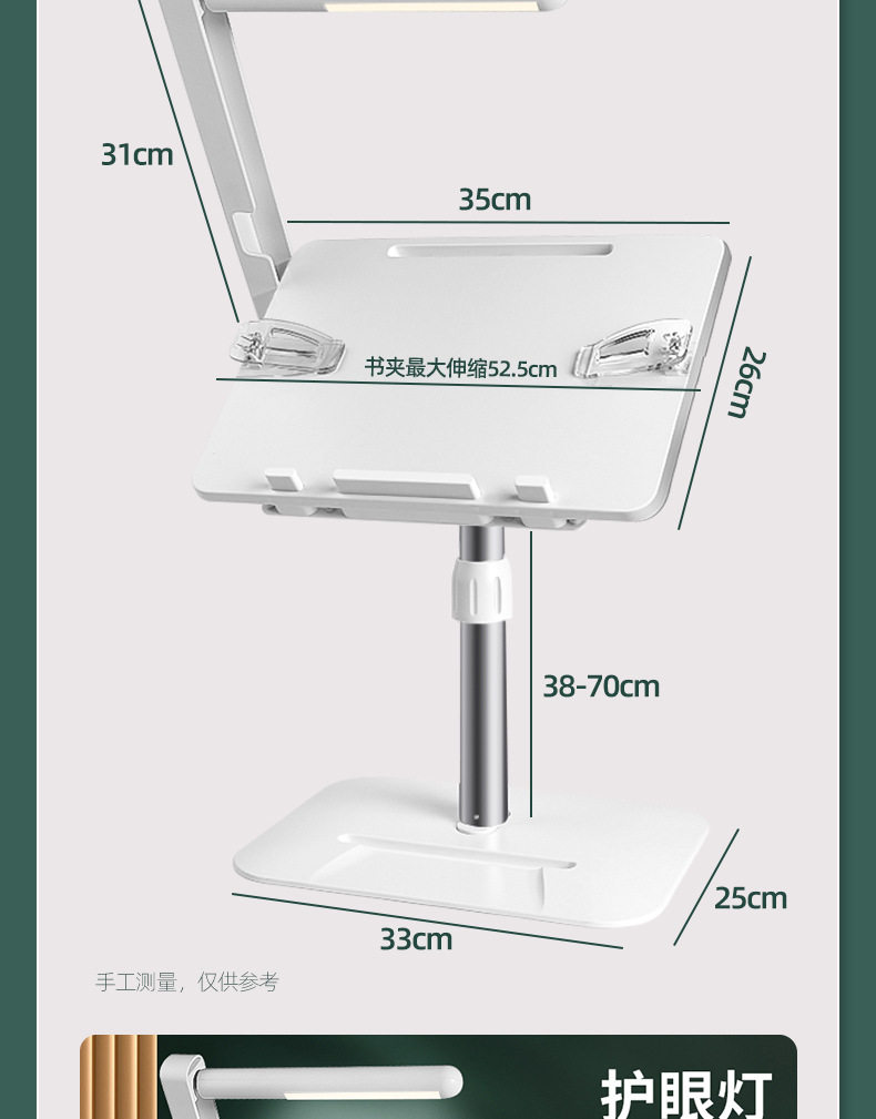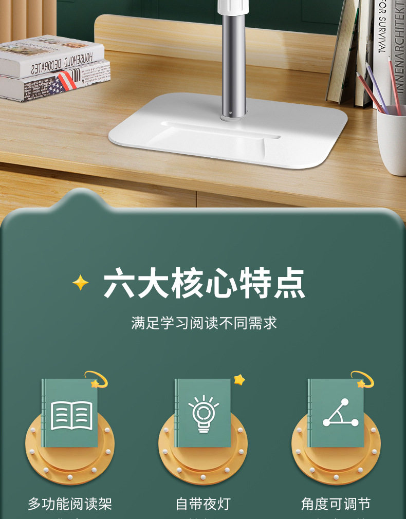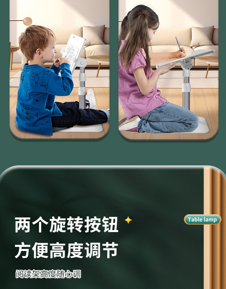 Liftable Reading Stand with Light, Reading Stand, Student Retractable Floor-Standing Bookshelf, Desktop Bed