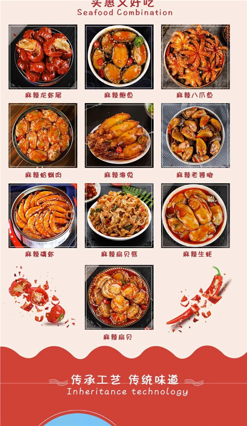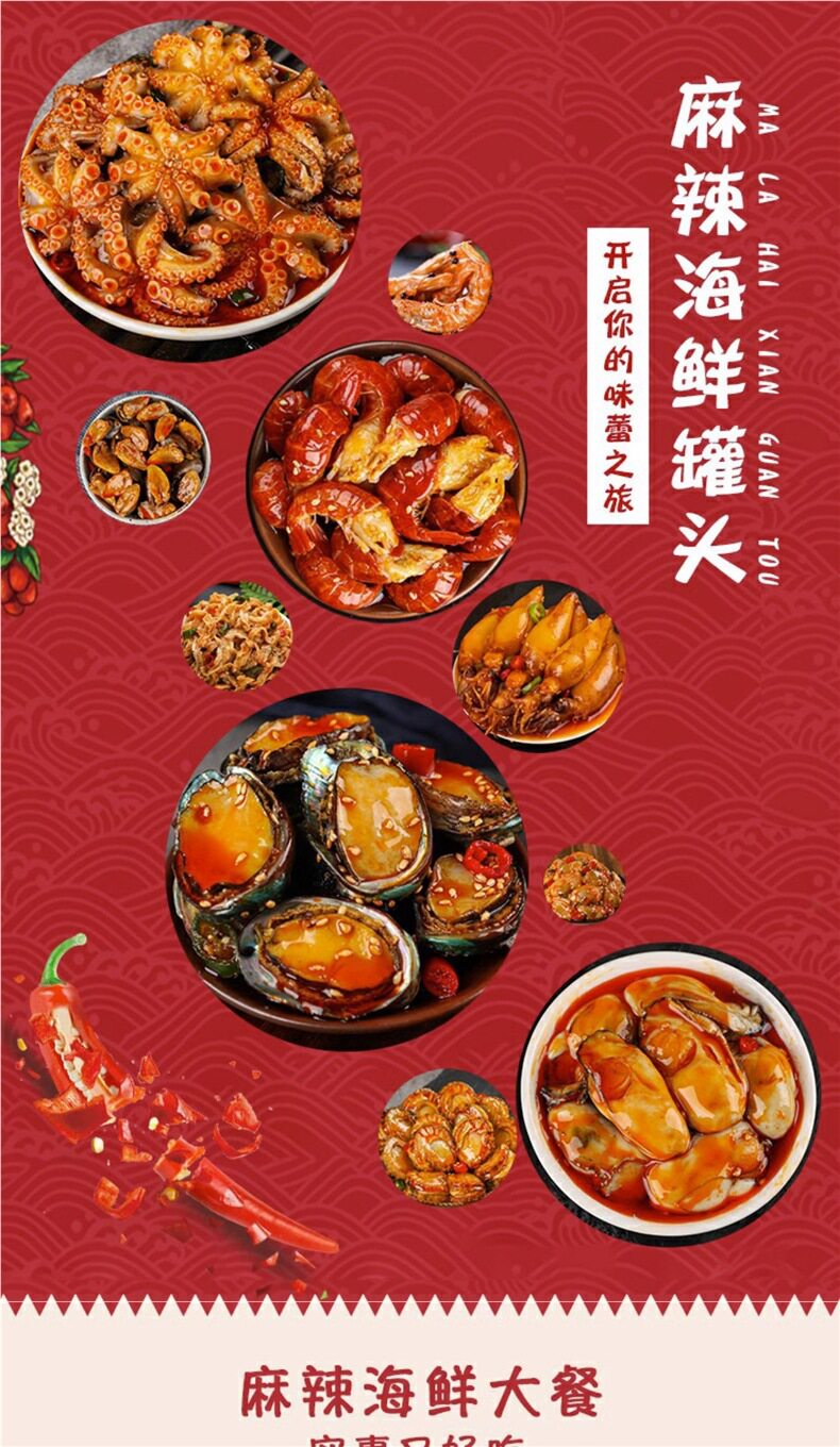 | Packaging specifications | Kejin makes 10 cans of [explosive seafood dinner] heavy weight subsidy,8 cans of hard goods [octopus, shrimp tail, oysters, etc.] full of domineering,[octopus + abalone + sea rabbit + scallop + squid] hard goods,[abalone + conch + scallops + clams + shrimp tail] hard goods,[eight tentacles + oysters + scallops + clams + squid] hard goods,[shrimp tail + oyster + scallop + clam + shell lip] hard goods,[octopus + scallops + clams + squid] send 4 cans,[octopus + sea rabbit + squid + shrimp tail] send 4 cans,[abalone + conch + scallops + clams] 4 cans,[shrimp tail + clam + scallop + oyster] 4 cans,[buy 1 get 2 free] octopus hair 3 cans,2 cans of oysters + 2 cans of scallops + 2 cans of squid,1 order per person [squid + hairtail + shellfish lips],1 can of spicy seafood |