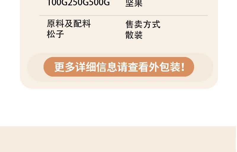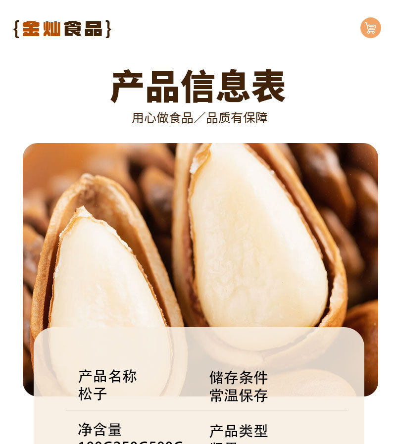 | Raw materials and ingredients | Main ingredient: pine nuts |
