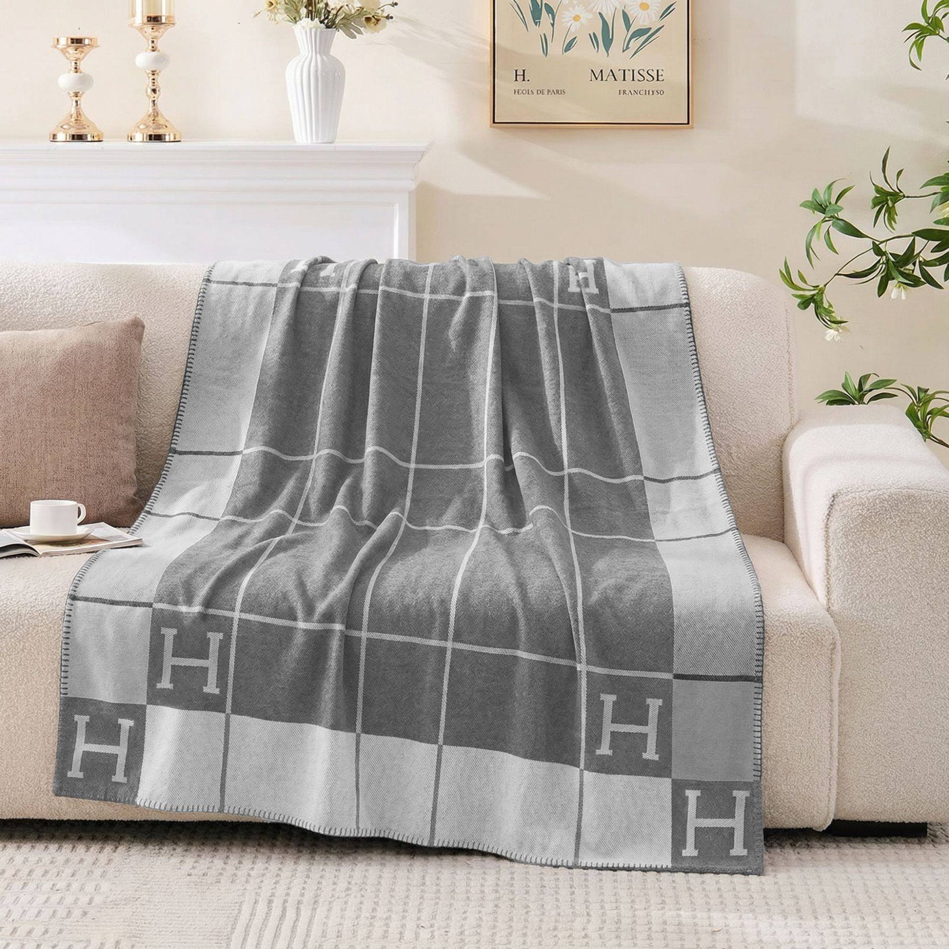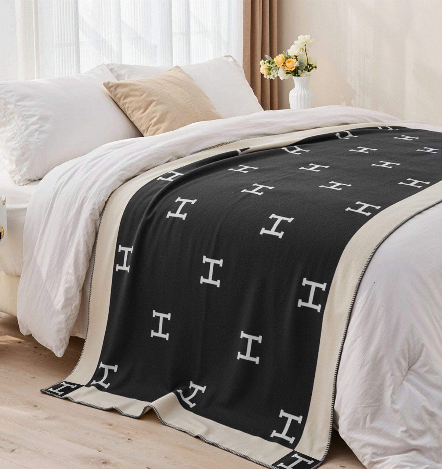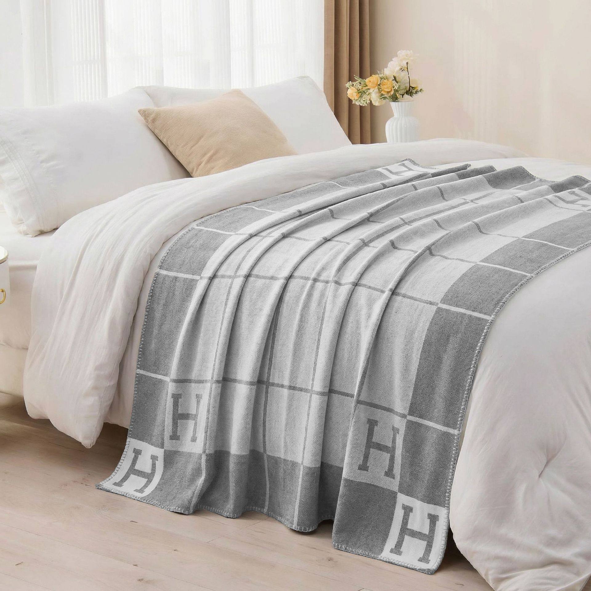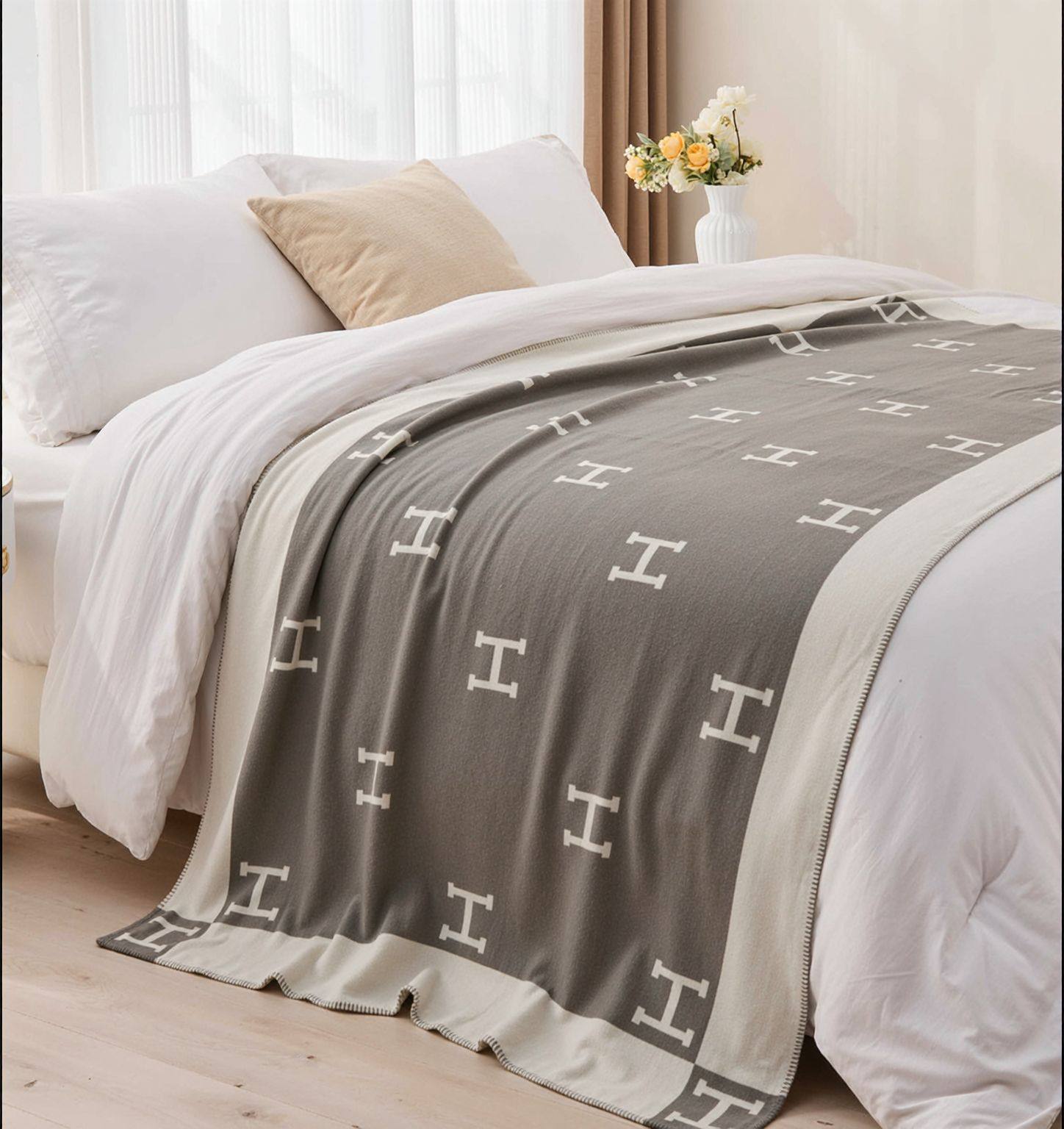 Cross-Border Amazon Woven Blanket Single Blanket Air-Conditioned Blanket Sofa Blanket Nap Blanket H Letter Blanket Aviation Flight Blanket