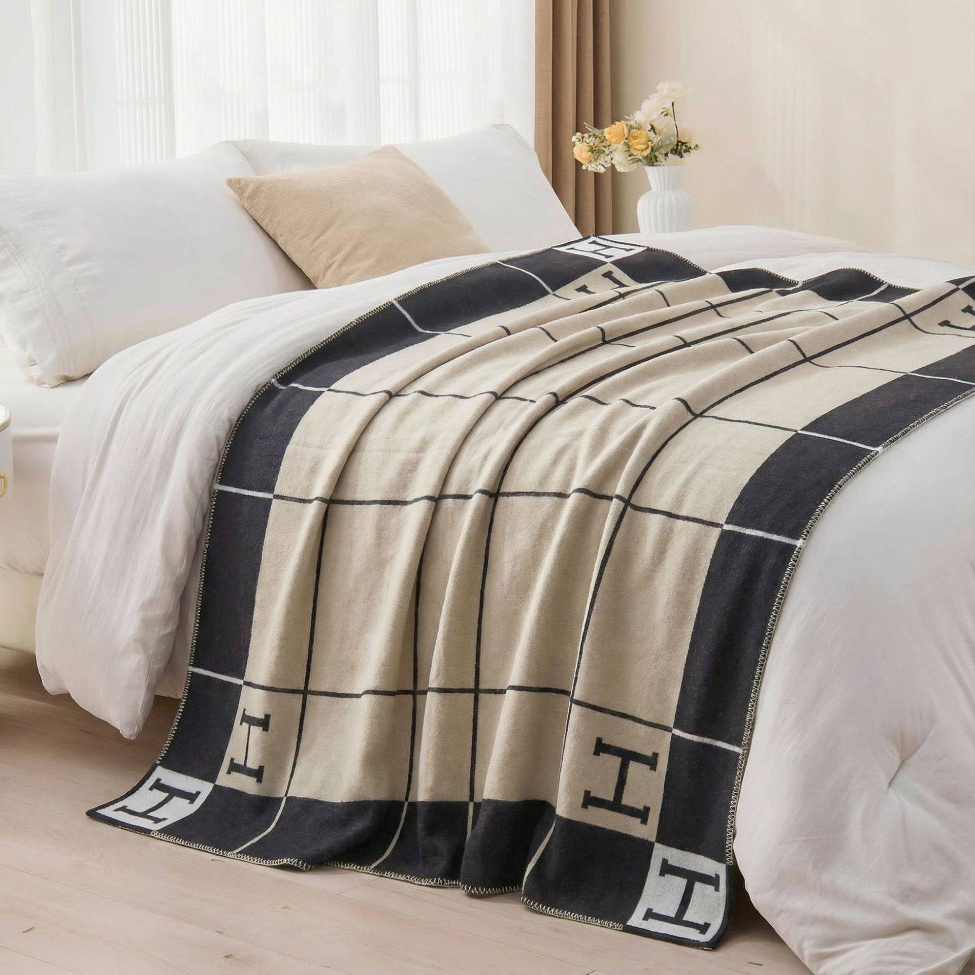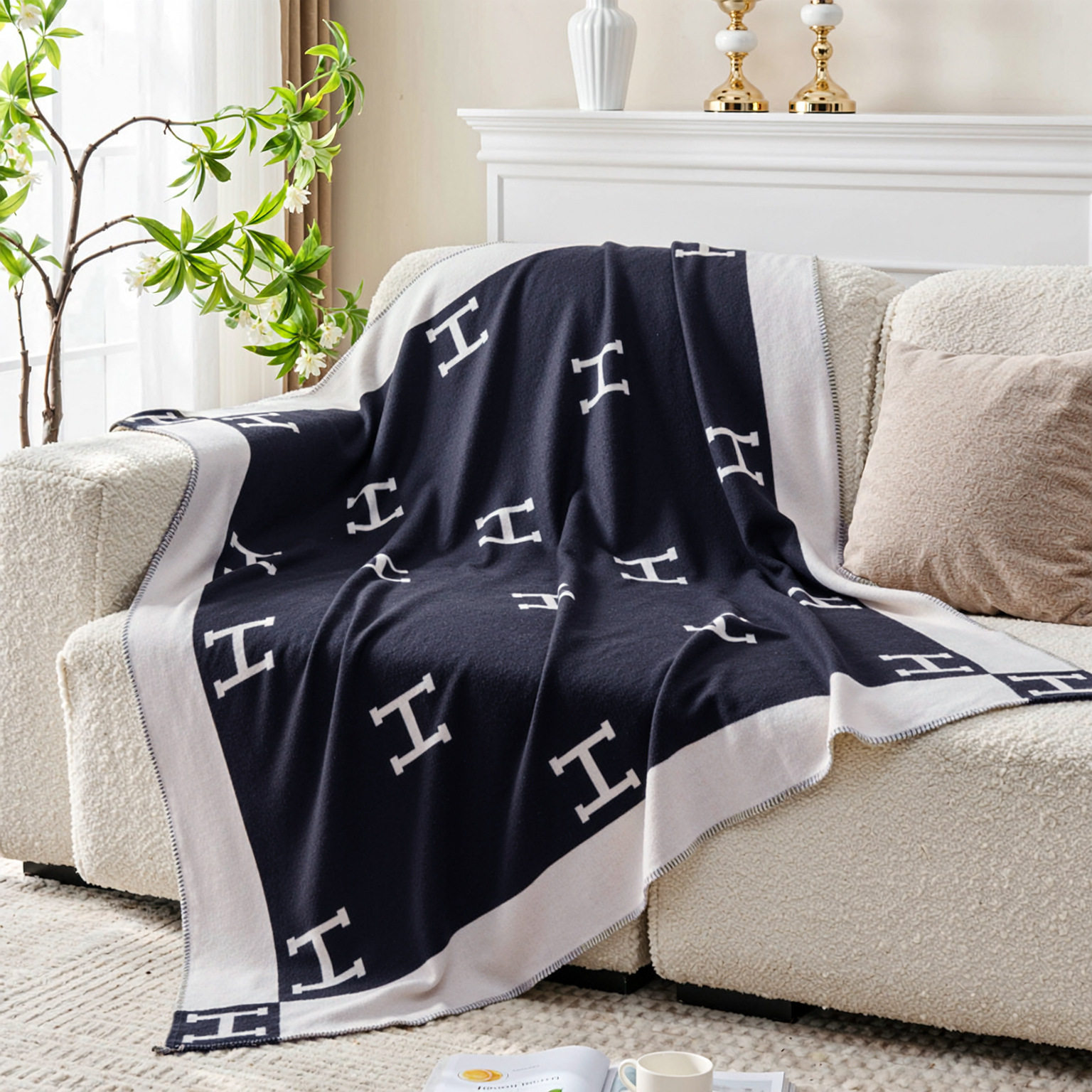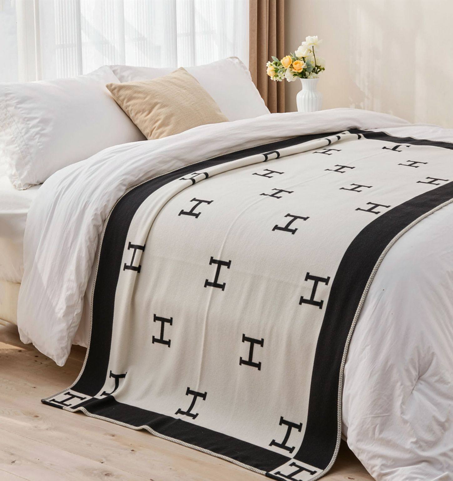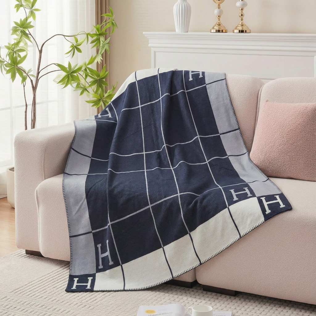 Cross-Border Amazon Woven Blanket Single Blanket Air-Conditioned Blanket Sofa Blanket Nap Blanket H Letter Blanket Aviation Flight Blanket