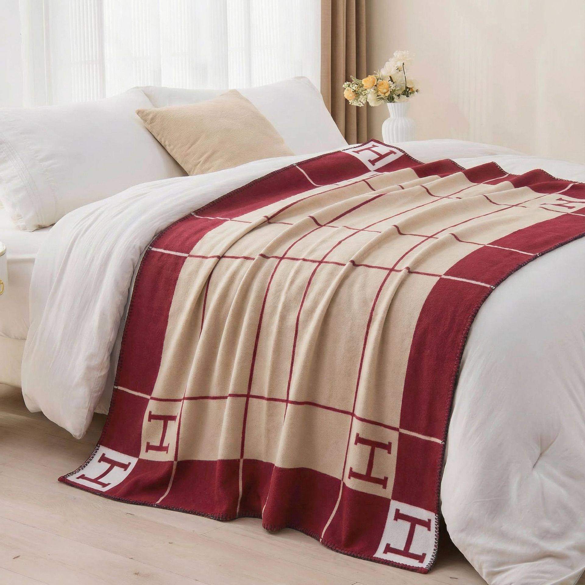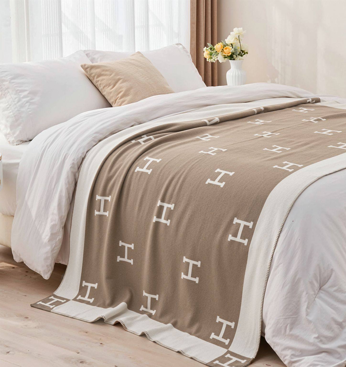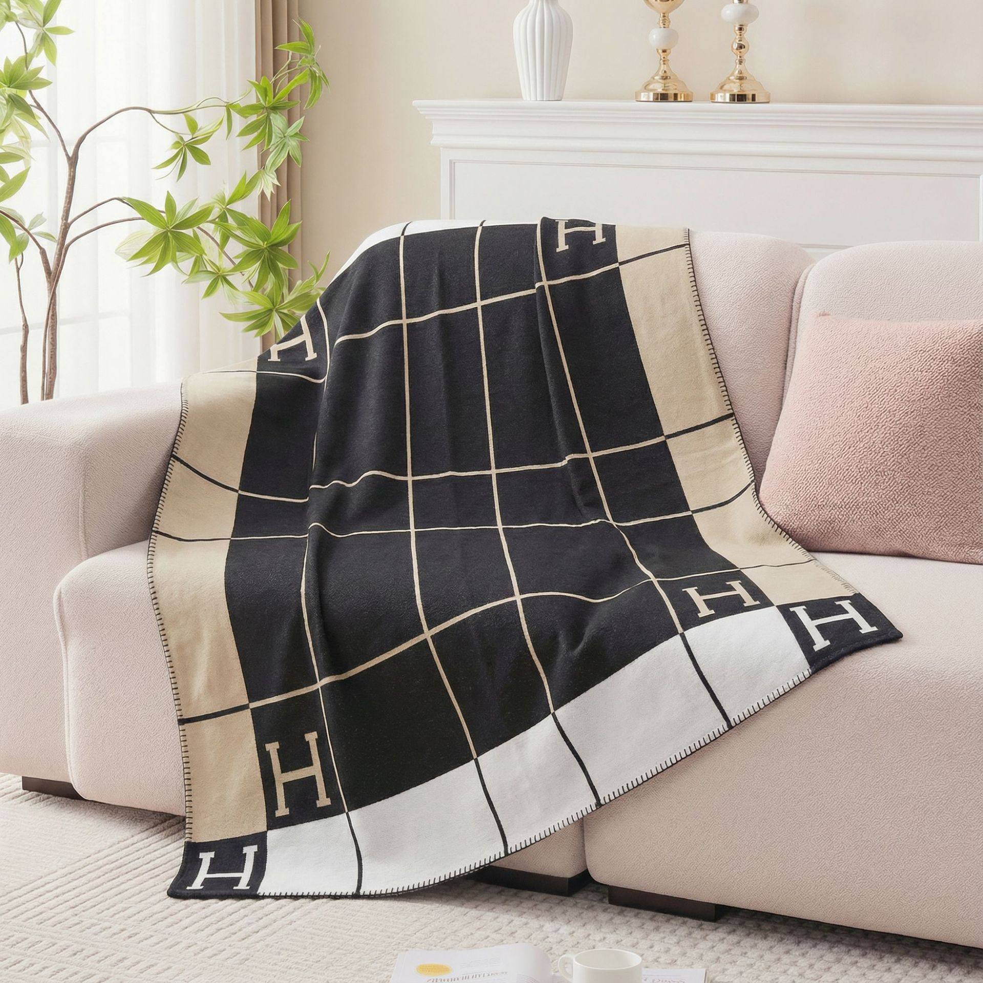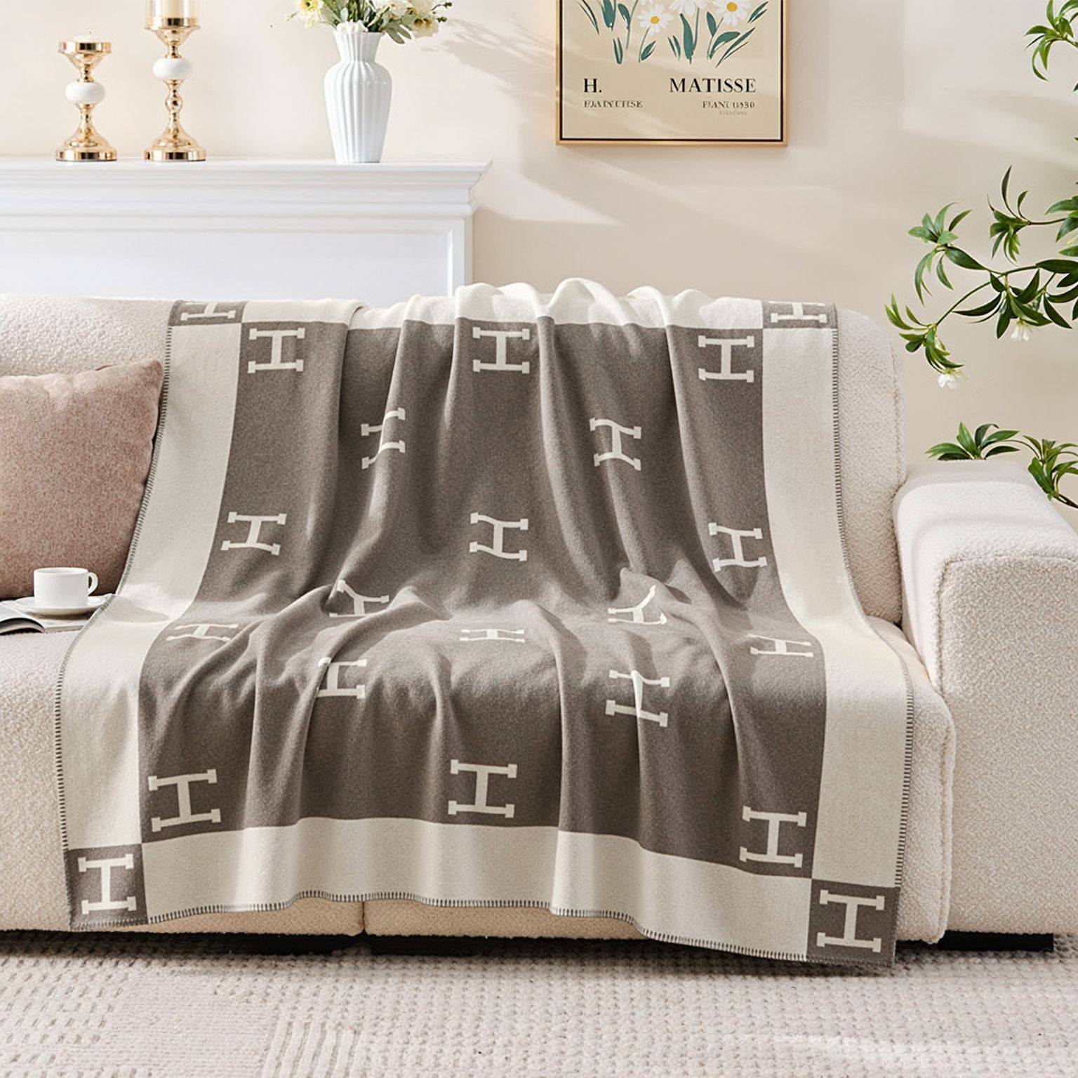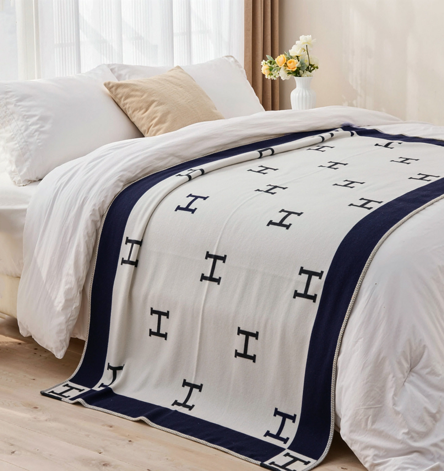 Cross-Border Amazon Woven Blanket Single Blanket Air-Conditioned Blanket Sofa Blanket Nap Blanket H Letter Blanket Aviation Flight Blanket