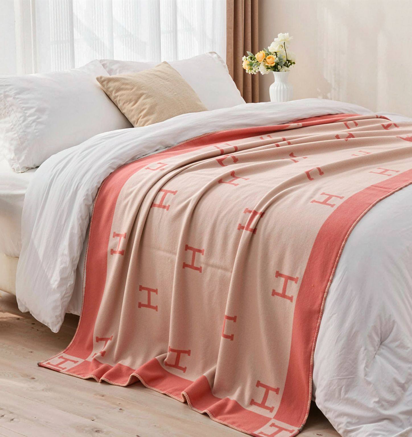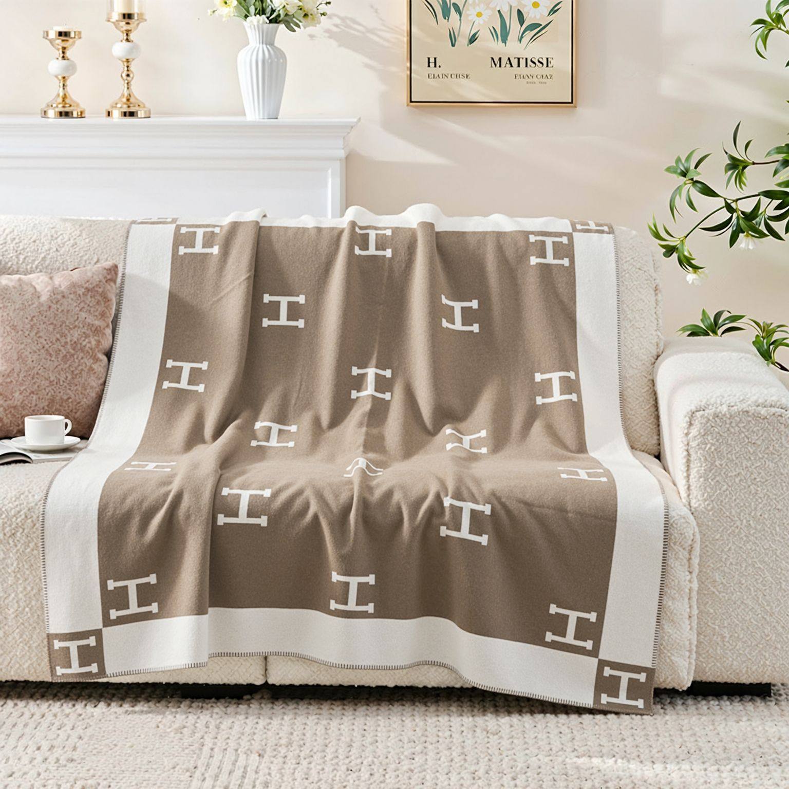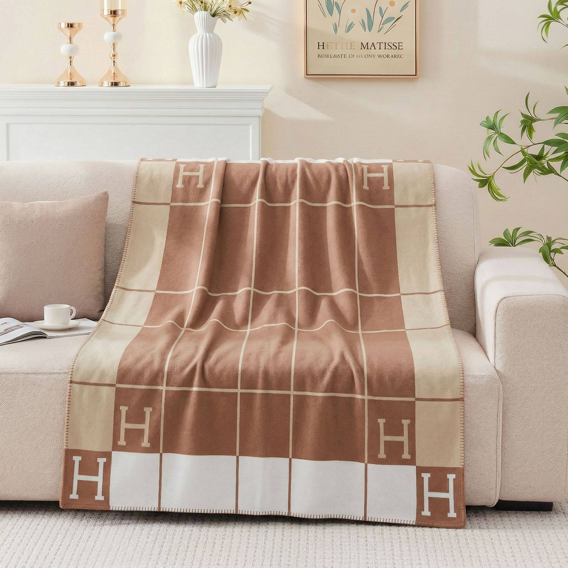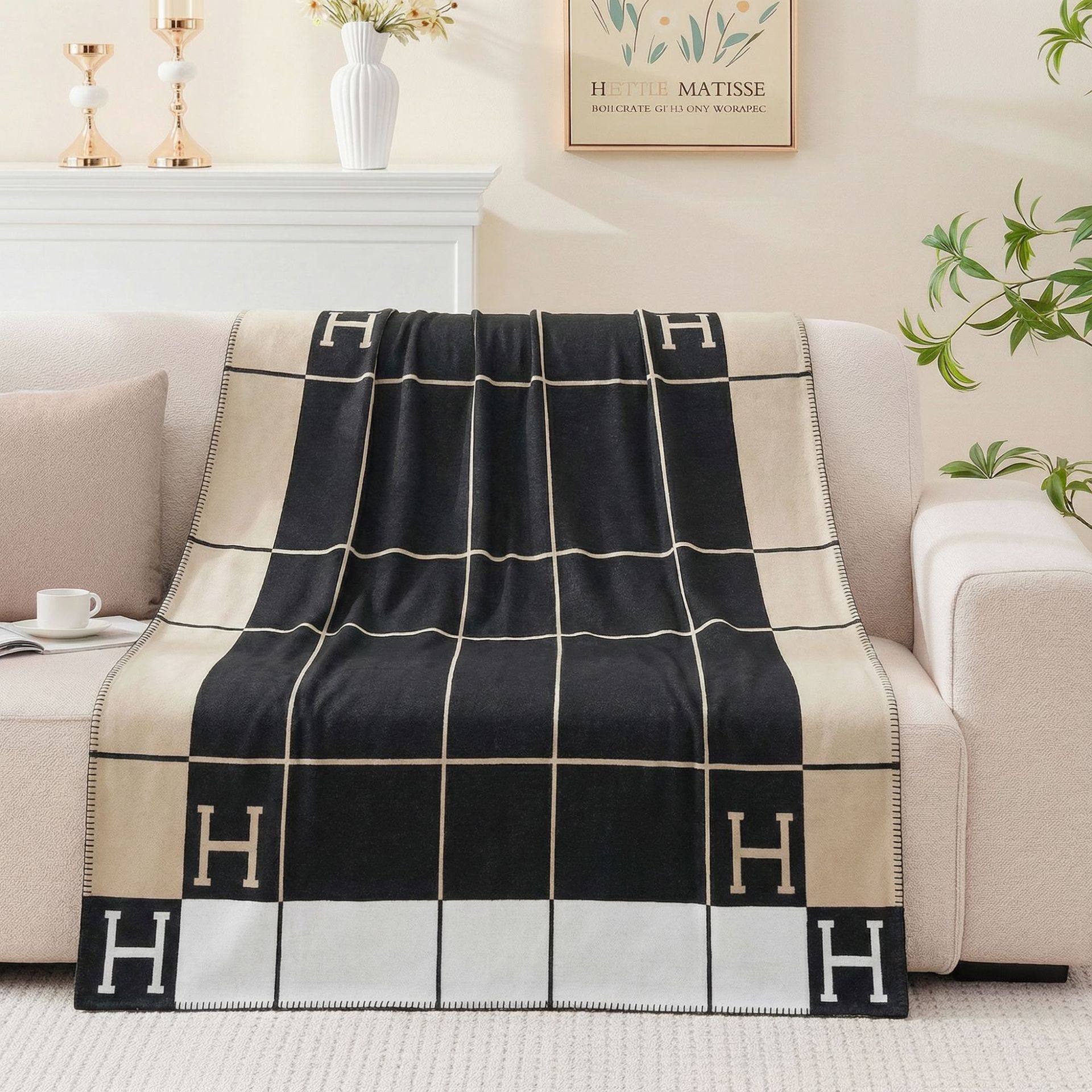 Cross-Border Amazon Woven Blanket Single Blanket Air-Conditioned Blanket Sofa Blanket Nap Blanket H Letter Blanket Aviation Flight Blanket