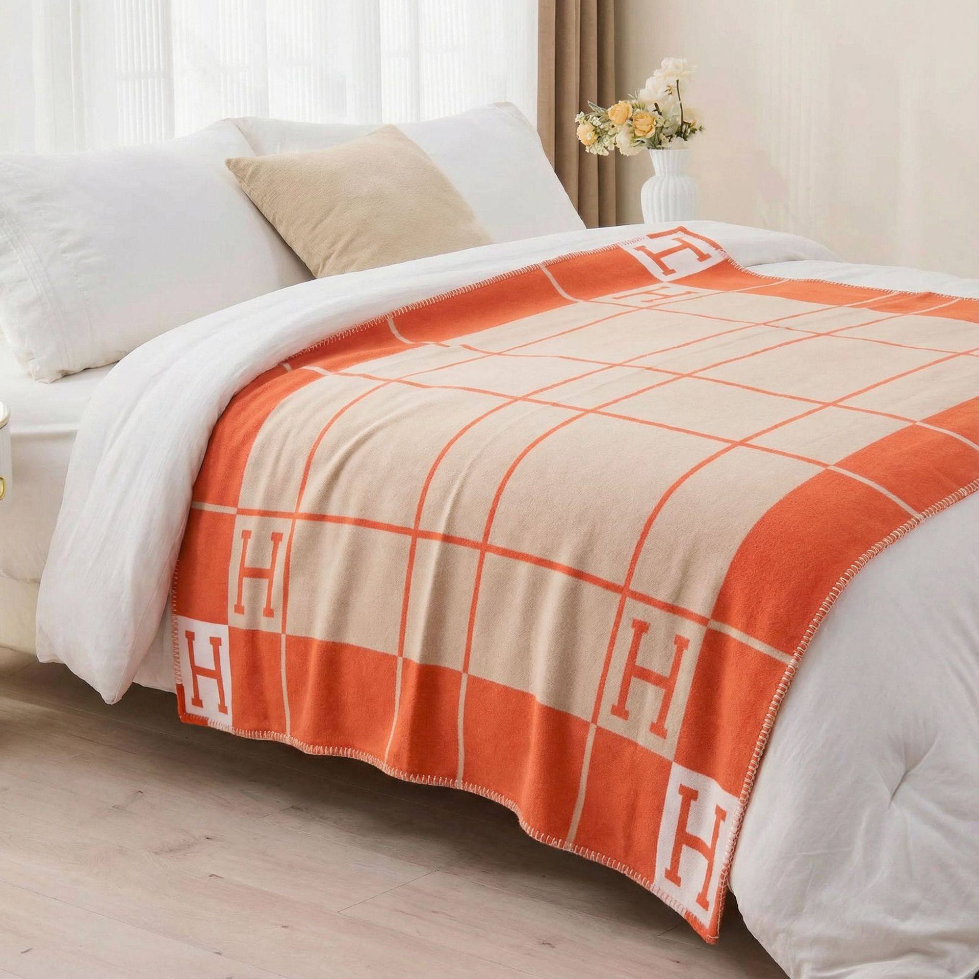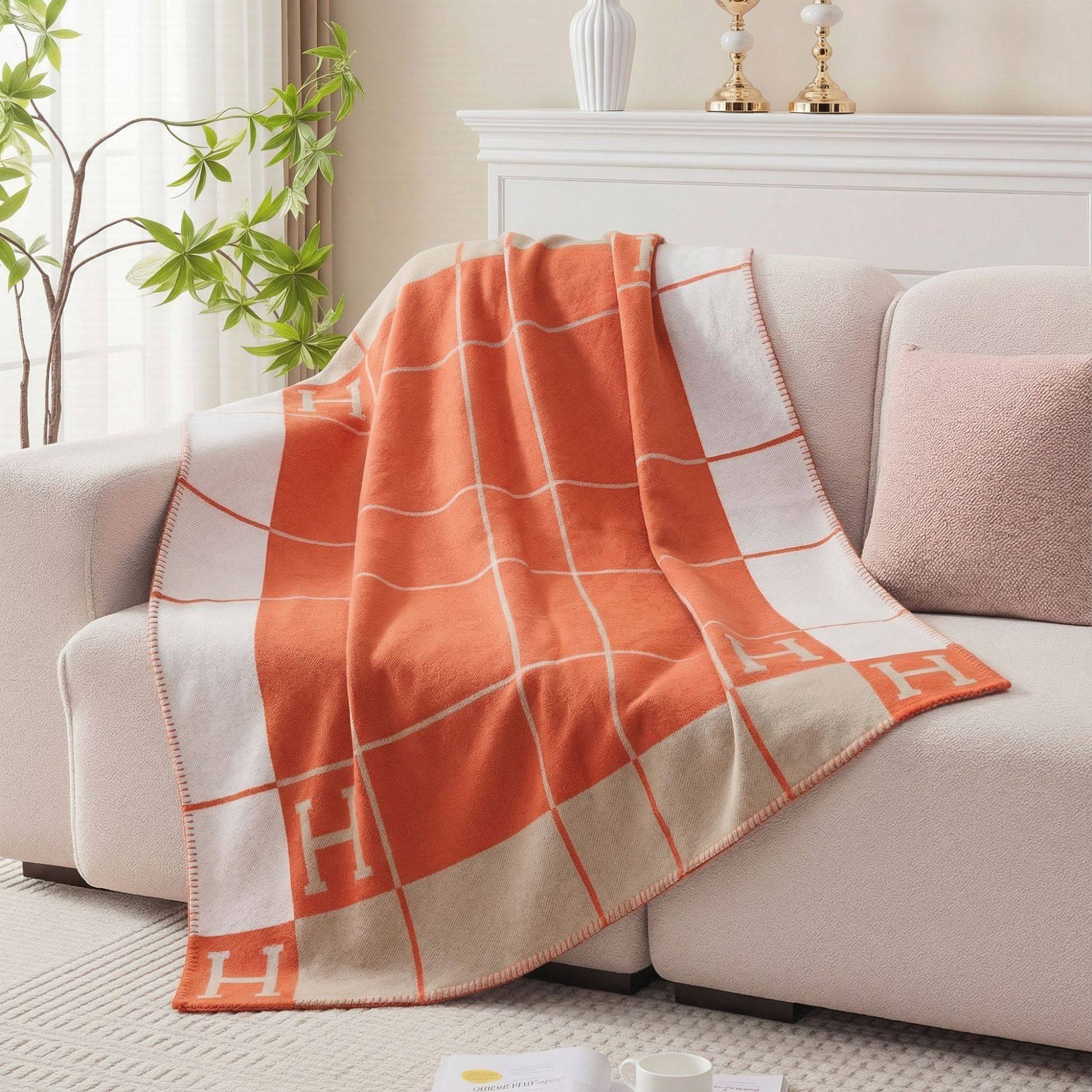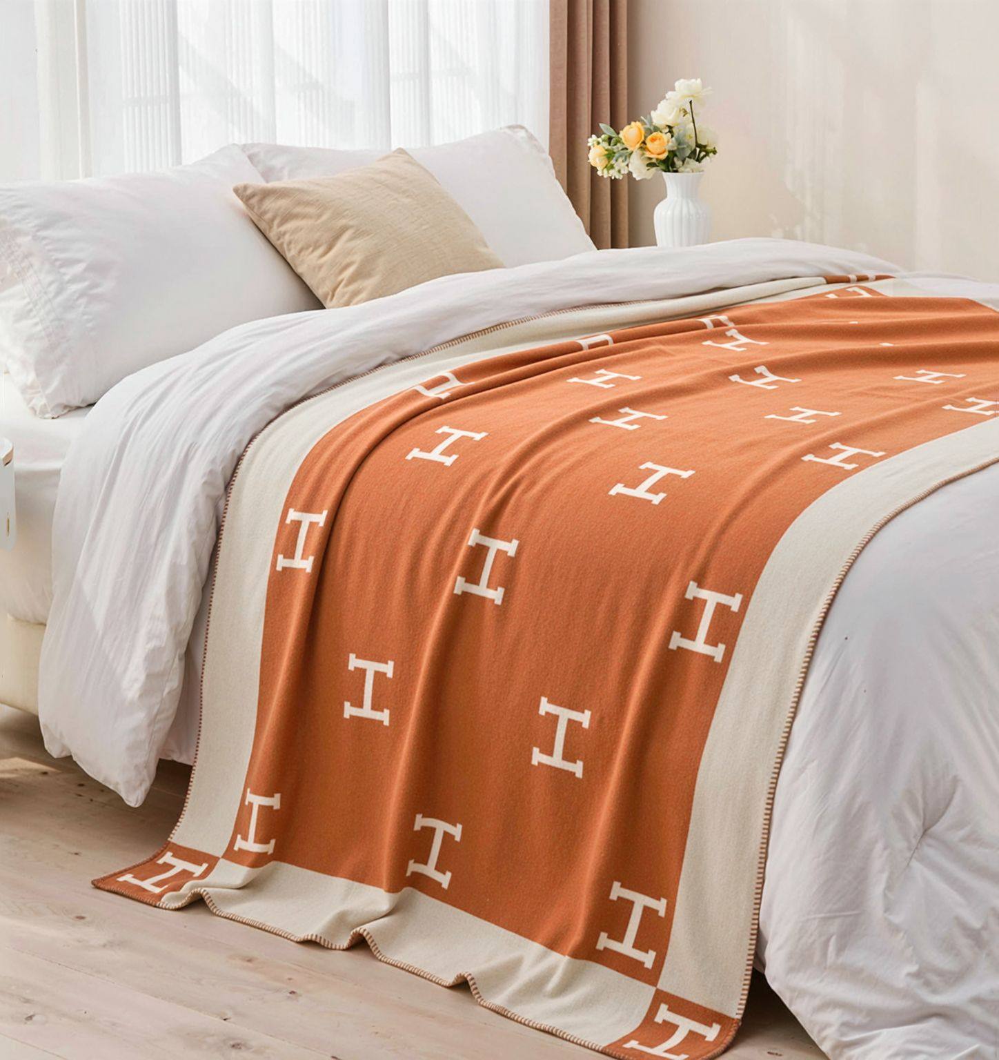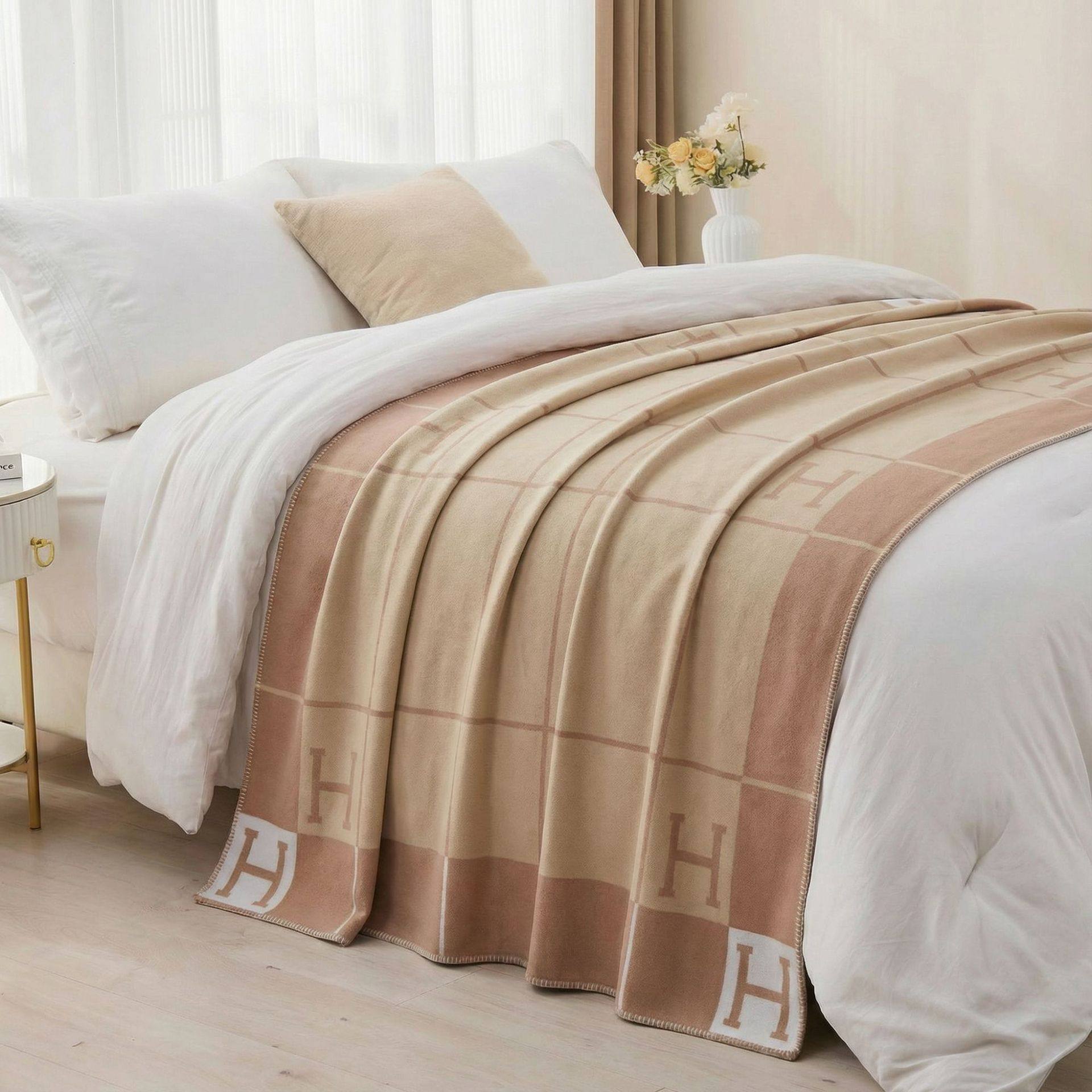 Cross-Border Amazon Woven Blanket Single Blanket Air-Conditioned Blanket Sofa Blanket Nap Blanket H Letter Blanket Aviation Flight Blanket