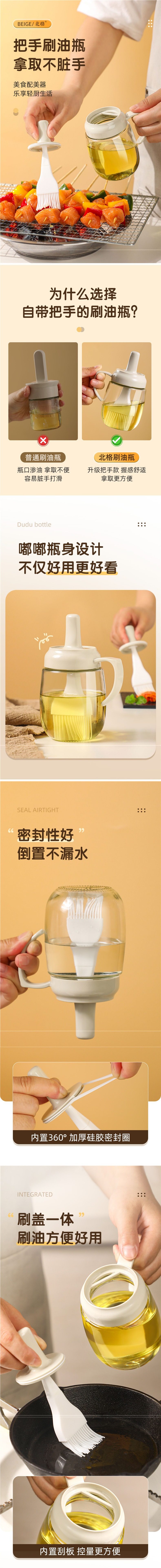 Oil Brush and Oil Bottle Integrated Glass Kitchen High Temperature Resistant Silicone Oil Brush Pot Electric Pancake Pan Barbecue Pancake Special Oil Brush