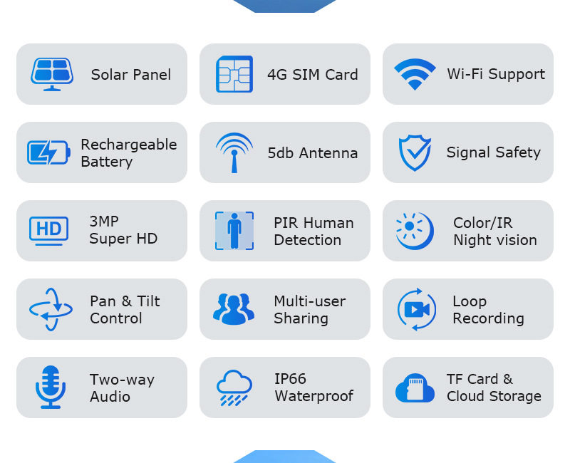 | Specifications | St-srk04-b (4 solar wifi battery cameras + 1 10w solar 4g router) |