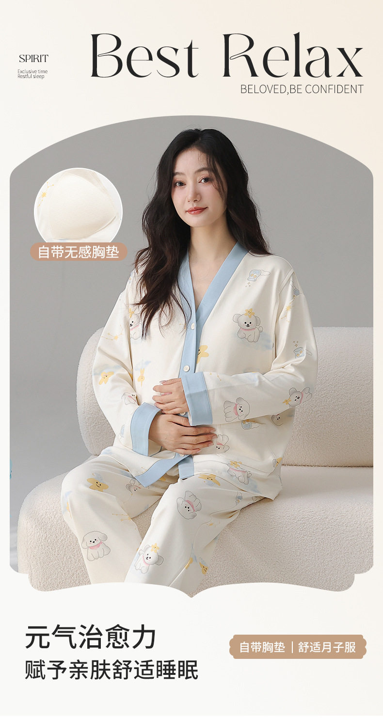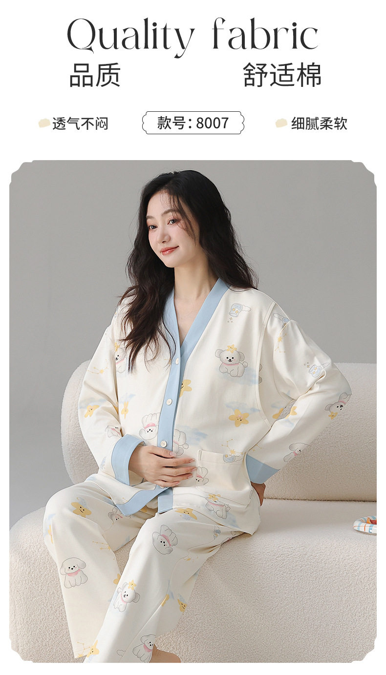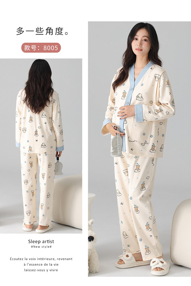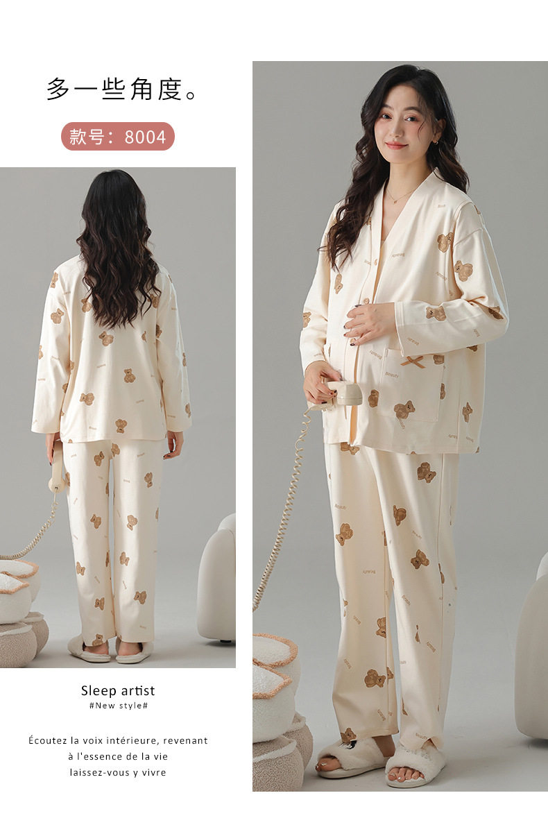 Postpartum Clothing Autumn and Winter Long-Sleeved Prenatal and Postpartum Maternity Pajamas Pregnancy Maternity Nursing Home Wear Set Plus Size