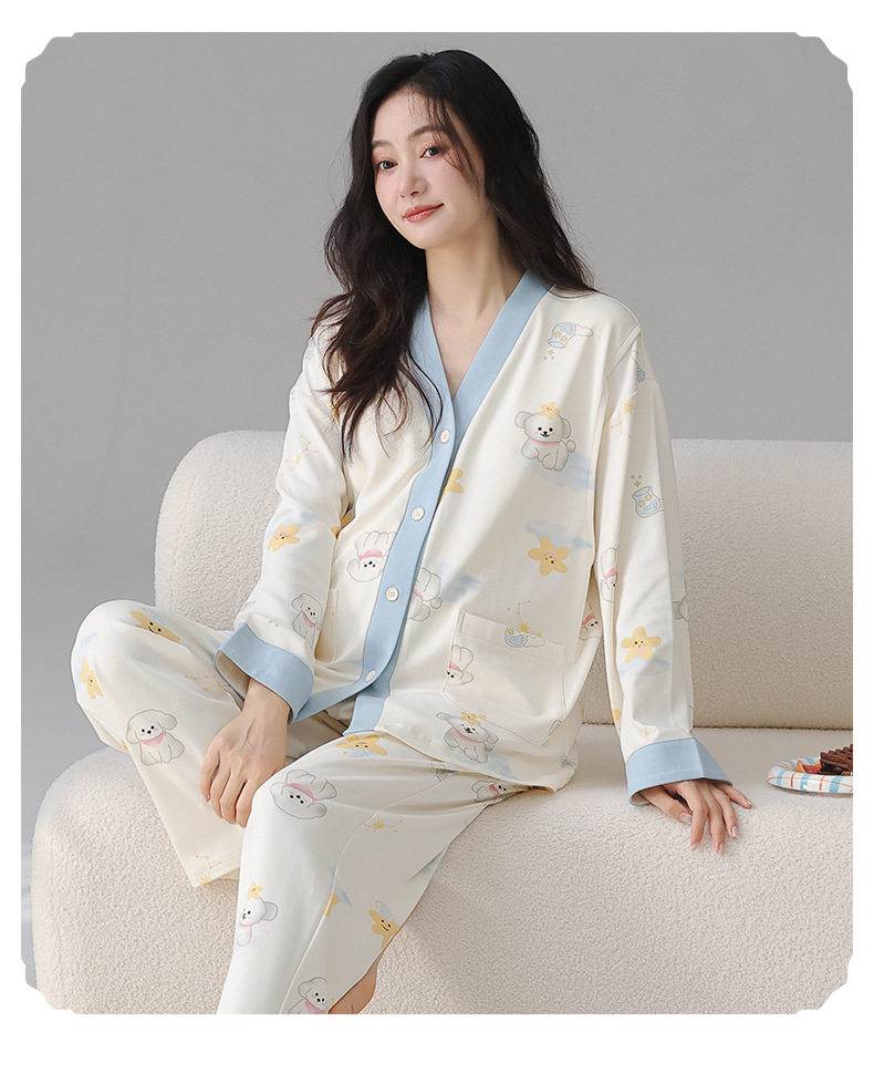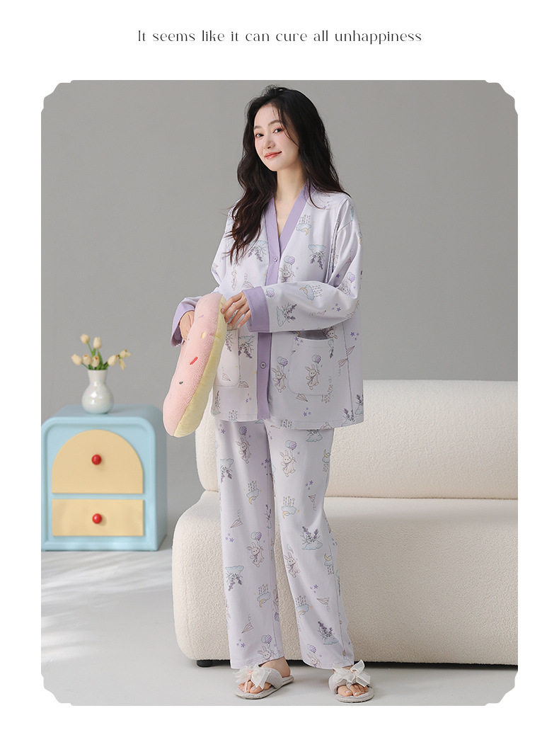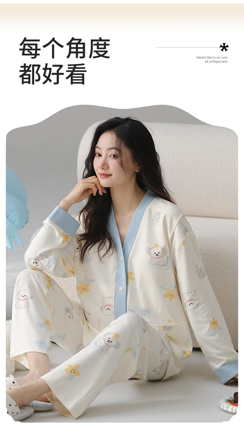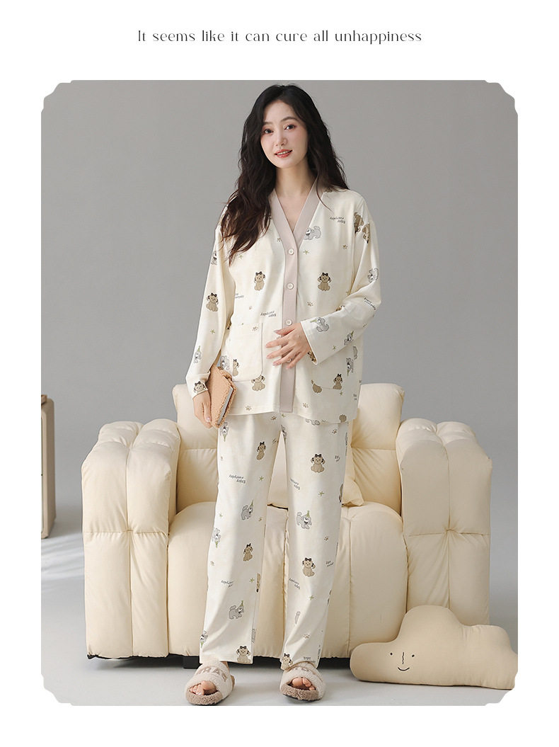 Postpartum Clothing Autumn and Winter Long-Sleeved Prenatal and Postpartum Maternity Pajamas Pregnancy Maternity Nursing Home Wear Set Plus Size