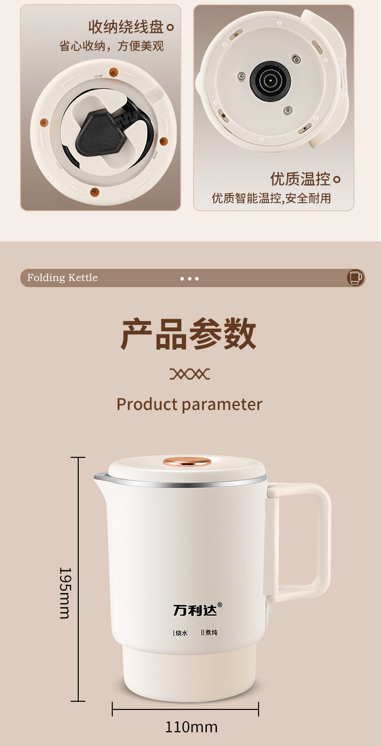 | Electric water kettle type | Portable electric water kettle, travel foldable electric water kettle, thermostatic kettle, wholesale, boiling kettle, automatic thermostatic kettle, thermostatic water kettle, electric kettle, electric teapot, health care |