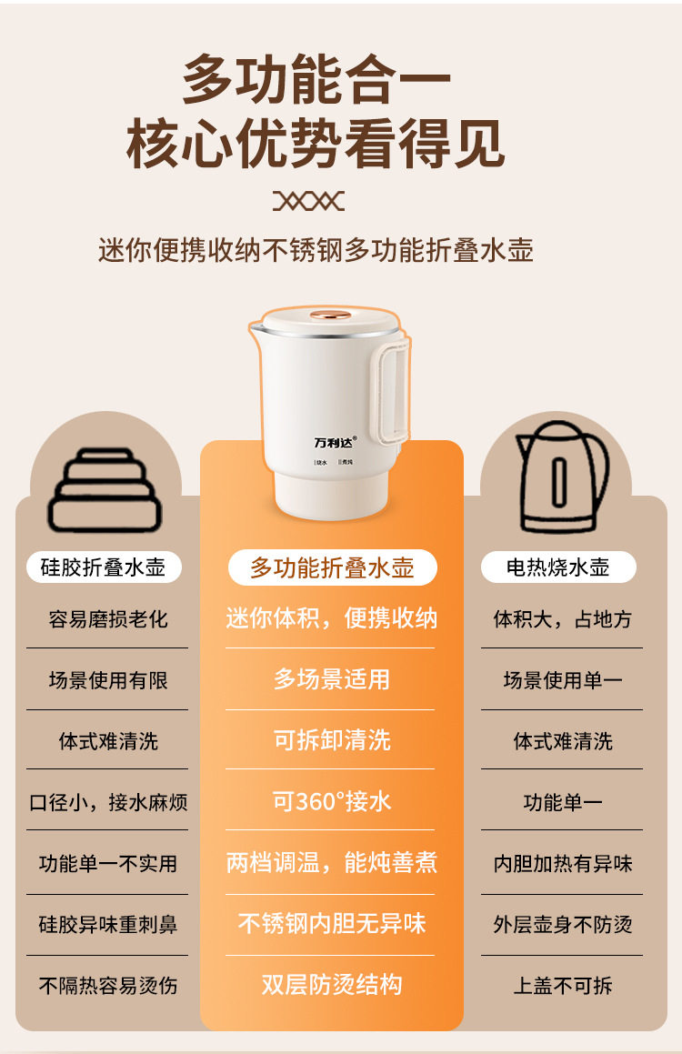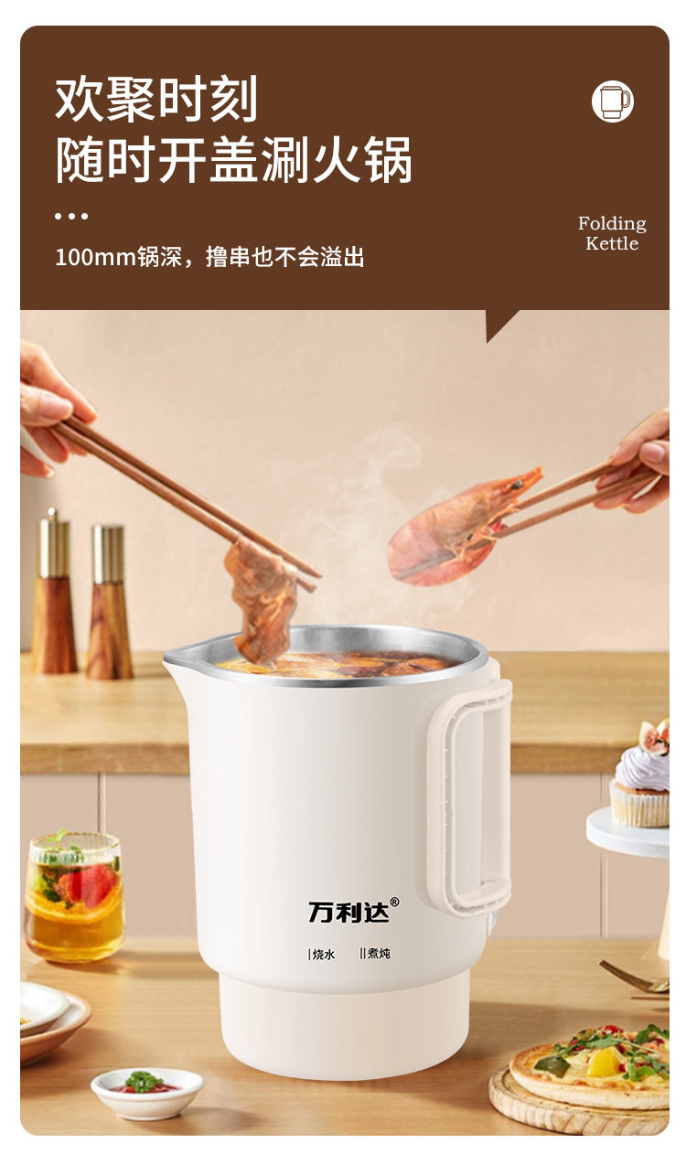 Wanlida 316 Portable Electric Kettle for Boiling Water, Suitable for Hotel Stewing, Automatic, Foldable, for Home Use and Travel