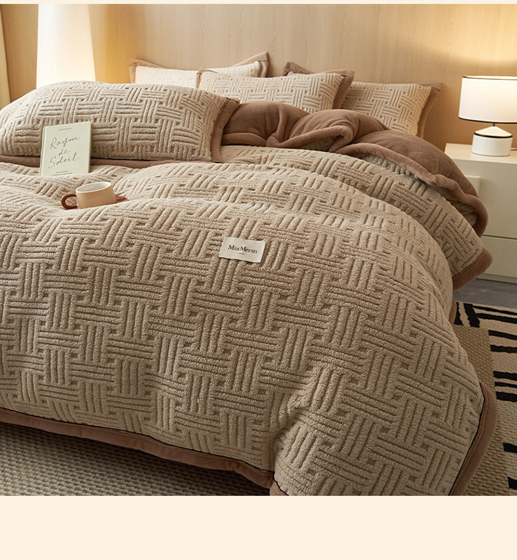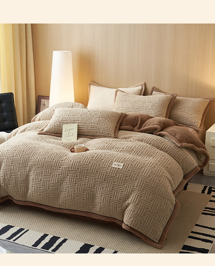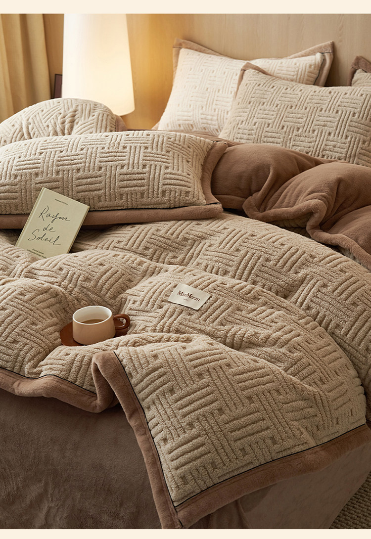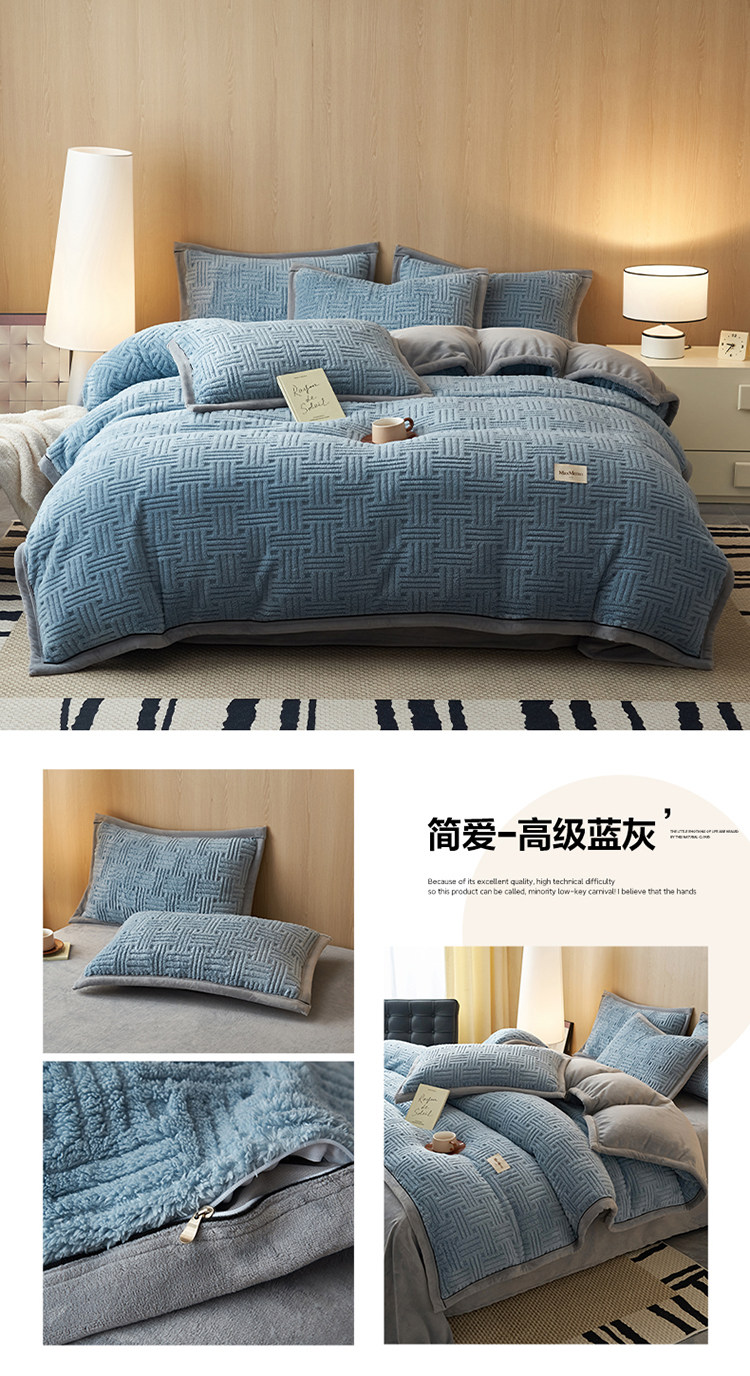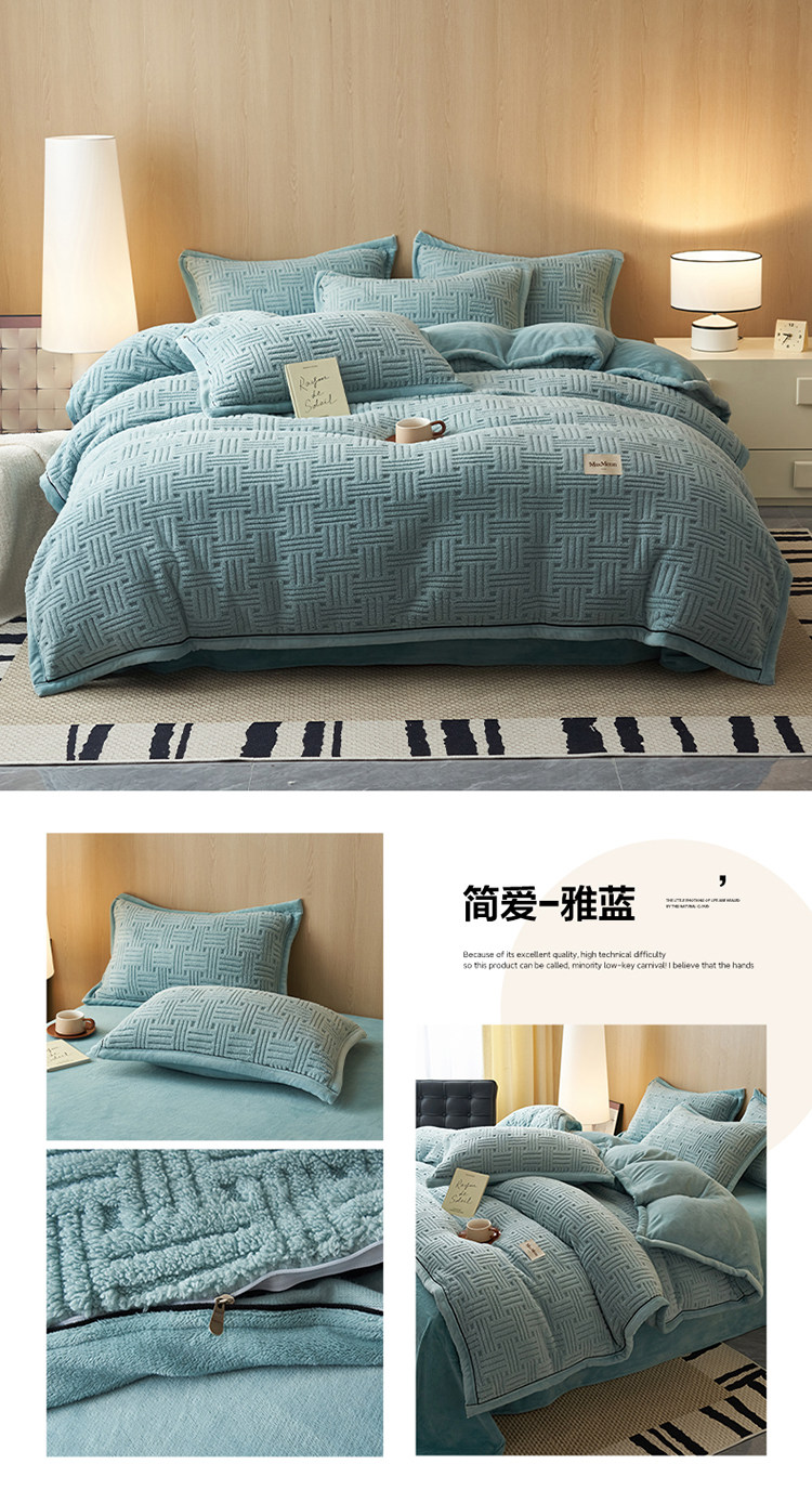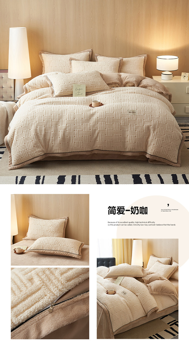 Thickened Autumn and Winter Accessible Luxury Taffeta Milk Velvet Bed Four-Piece Set Double-Sided Velvet Coral Velvet Quilt Cover Bed Sheets Quilt Cover Bed Bed Sheets