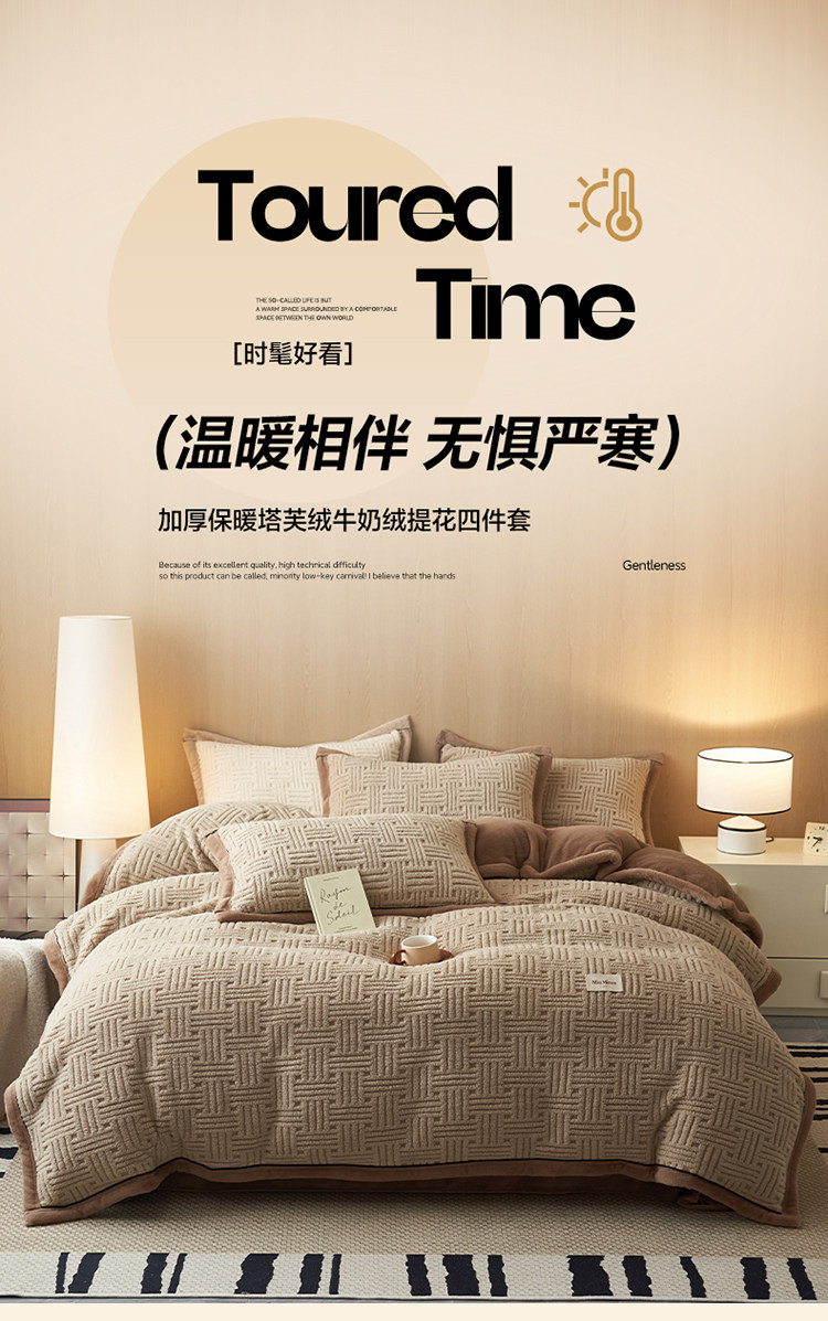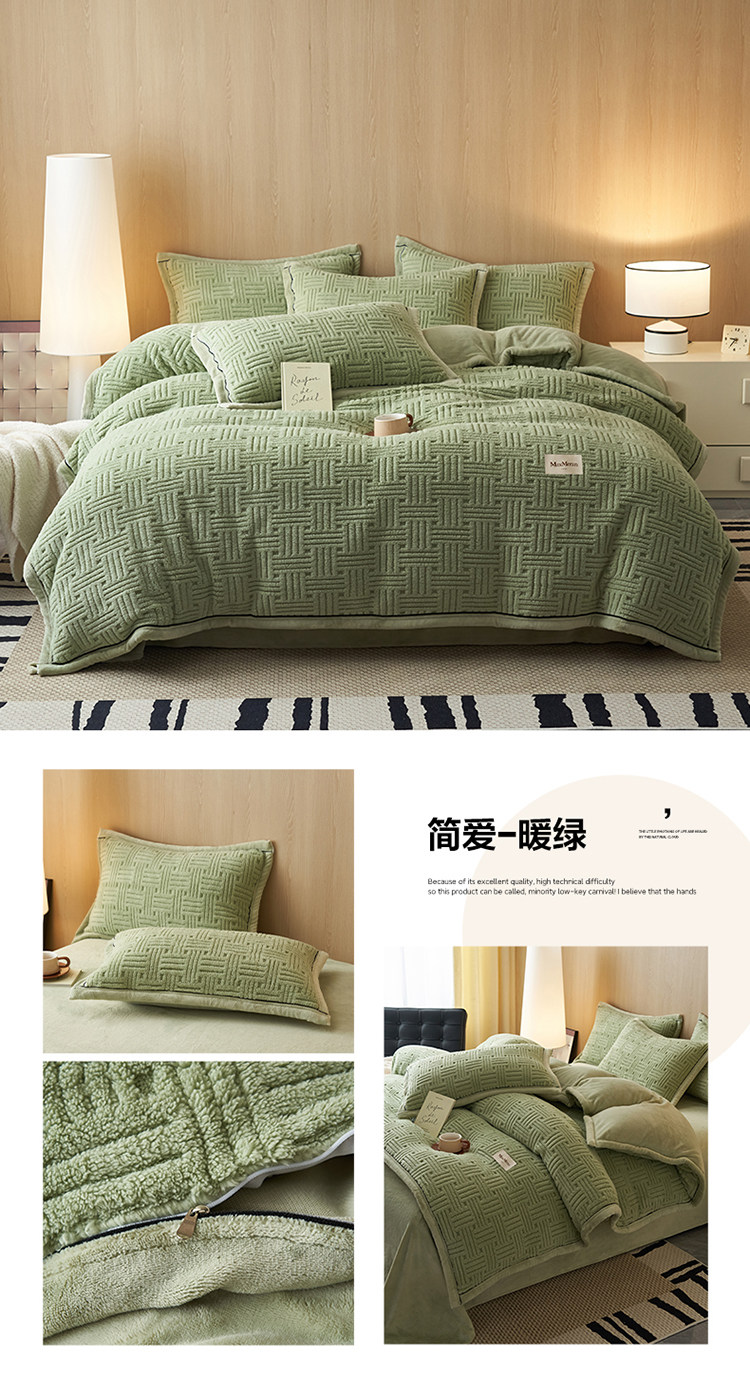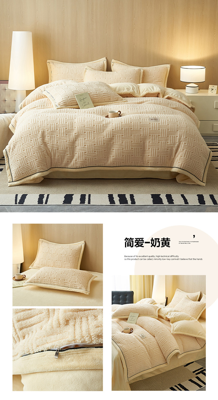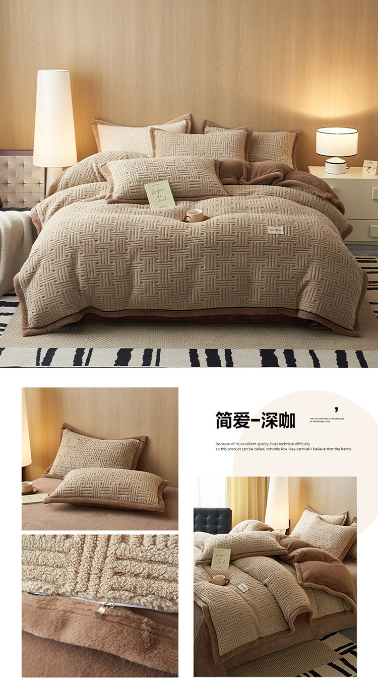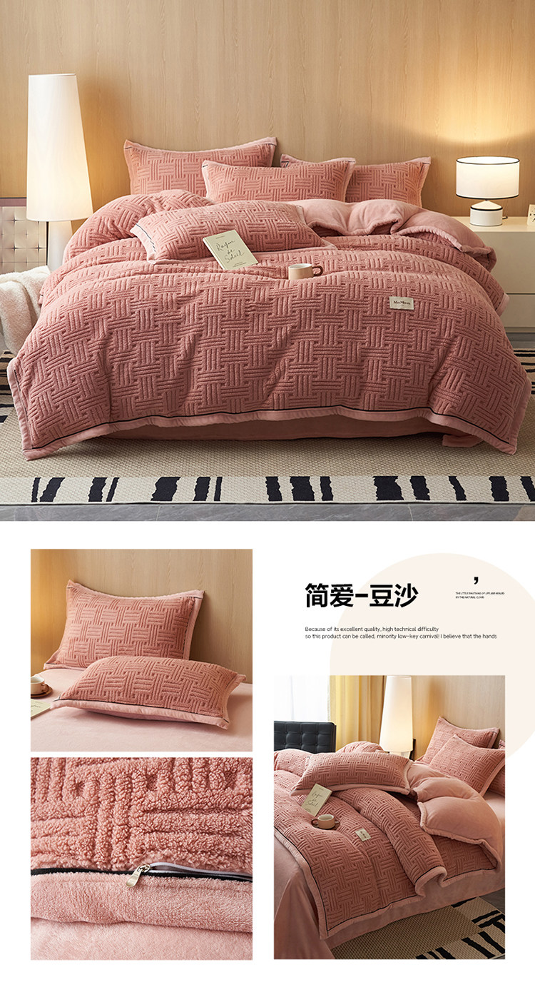 Thickened Autumn and Winter Accessible Luxury Taffeta Milk Velvet Bed Four-Piece Set Double-Sided Velvet Coral Velvet Quilt Cover Bed Sheets Quilt Cover Bed Bed Sheets