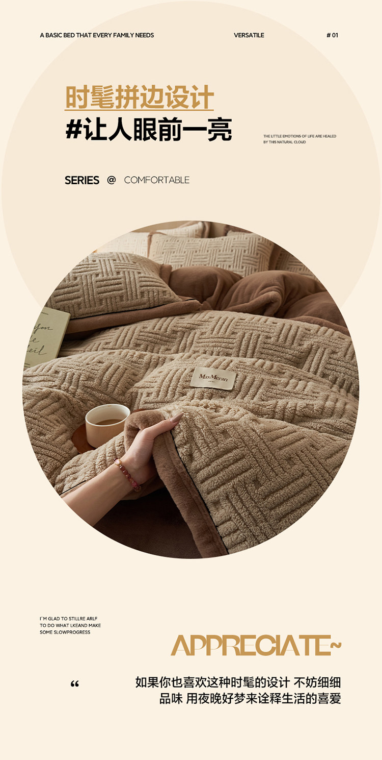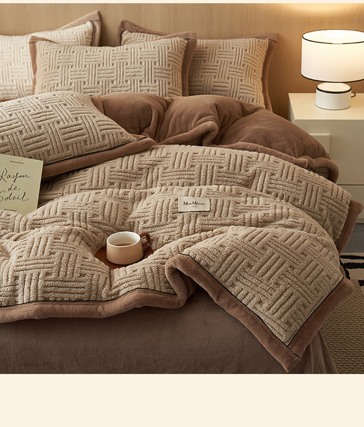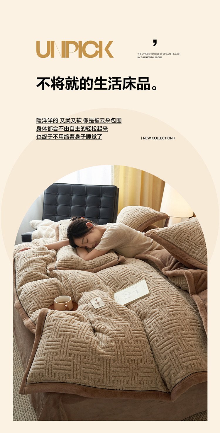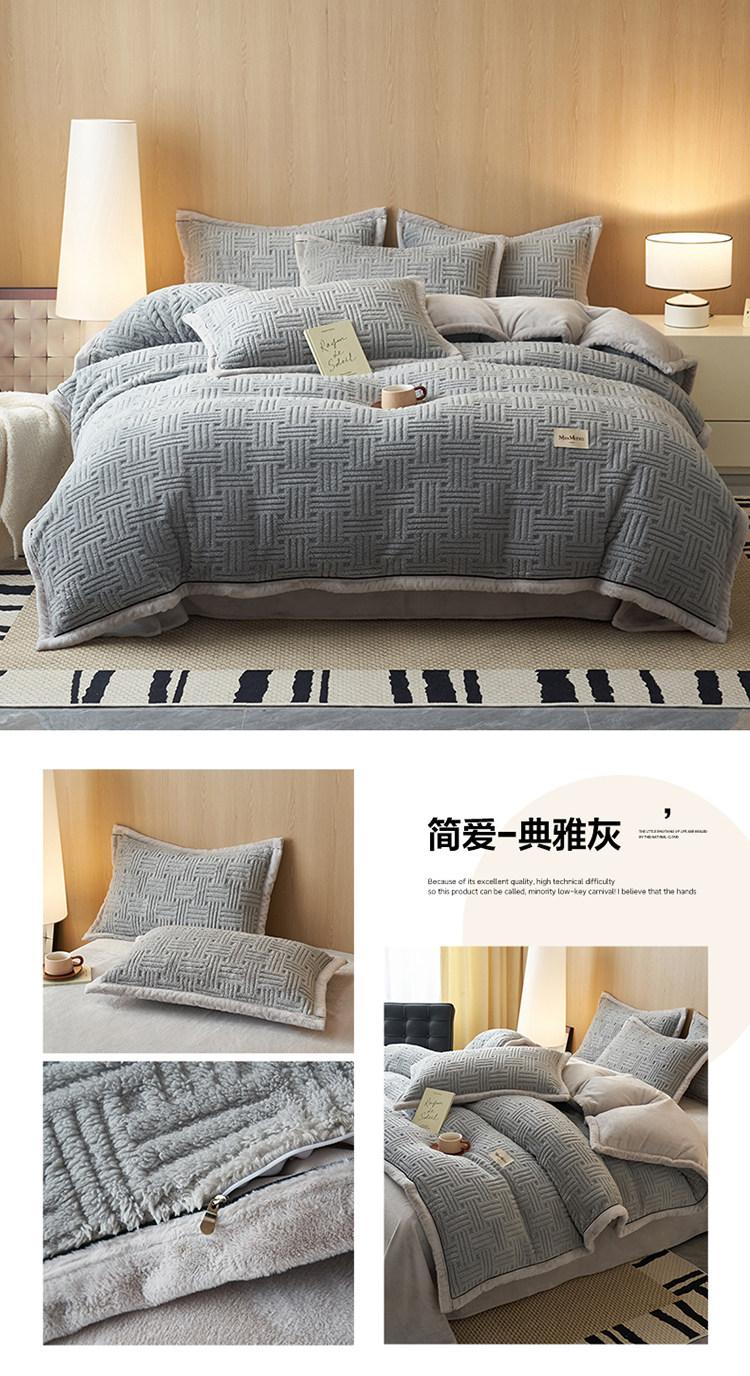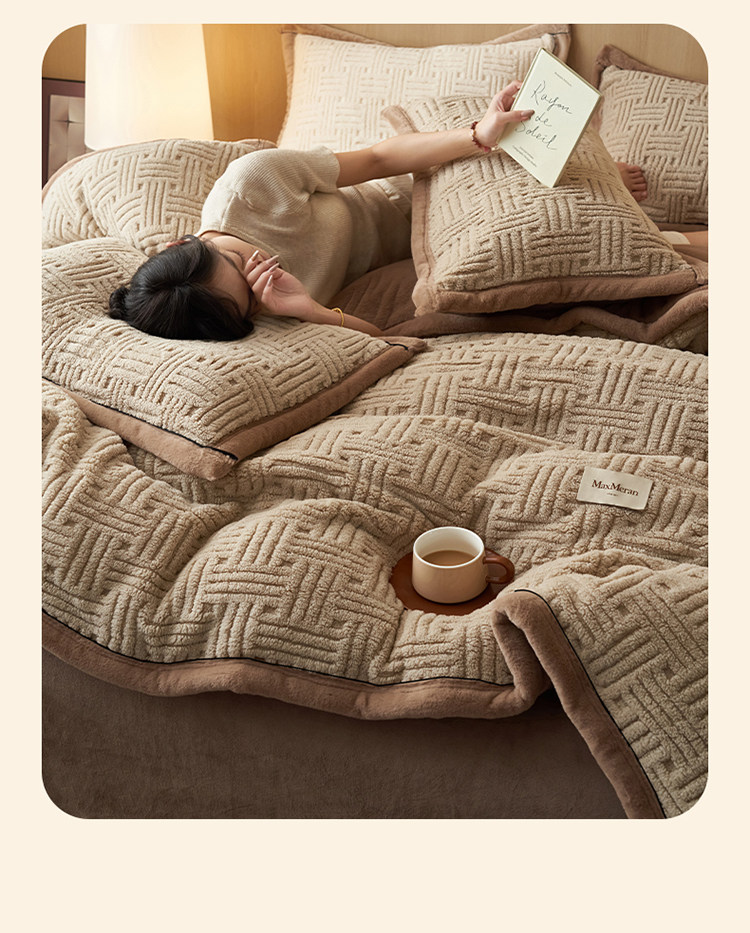 Thickened Autumn and Winter Accessible Luxury Taffeta Milk Velvet Bed Four-Piece Set Double-Sided Velvet Coral Velvet Quilt Cover Bed Sheets Quilt Cover Bed Bed Sheets