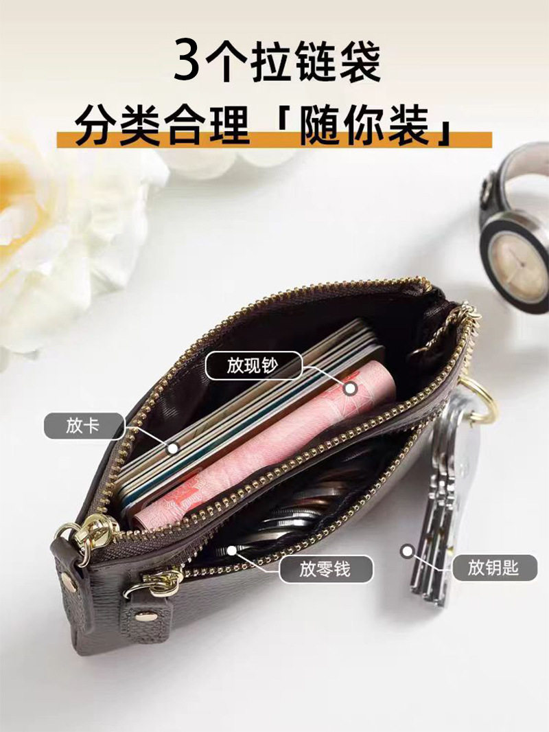 Japanese and Korean Style Multifunctional Coin Purse Three-Zipper Storage Bag Card Mini Key Coin Clutch Bag Id Holder for Mom