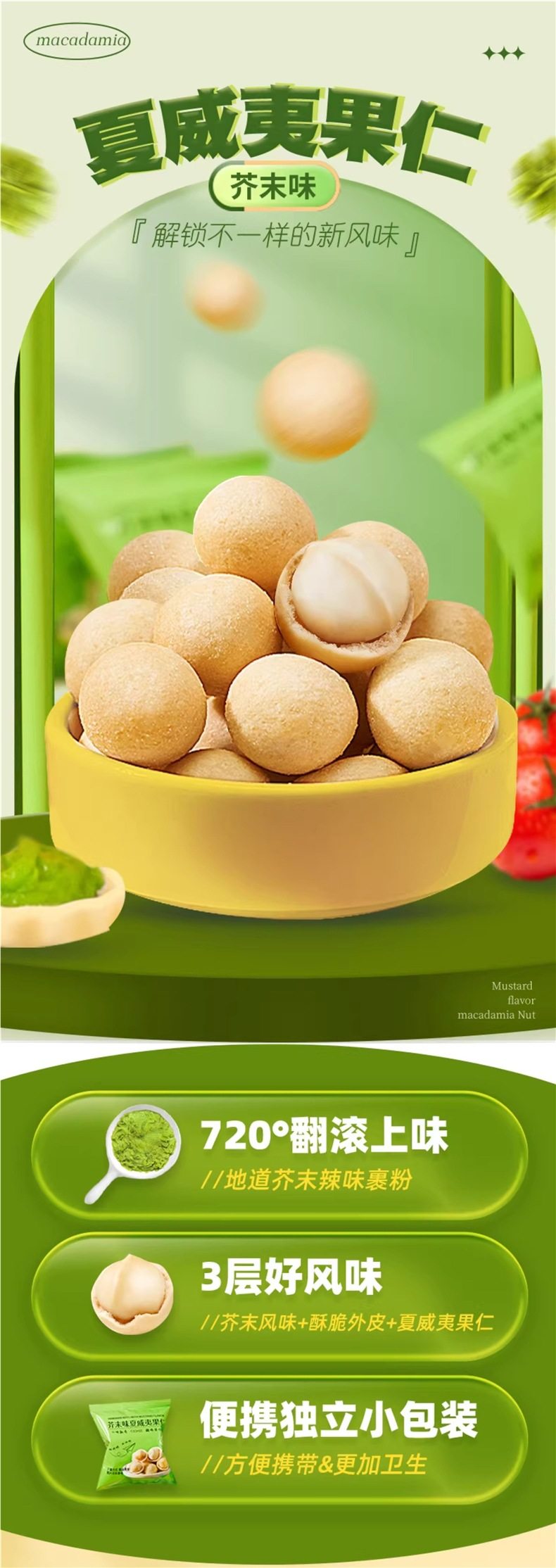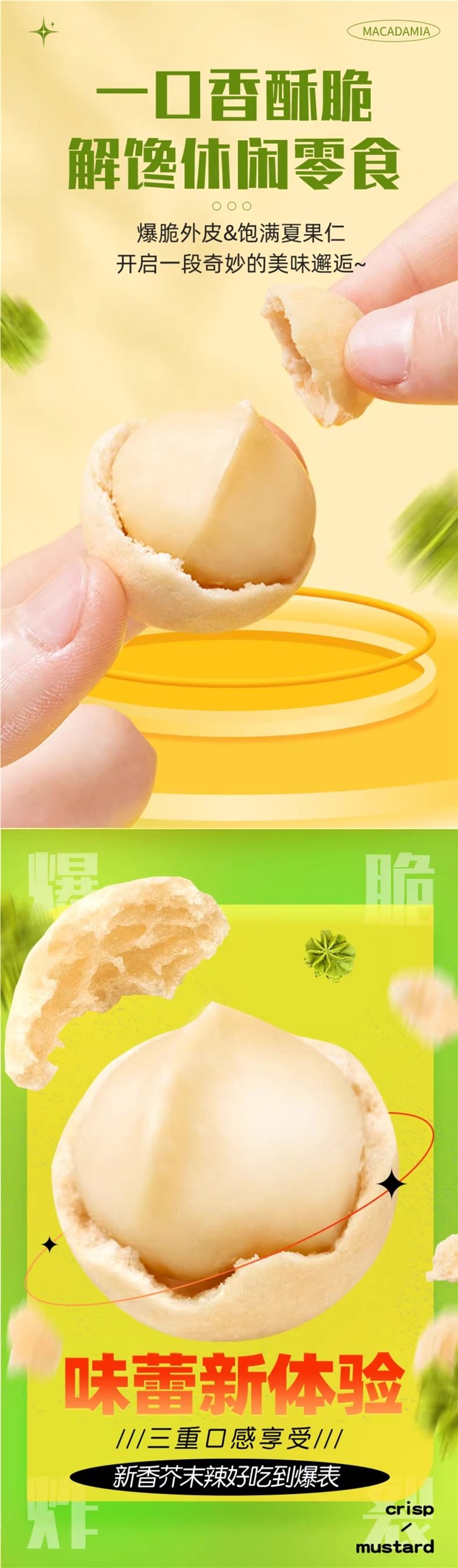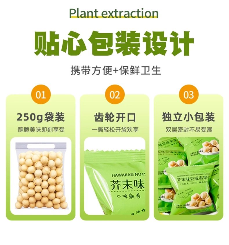 | Taste | [individual small bags] mustard flavored macadamia nuts: 250g*4 bags,[individual small bags] mustard flavored macadamia nuts: 250g*2 bags,[individual small bags] mustard flavor + coconut flavor 250g, 1 bag each,[individual small bags] coconut flavored macadamia nuts: 250g*2 bags,[individual small bags] coconut flavored macadamia nuts: 250g*4 bags,[individual small bag] mustard flavored macadamia nuts: 250g*1 bag |