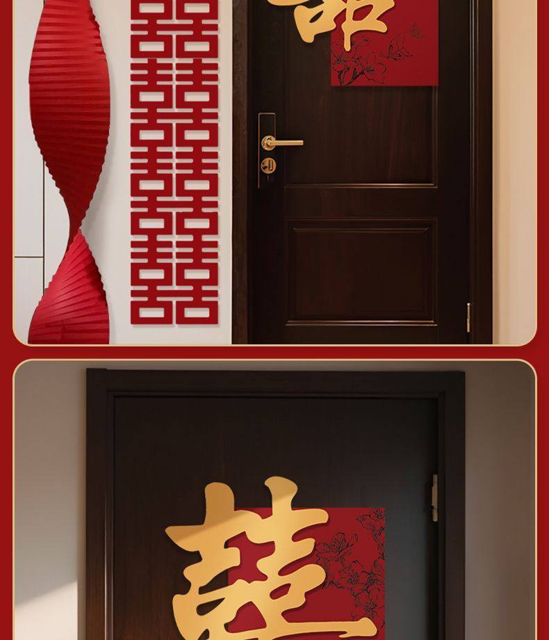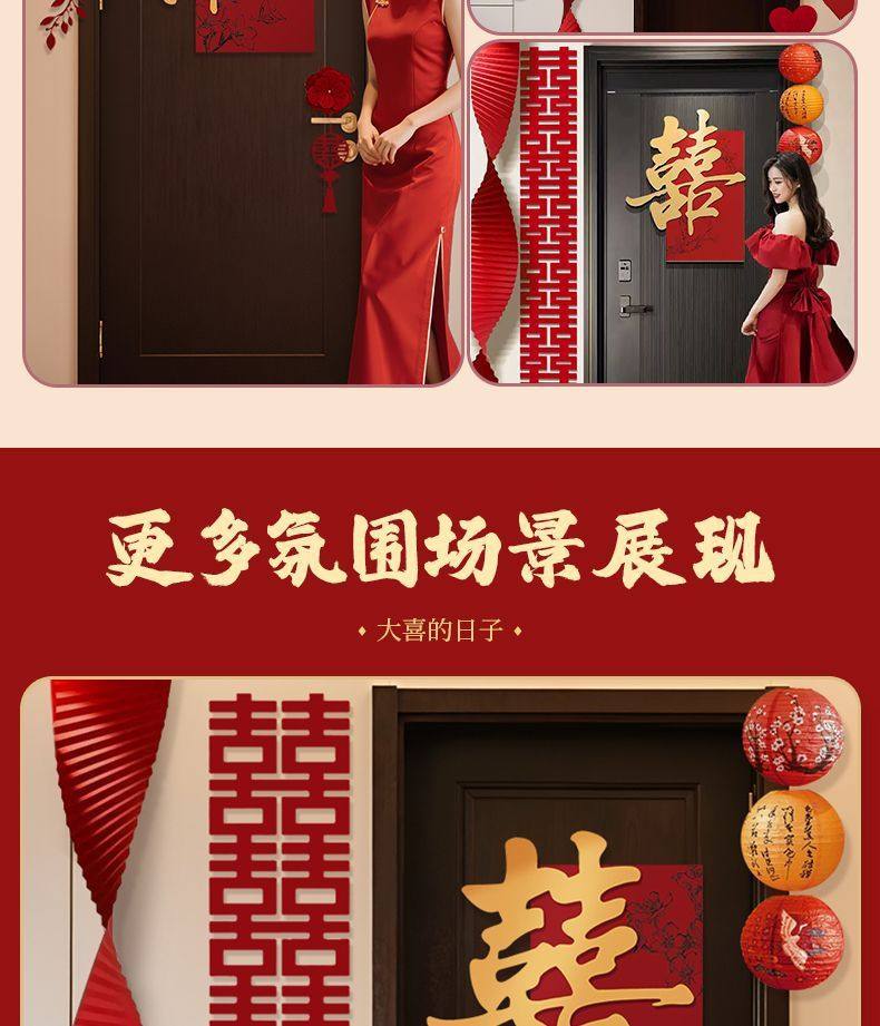 Wedding Room Decoration Set with Double Happiness Character Door Stickers, Complete Wedding Supplies, Wedding Decoration for Bride's and Groom's Bedroom with Double Happiness Character