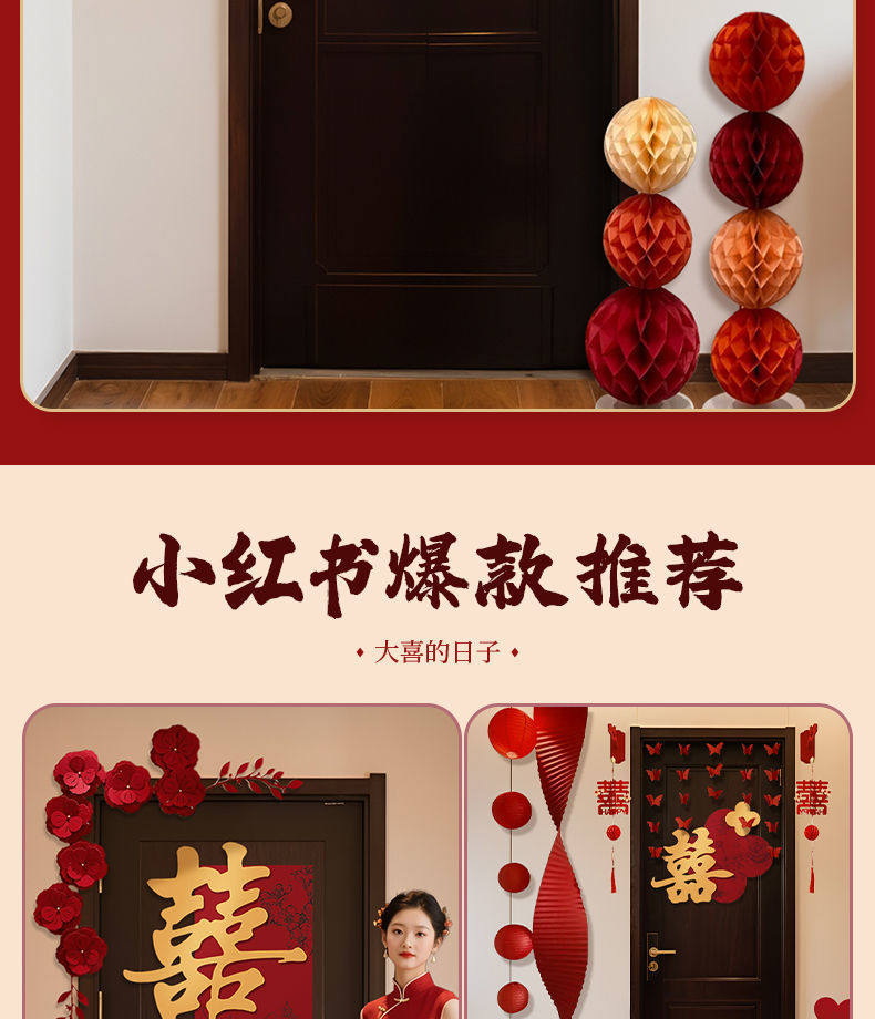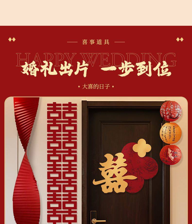 | Specifications | Four-leaf clover jinxi 1 piece,Square jinxi + flowers and leaves + corrugated paper + long jinxi [door set],Four-leaf clover jinxi [door set],Square jinxi [door set],Square jinxi 1 piece |
