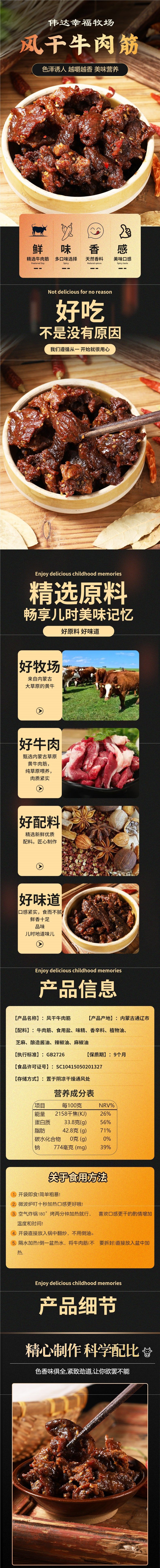 Weida Happiness Ranch Inner Mongolia Air-Dried Beef Tendon Specialty Ready-To-Eat Tendon Head and Brain Snacks 125g Casual Snacks