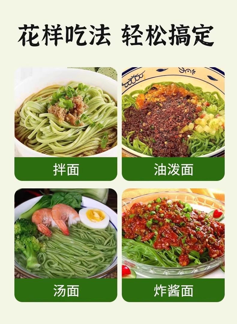 | Packaging specifications | Mulberry leaf, bitter melon and celery noodles [500g*1 bag],Mulberry leaf, bitter melon and celery noodles [500g*2 bags],Mulberry leaf, bitter melon and celery noodles [500g*3 bags],Mulberry leaf, bitter melon and celery noodles [500g*5 bags] |