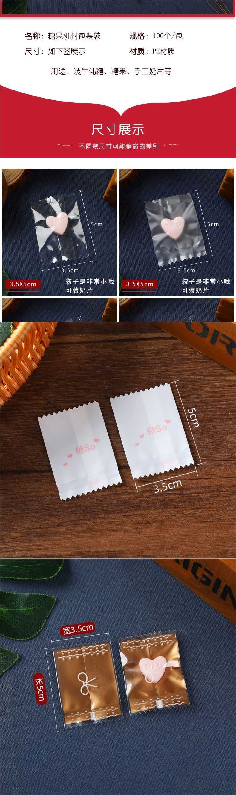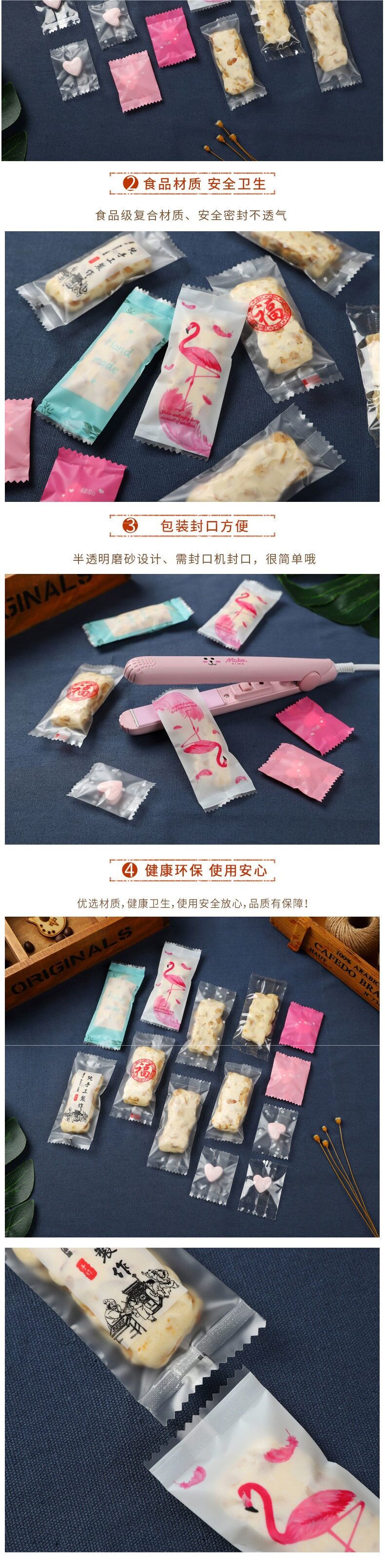 Nougat Packaging Bag Milk Tablet Machine Sealing Baking Transparent Blessing Word Handmade Cute Small Fresh Candy Paper 1000 Pieces
