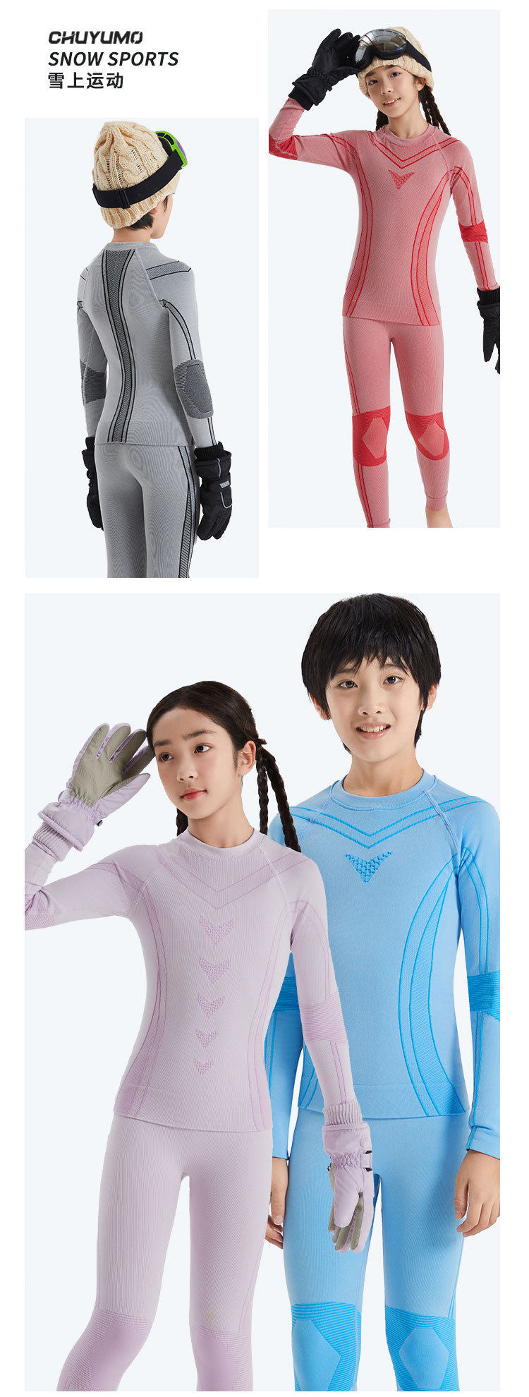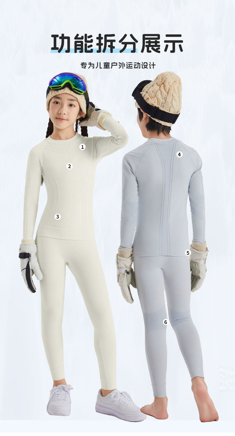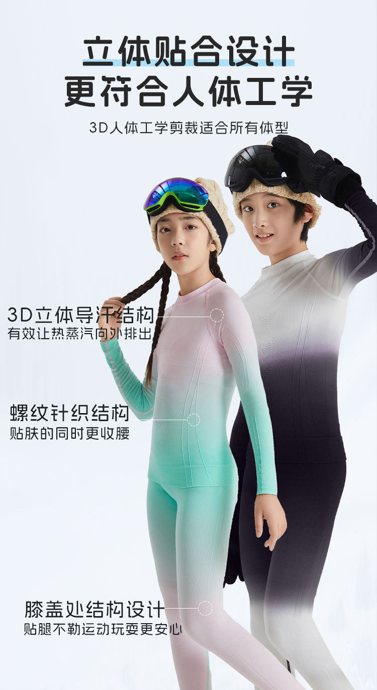 Children's Autumn and Winter Ski Quick-Drying Clothing Set, Outdoor Sports Hiking Moisture-Wicking, Antibacterial, Breathable and Warm Intimates