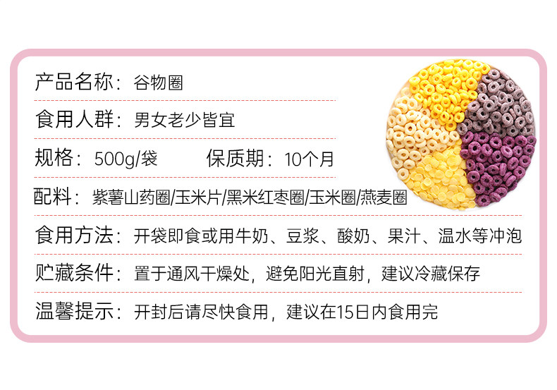 | Taste | [recommended combination package] 500g cereal rings + 500g cocoa honey balls [sucrose/ready to eat/soaked milk],[500g*1 bag] 0 fat cereal rings [sucrose/ready to eat/soaked milk],[1000*1 bag] 0 fat cereal rings [sucrose/ready to eat/soaked milk],[2500g* bag] 0 fat cereal rings [sucrose/ready to eat/soaked in milk],[250g*1 bag] 0-fat cocoa honey balls [sucrose/ready to eat/soaked milk],[500g*1 bag] 0-fat cocoa honey balls [sucrose/ready to eat/soaked milk],[1000g*1 bag] 0 fat cocoa honey balls [sucrose/ready to eat/soaked milk],[2500g* bag] 0 fat cocoa honey balls [sucrose/ready to eat/soaked milk] |
